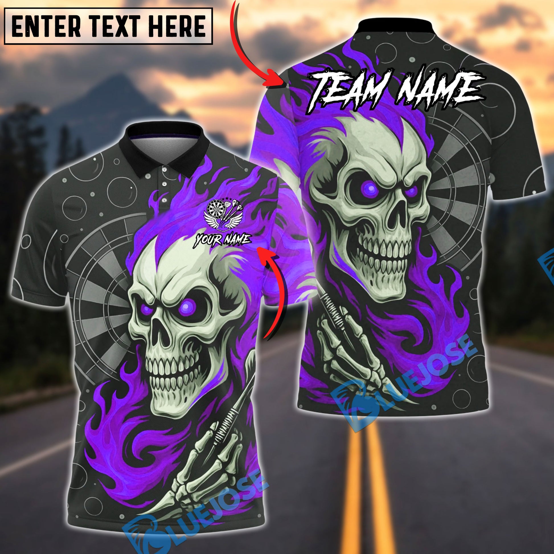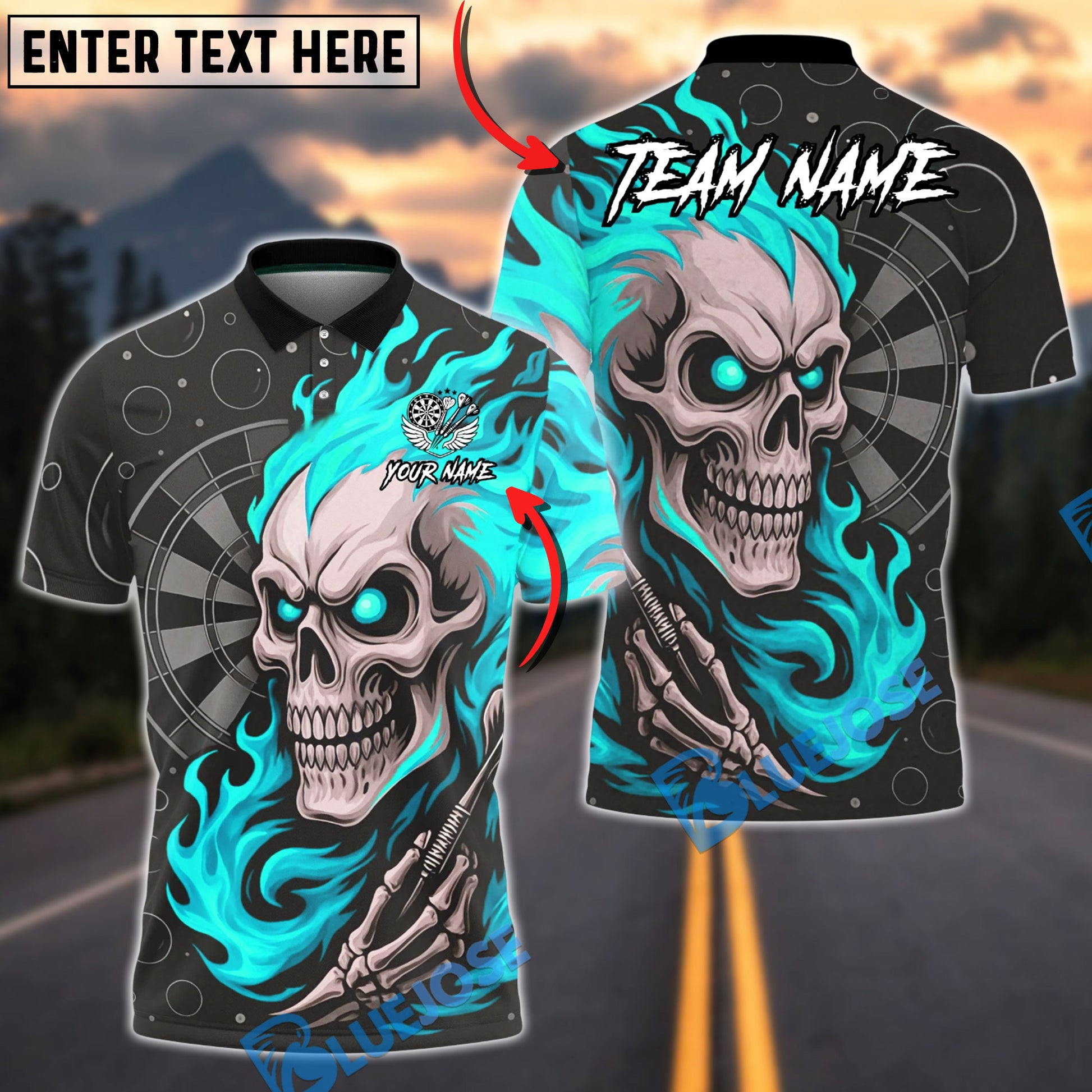 BlueJose Darts Flame Skull Art Multicolor Options Personalized Name Shirt (4 Colors)