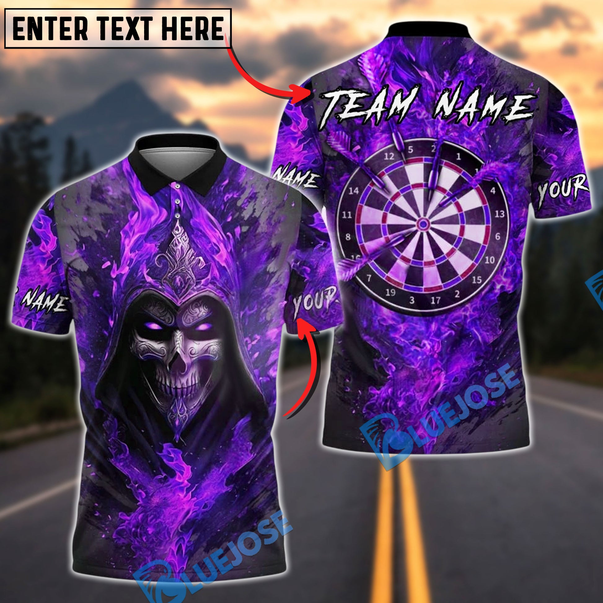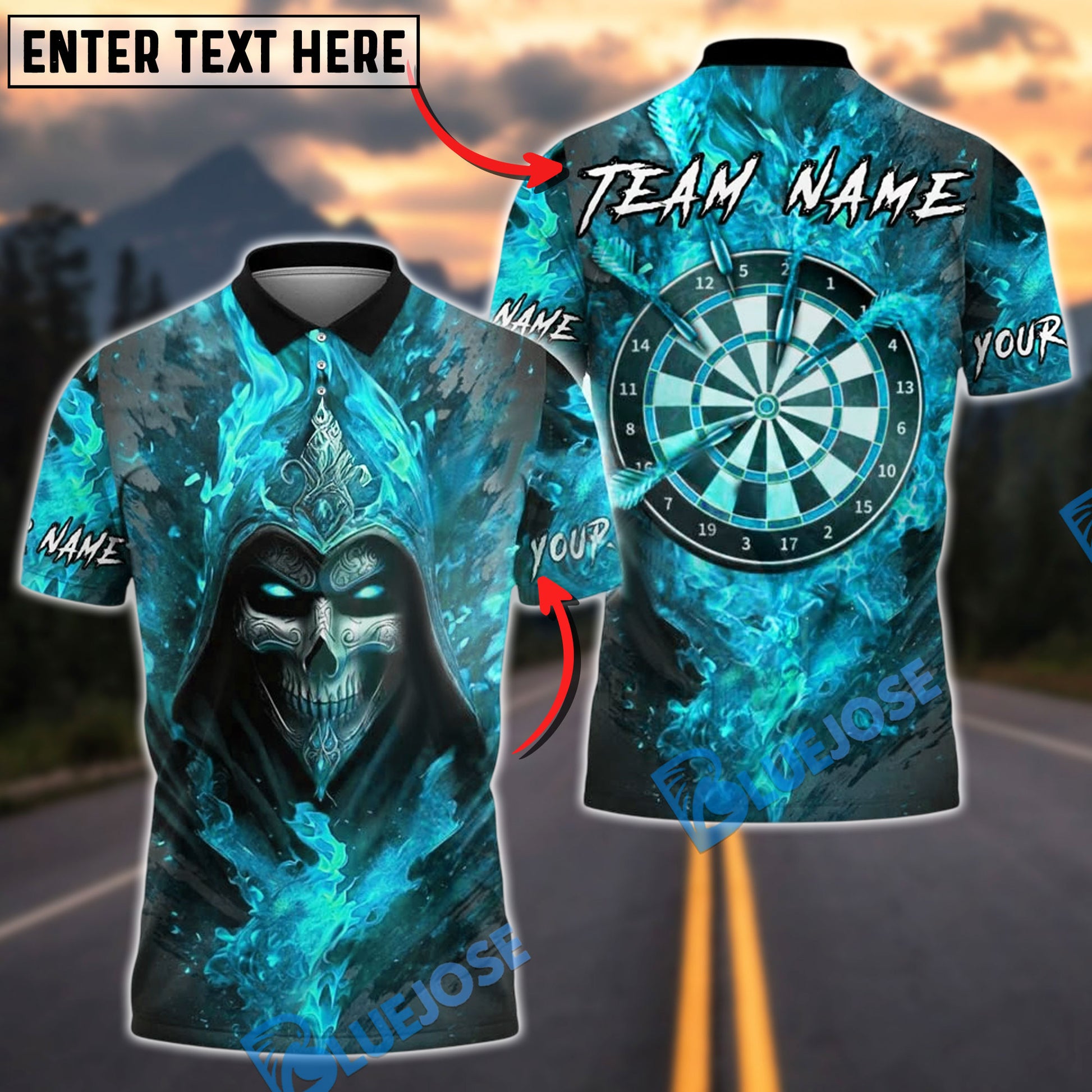 BlueJose Darts Flame Skull Fire Reaper Personalized Name, Team Name Unisex Shirt (4 Colors)