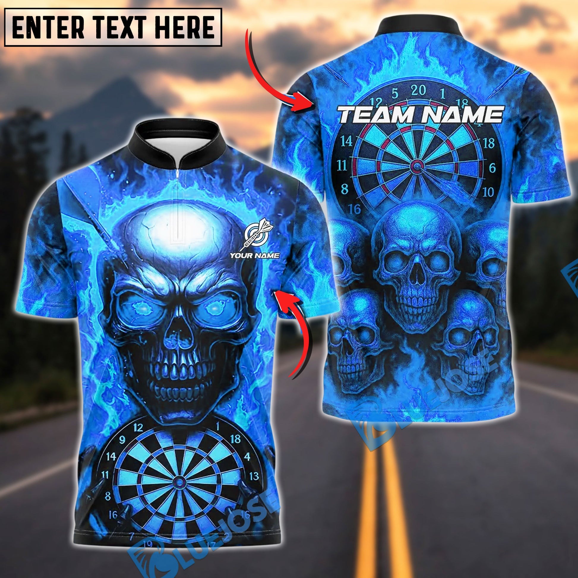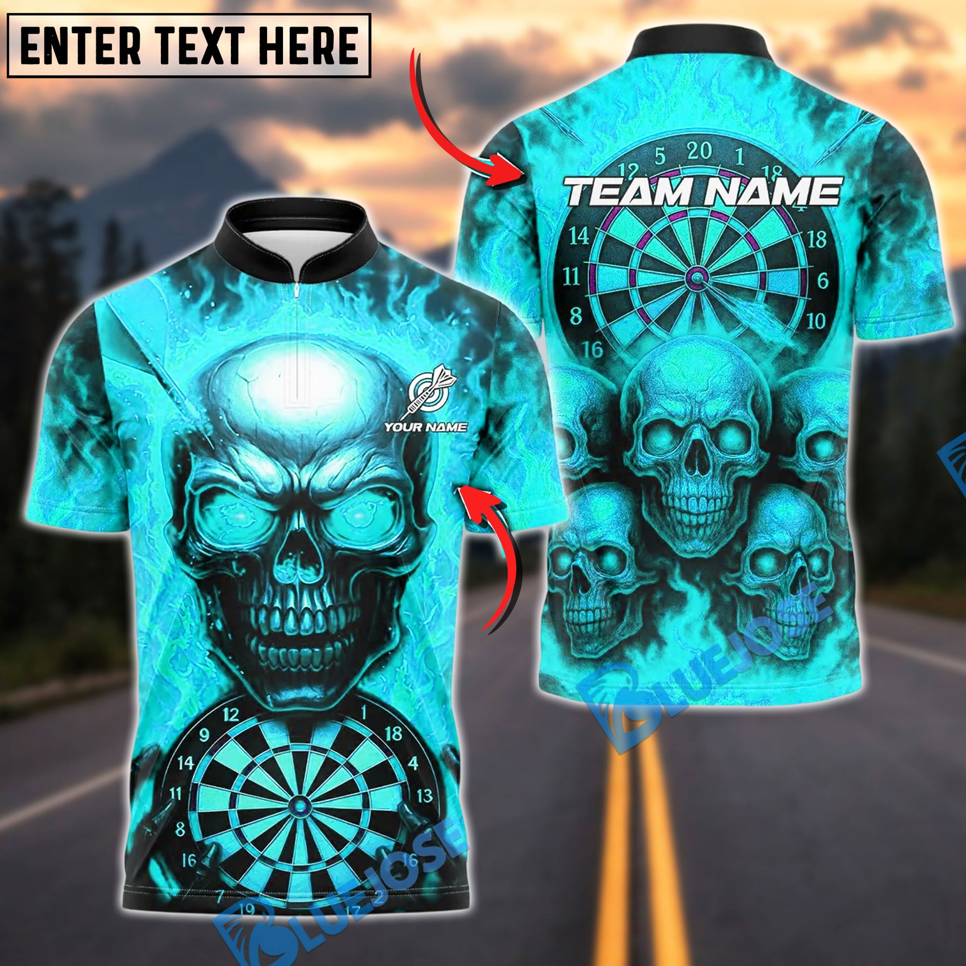 BlueJose Darts Flame Skull With Dartboard Design Customized Name, Team Name 3D Shirt (4 Colors)