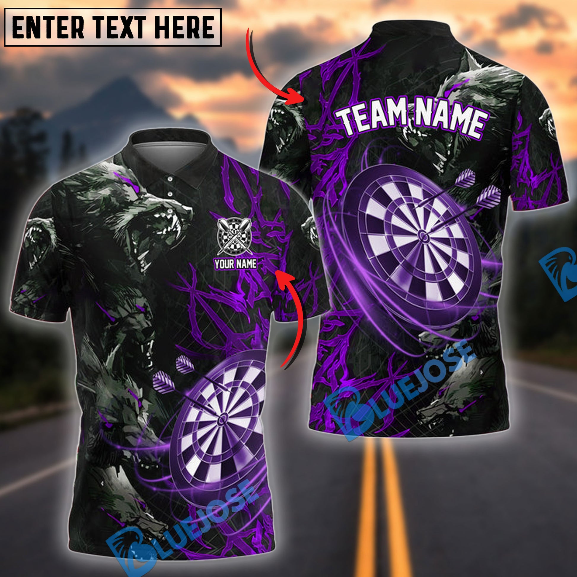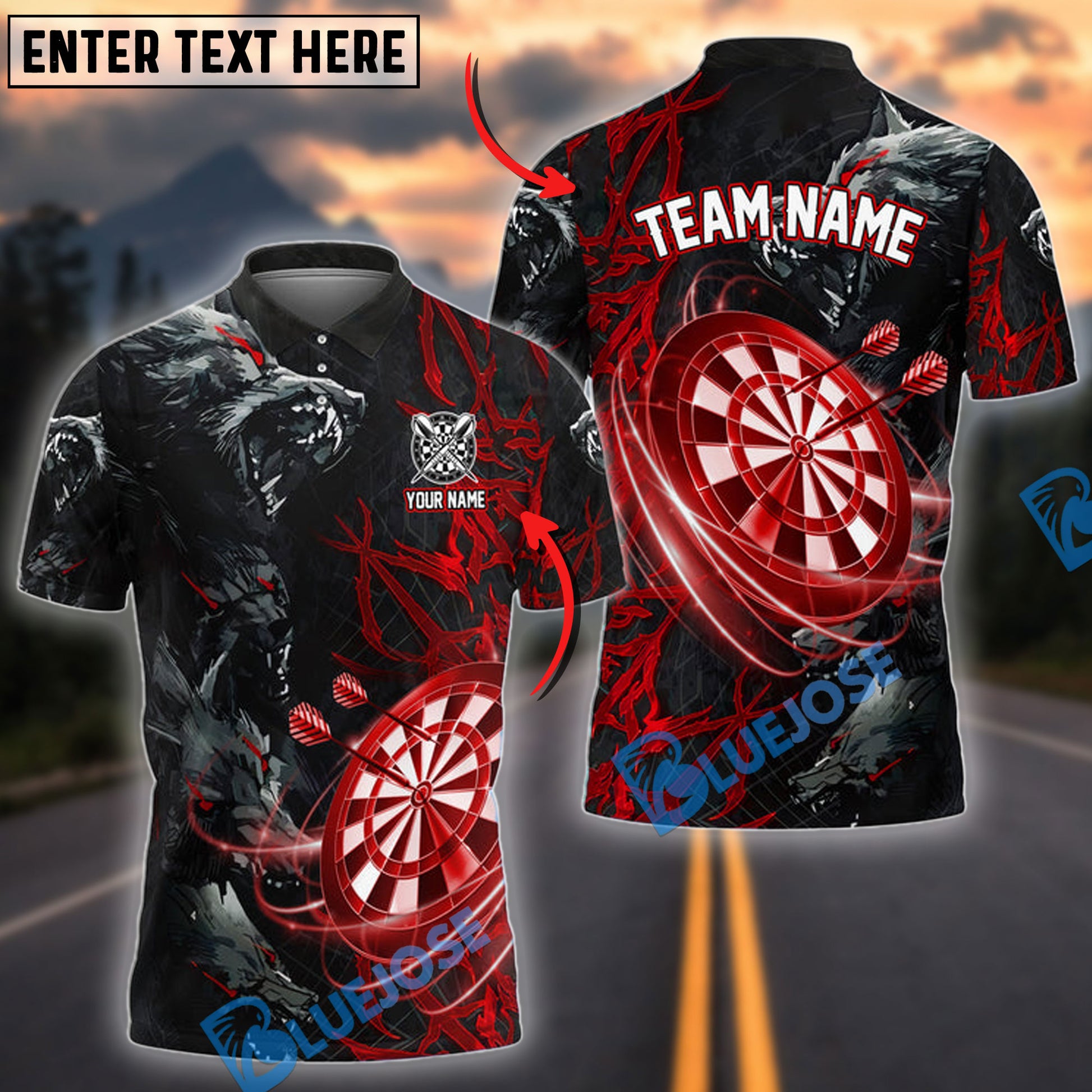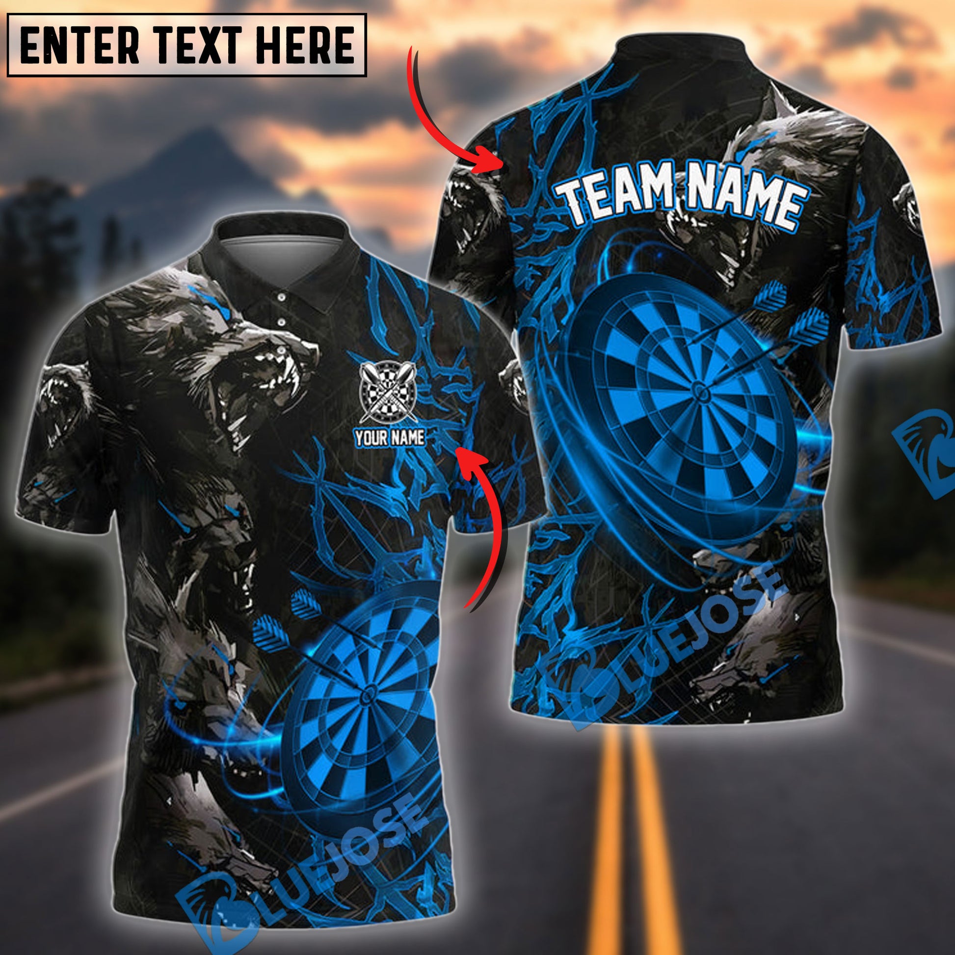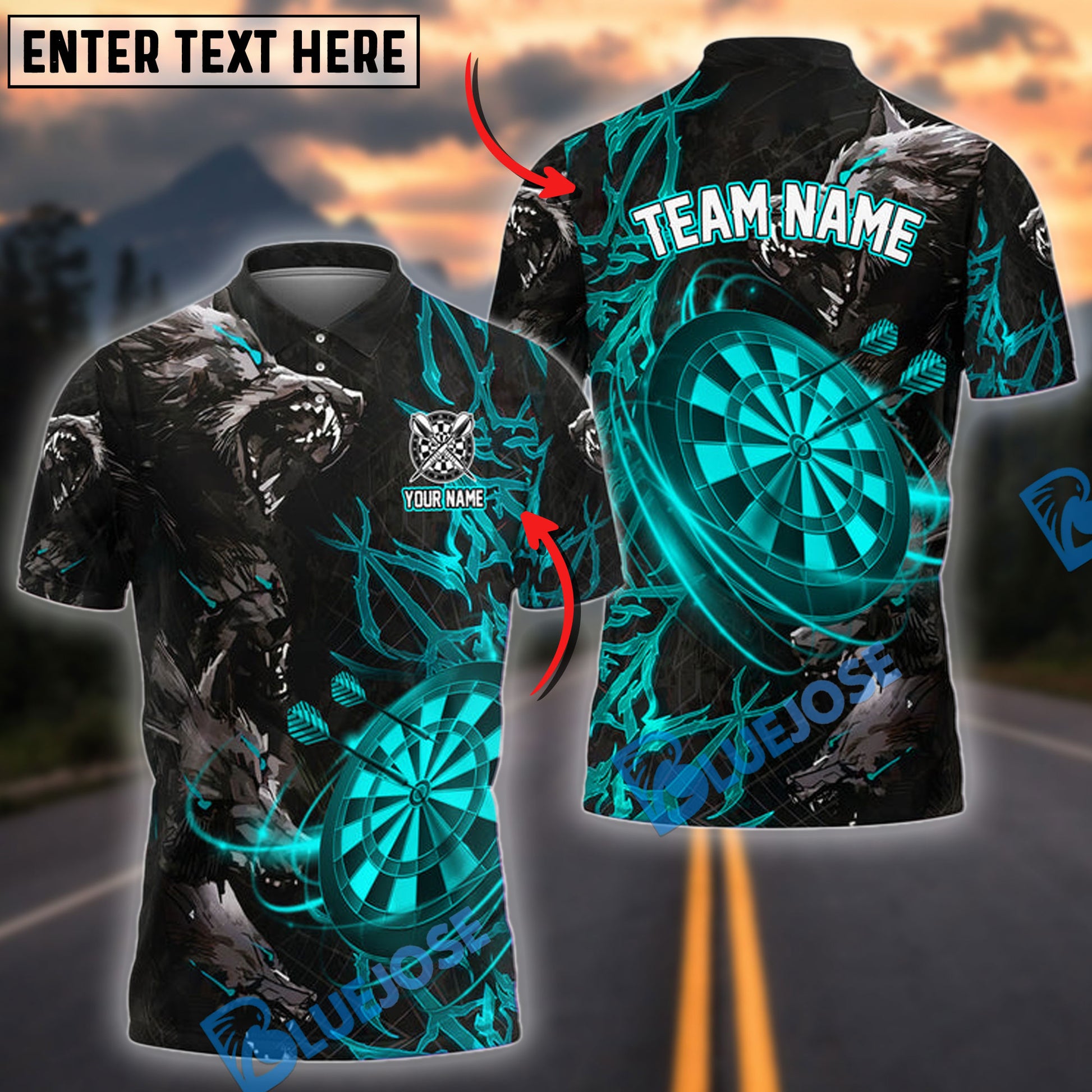 BlueJose Darts Flame Wolf Multicolor Options Personalized Name Shirt (4 Colors)