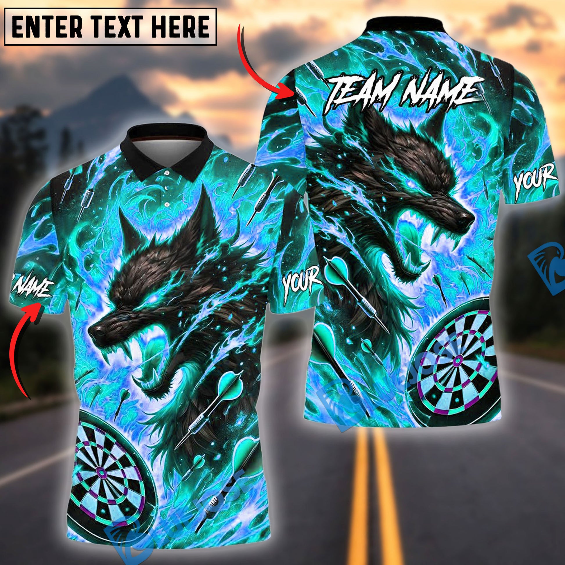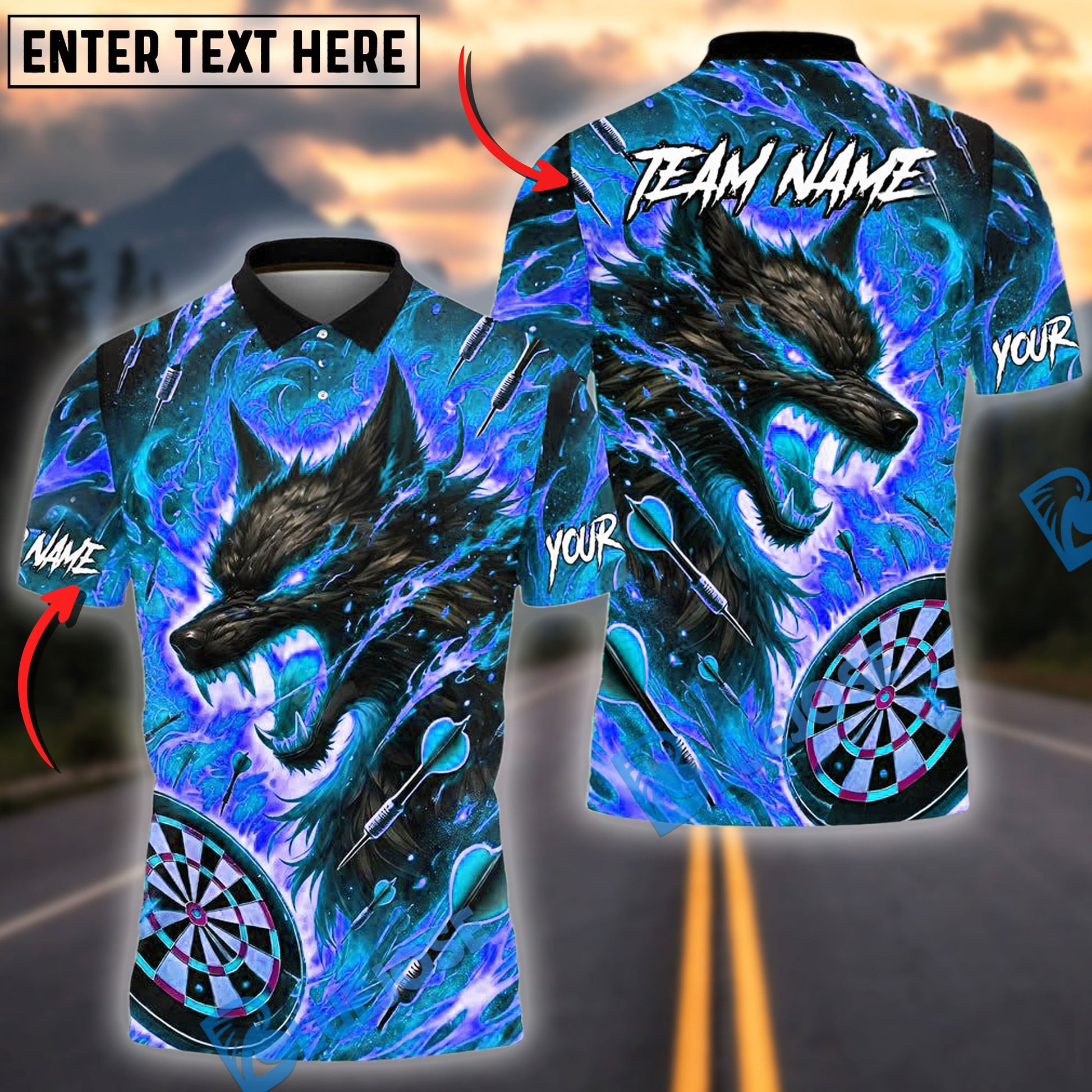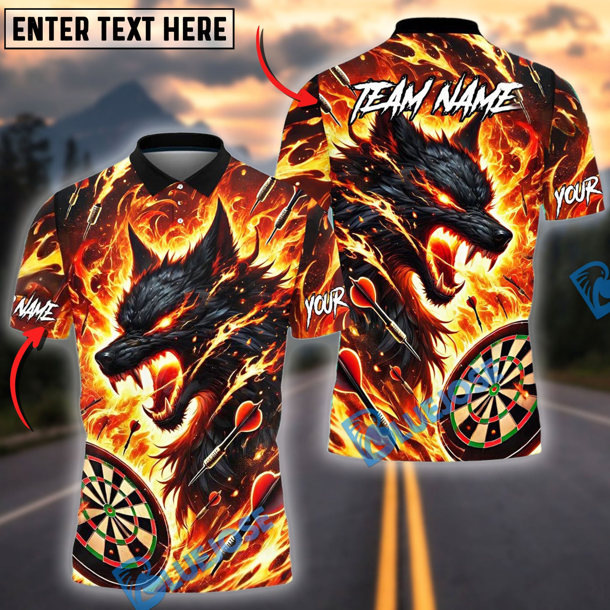 BlueJose Darts Flame Wolf Multicolor Options Personalized Name Shirt (4 Colors)
