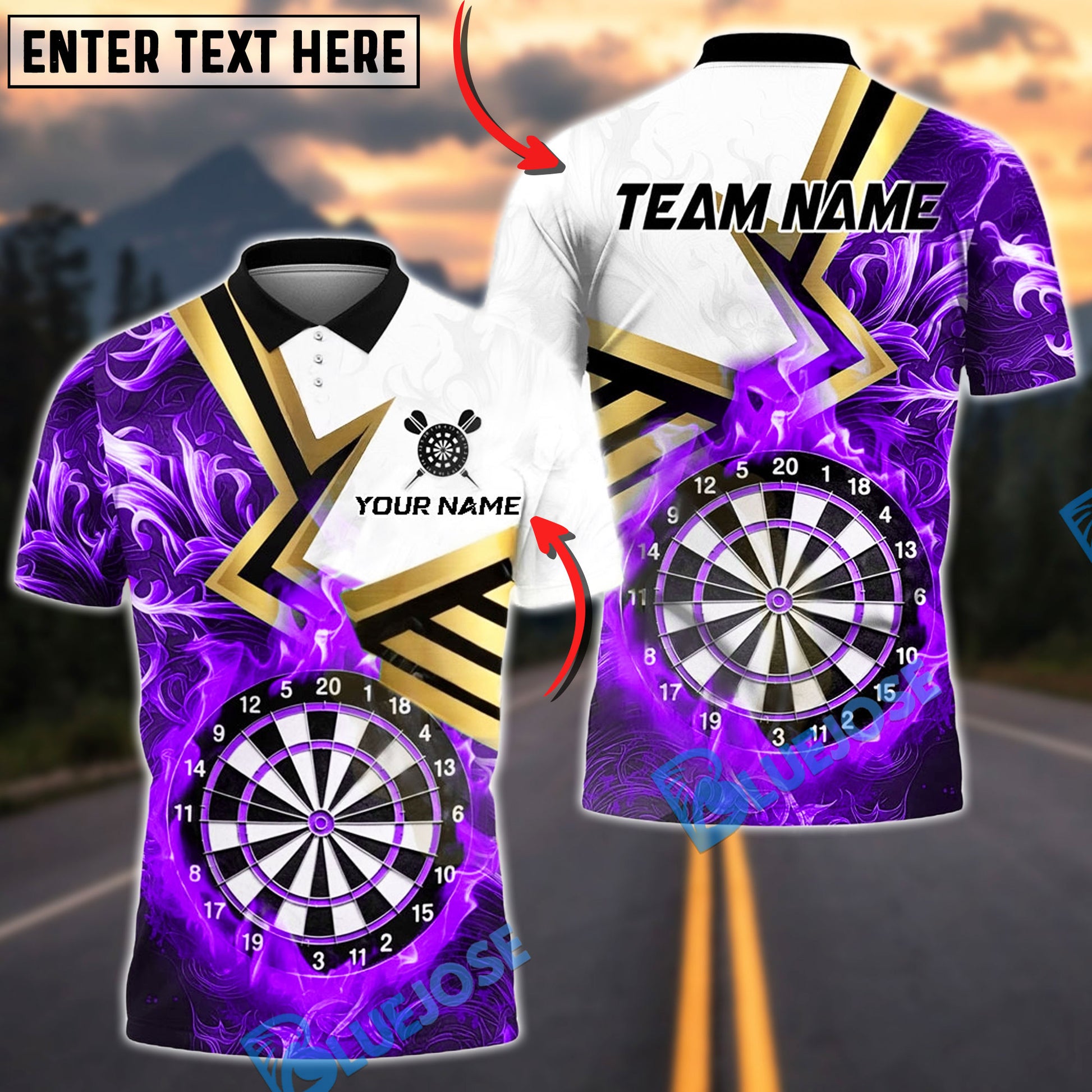 BlueJose Darts Flaming Dartboard Blaze Multicolor Options Personalized Name Shirt (4 Colors)