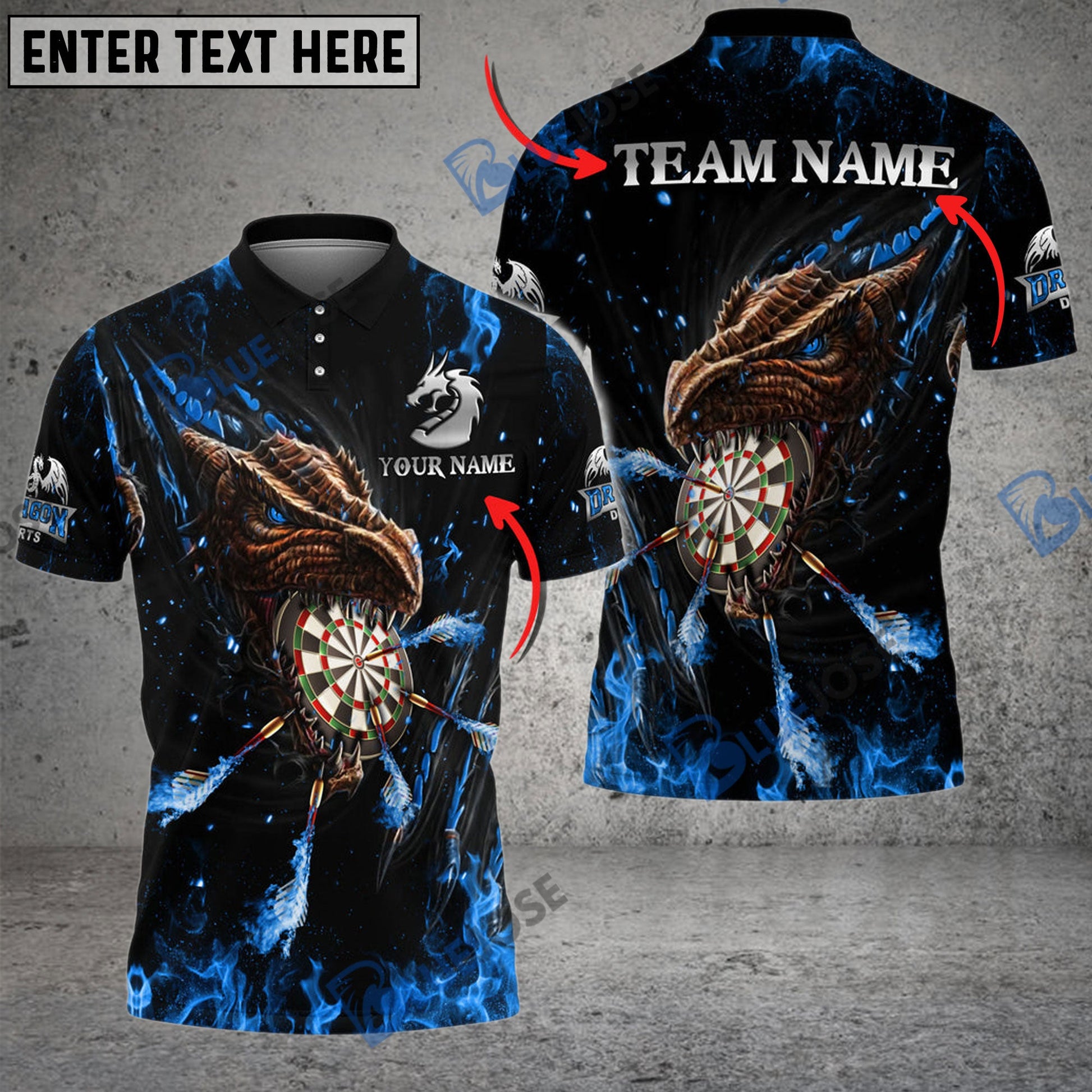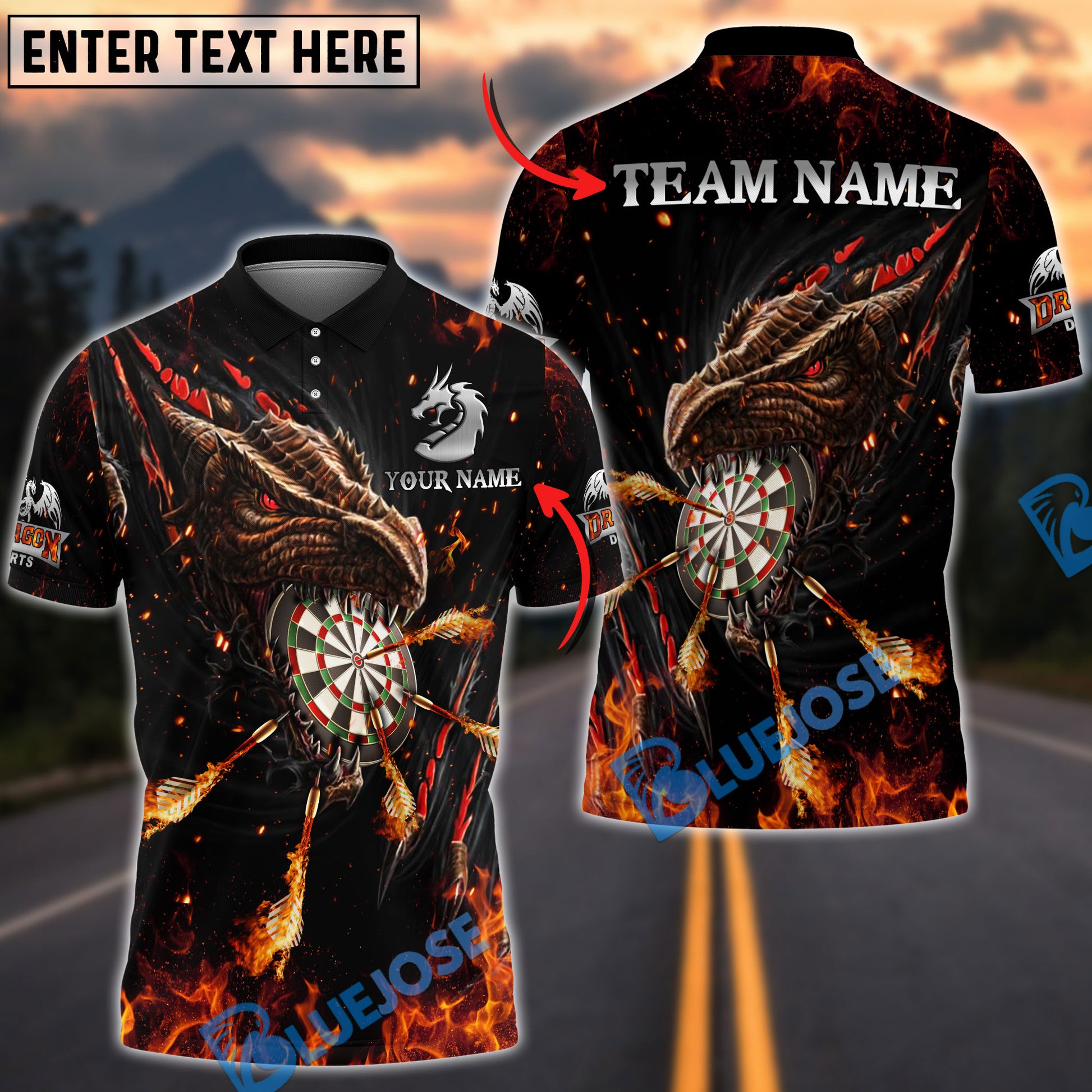 BlueJose Darts Flaming Dragon Personalized Name, Team Name Shirt (4 Colors)