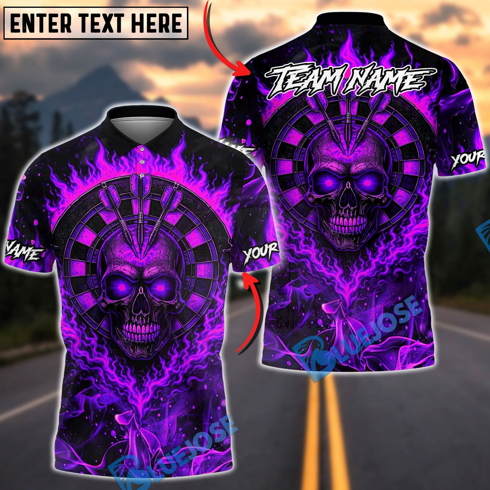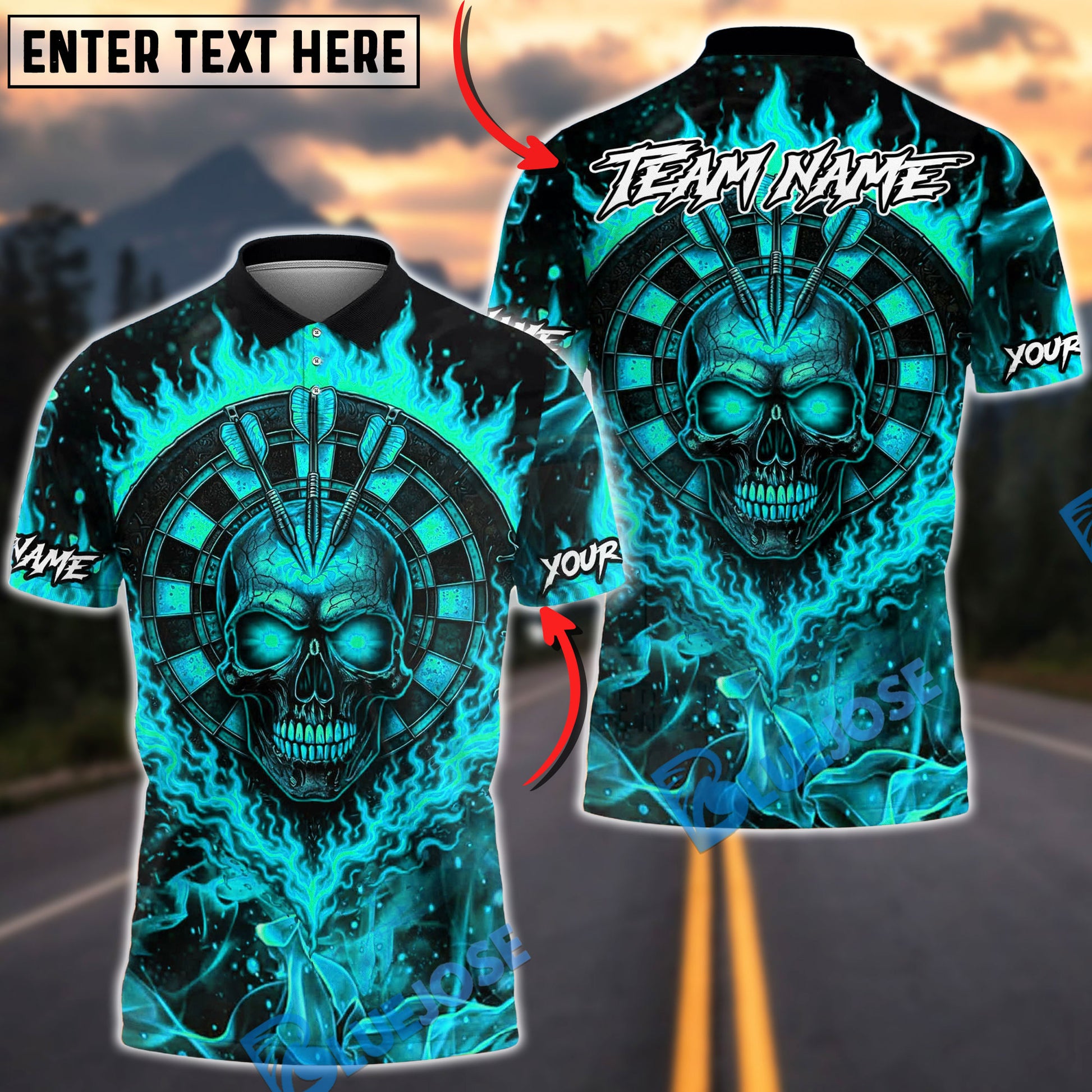 BlueJose Darts Flaming Skull Target Design Multicolor Options Personalized Name Shirt (4 Colors)