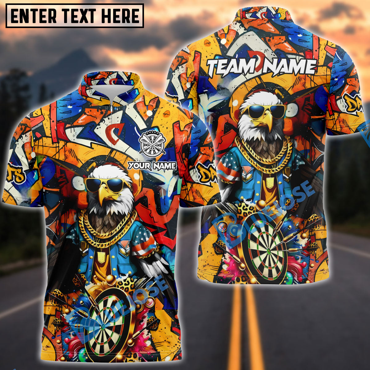 BlueJose Darts Funny Eagle Graffiti Personalized Name, Team Name Shirt (4 Colors)