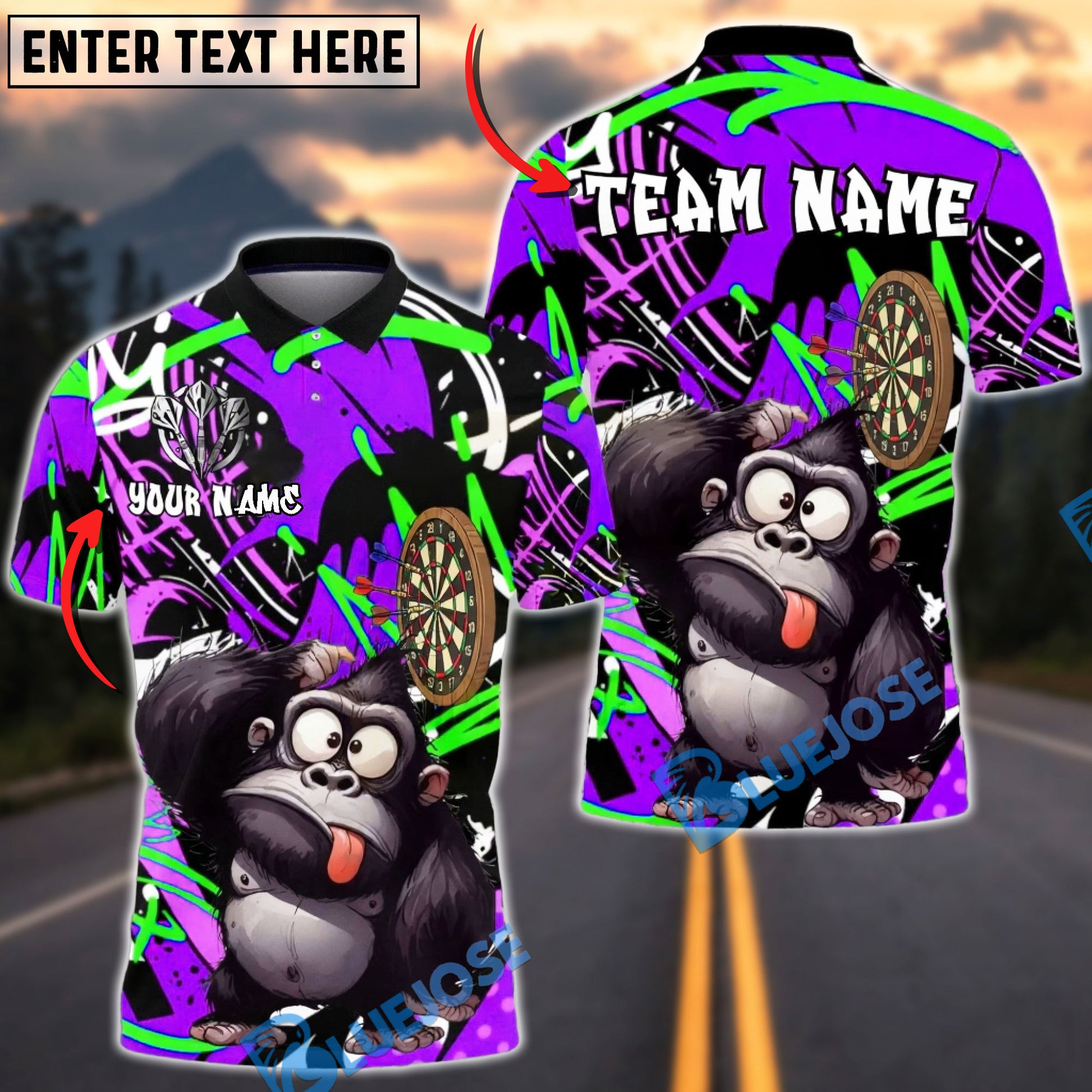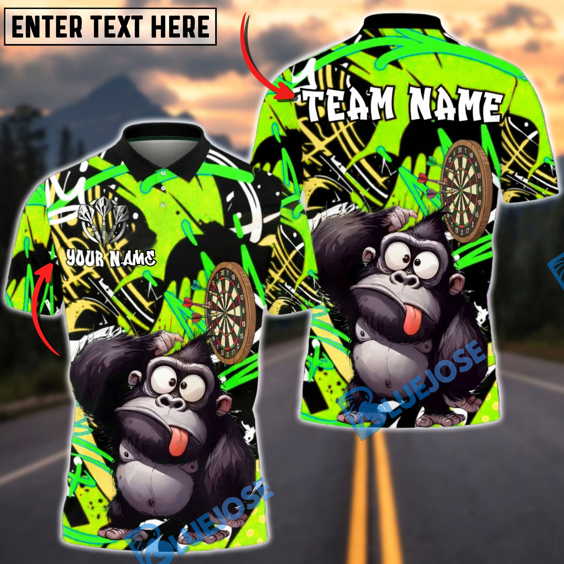 BlueJose Darts Funny Gorilla Character Dartboard Graffiti Multicolor Options Personalized Name Shirt (4 Colors)