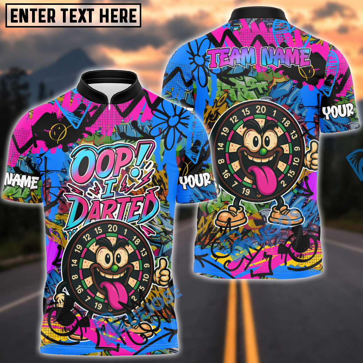 BlueJose Darts Funny Graffiti Oop! I Darted Multicolor Options Personalized Name Shirt (4 Colors)