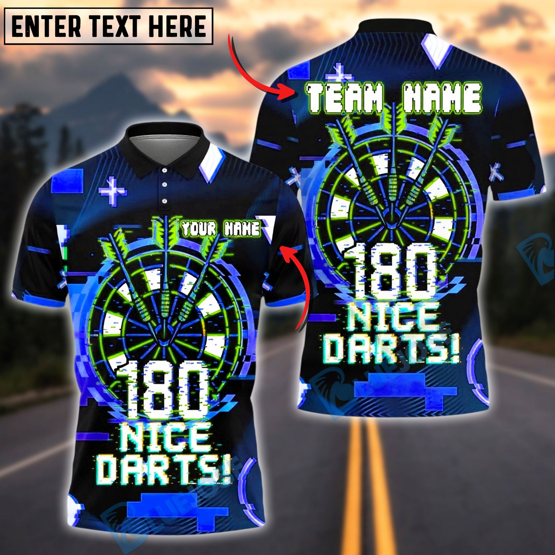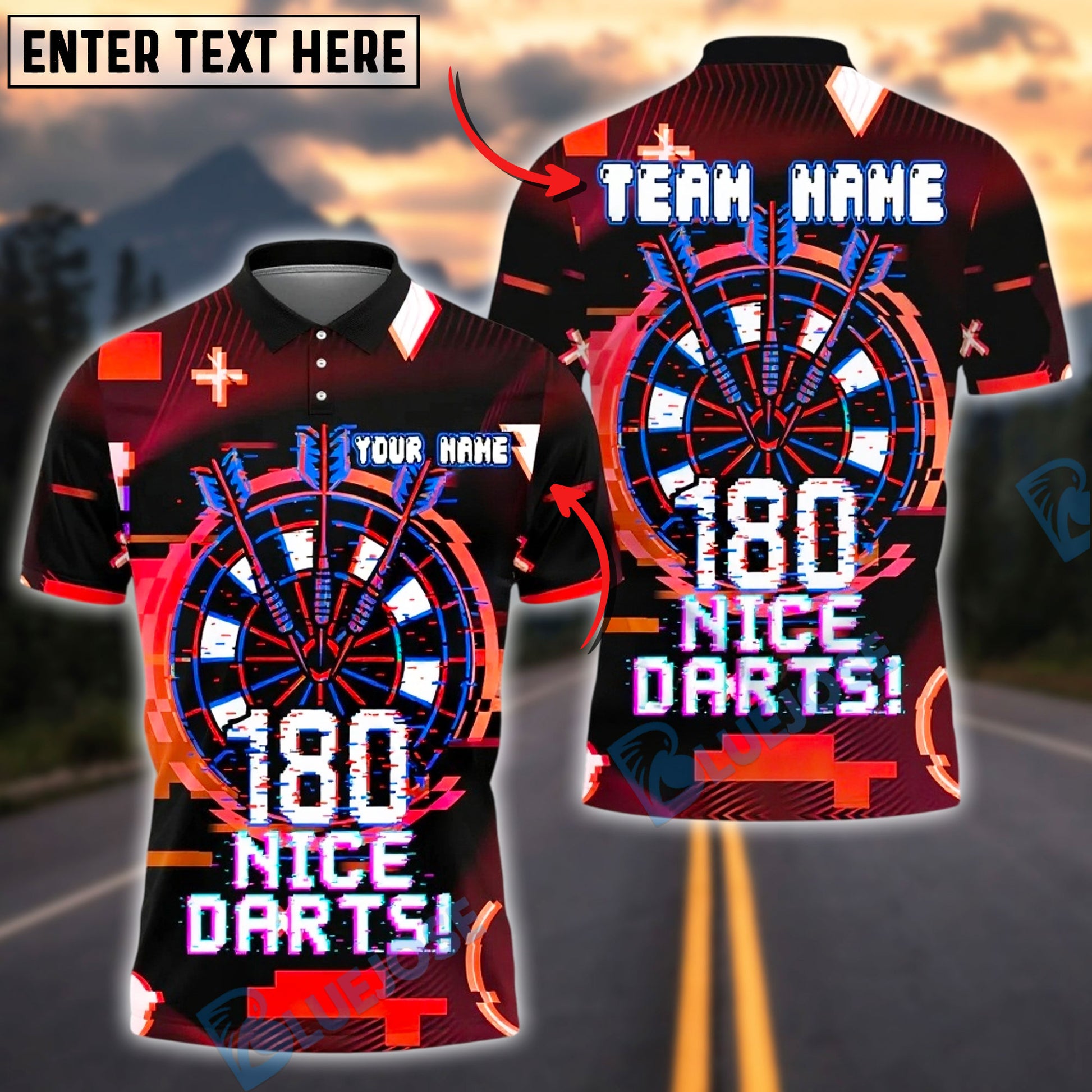 BlueJose Darts Glitch Digital Dartboard Personalized Name, Team Name Unisex Shirt (4 Colors)