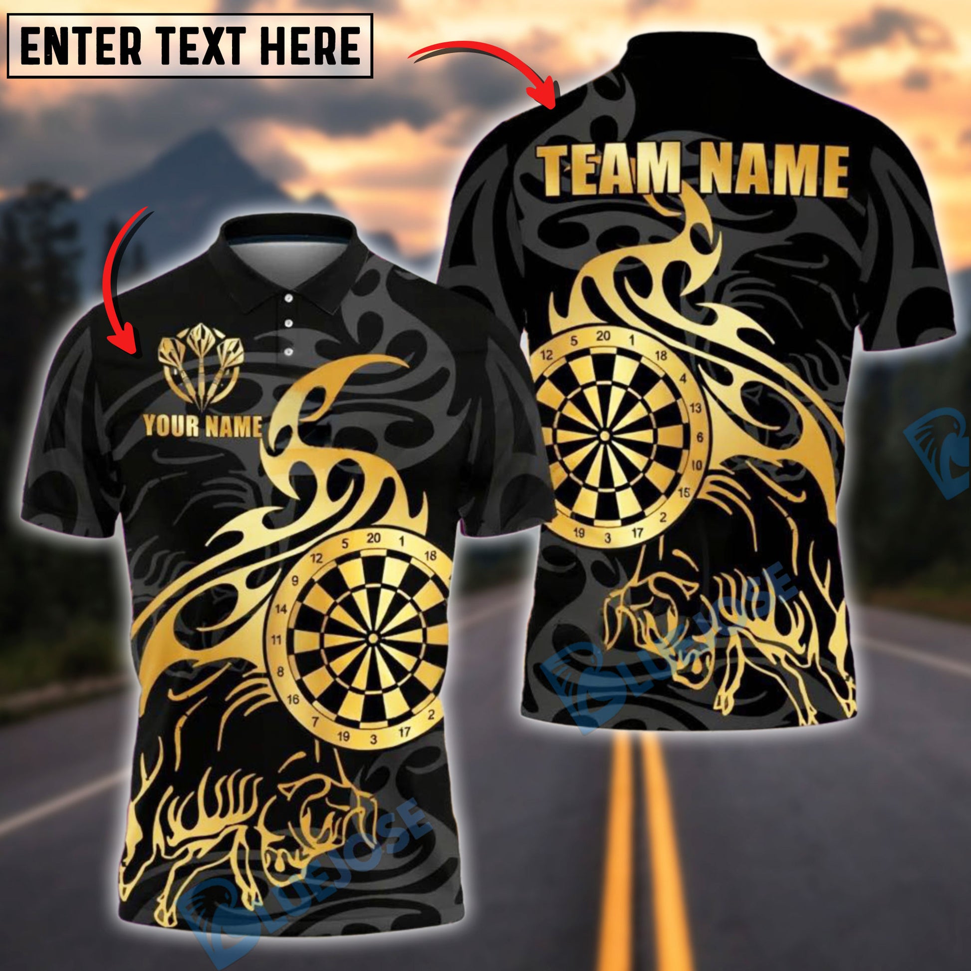 BlueJose Darts Golden Bull Tribal Flame Customized Name, Team Name 3D Shirt (4 Colors)