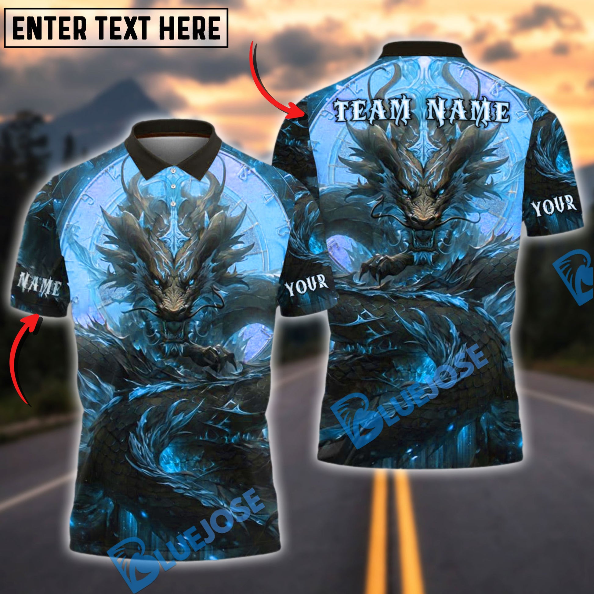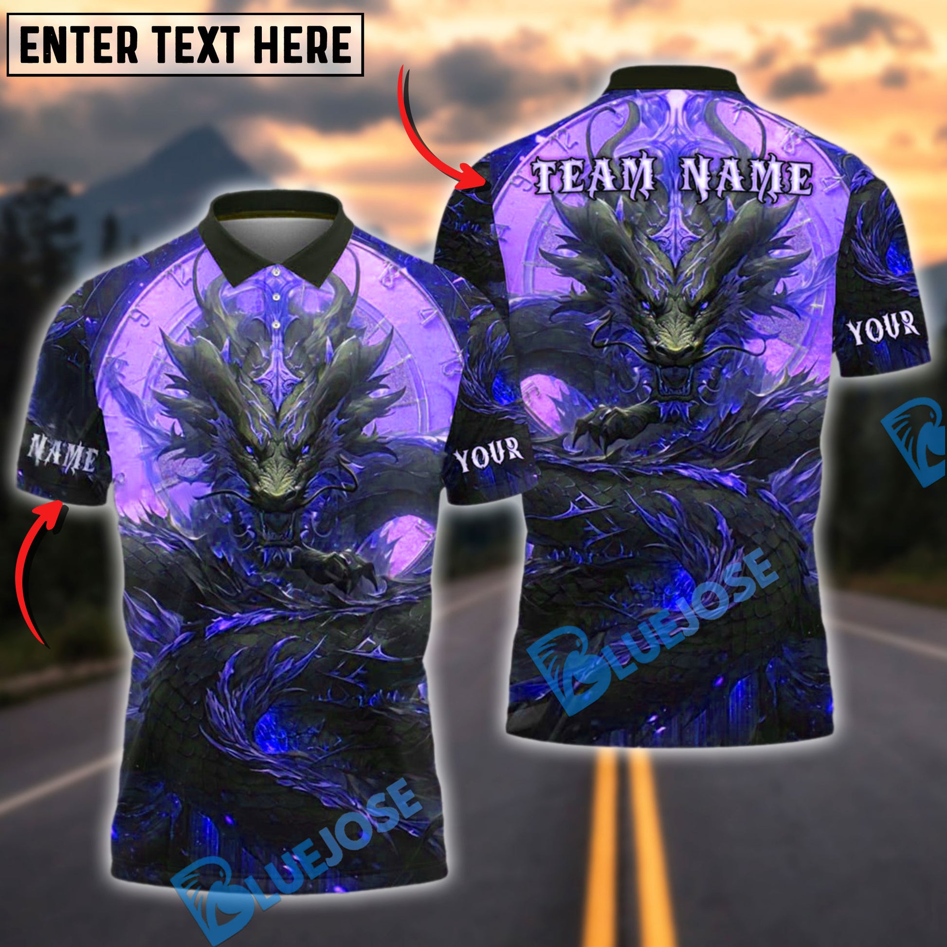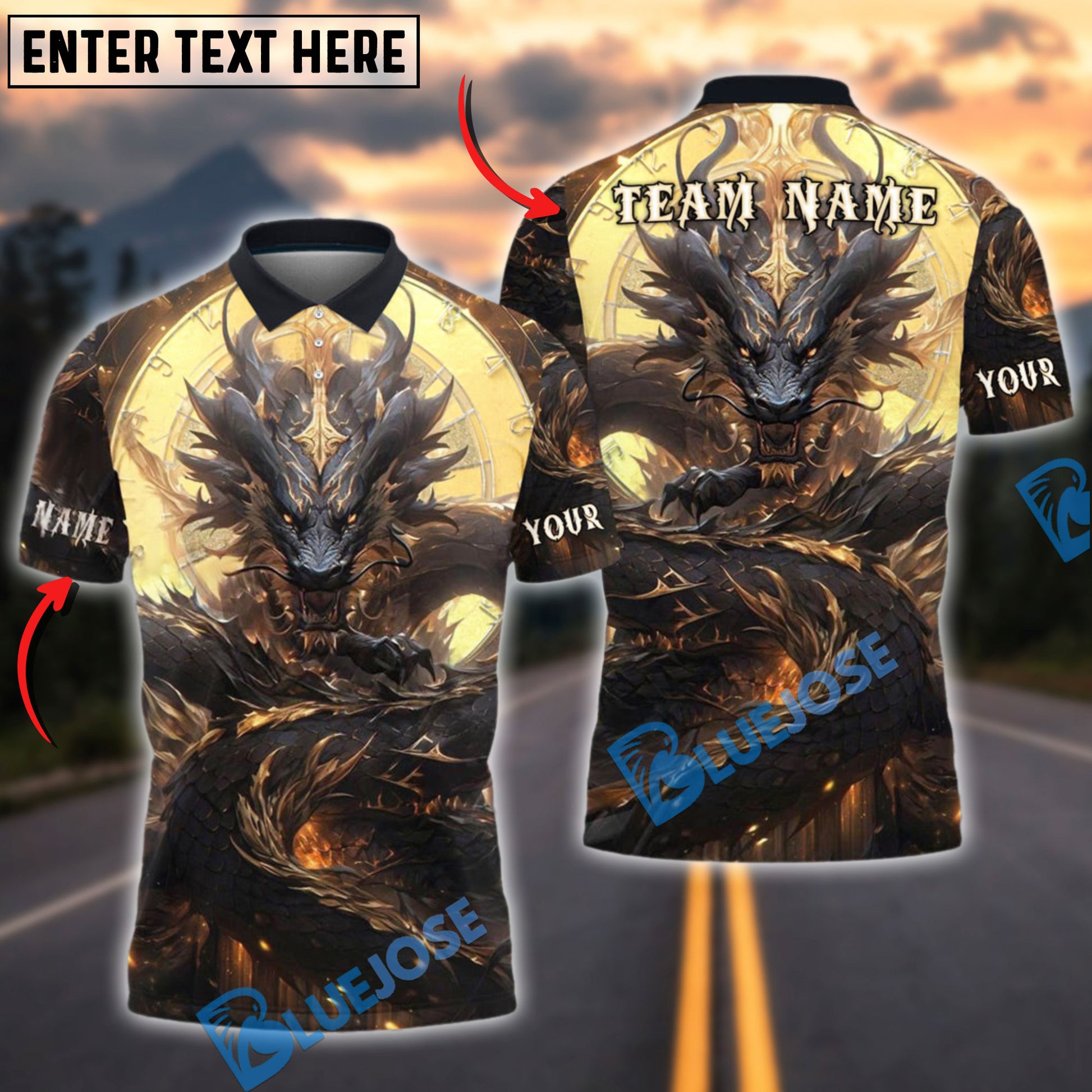 BlueJose Darts Golden Clockwork Dragon Fantasy Personalized Name, Team Name Shirt (4 Colors)