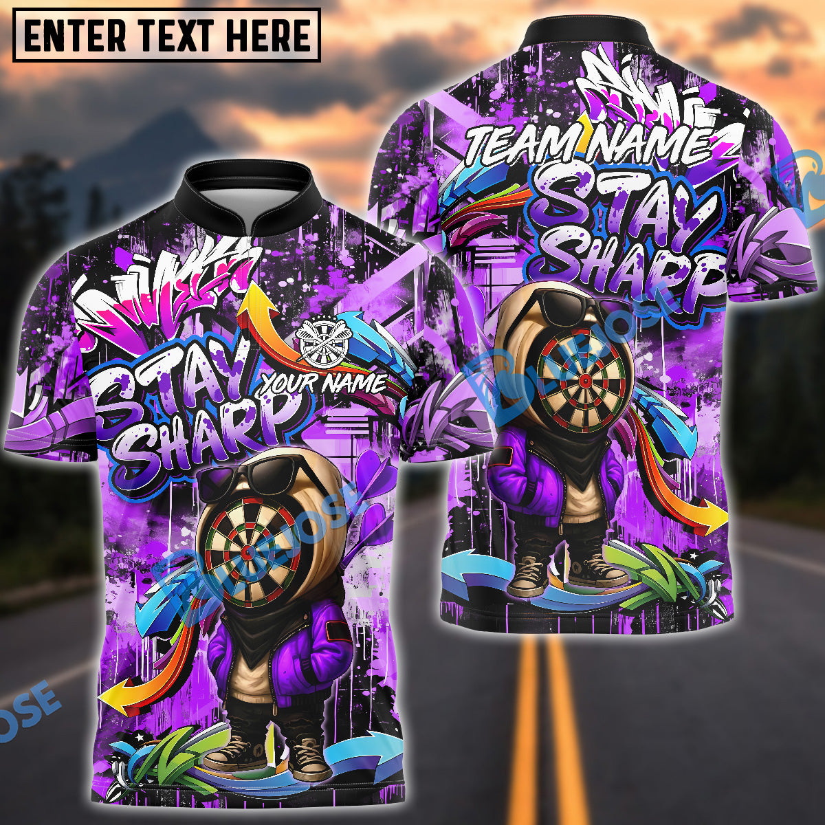 BlueJose Darts Graffiti Character Stay Sharp Personalized Name, Team Name Unisex Shirt (4 Colors)