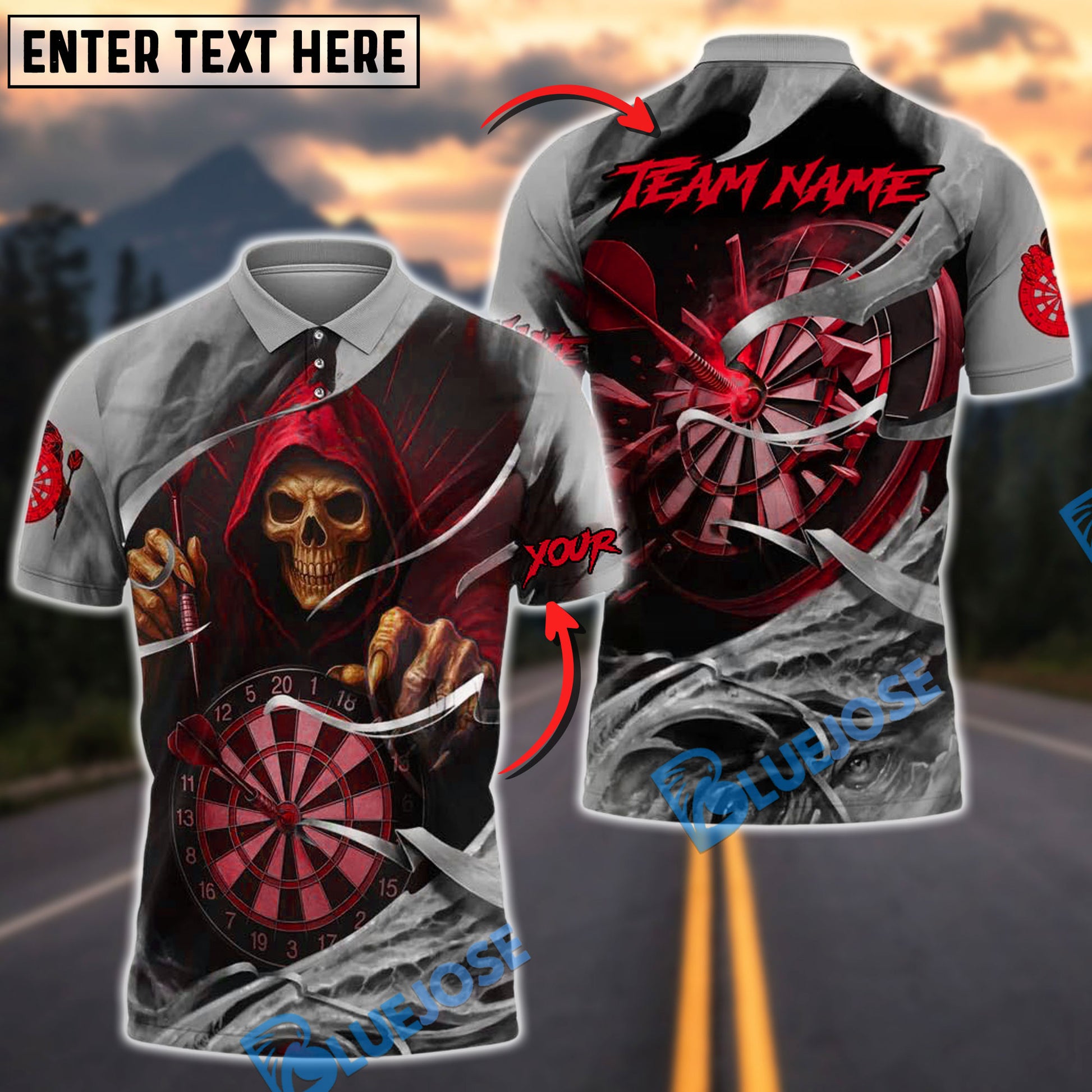 BlueJose Darts Grim Reaper Skull Dartboard Customized Name, Team Name 3D Shirt (4 Colors)