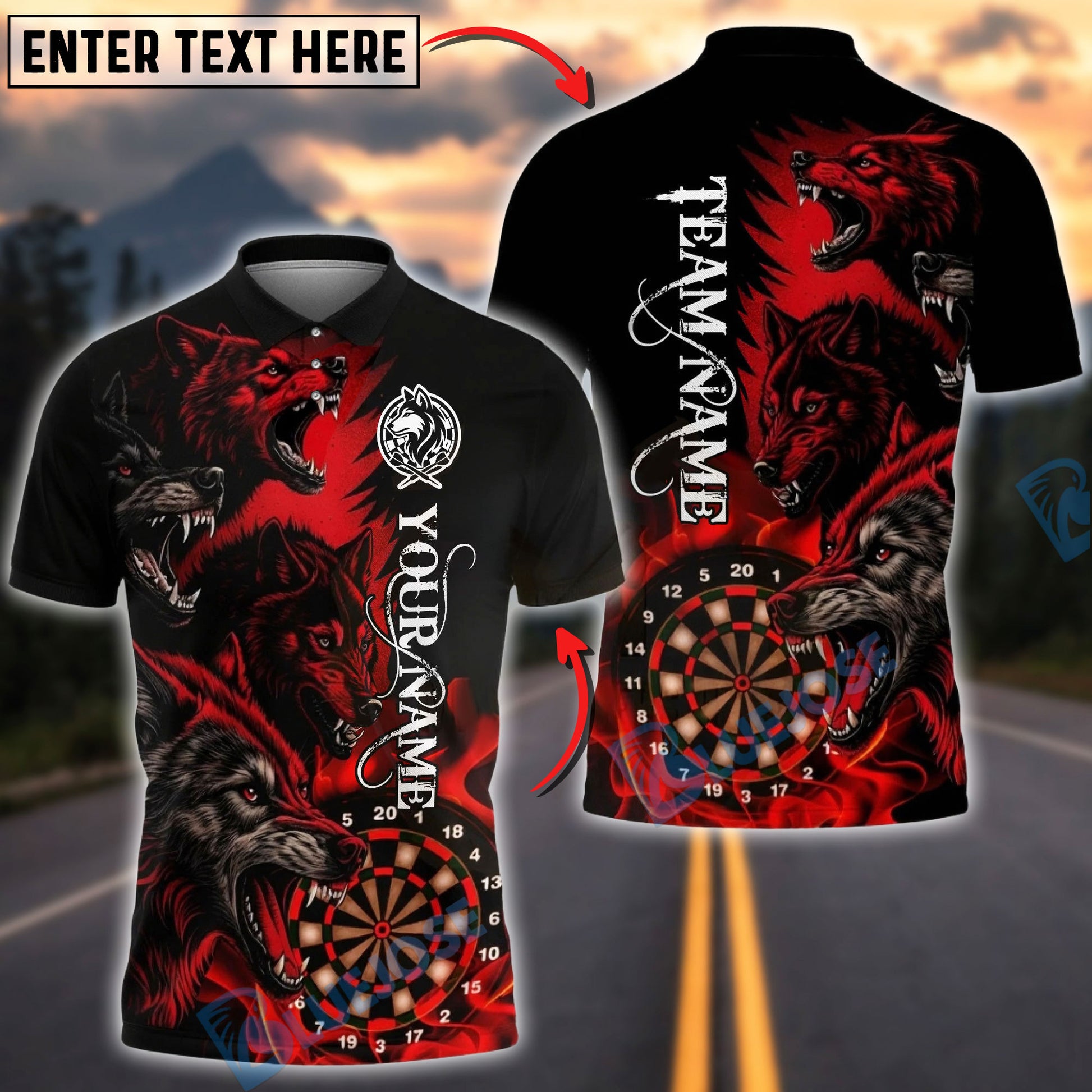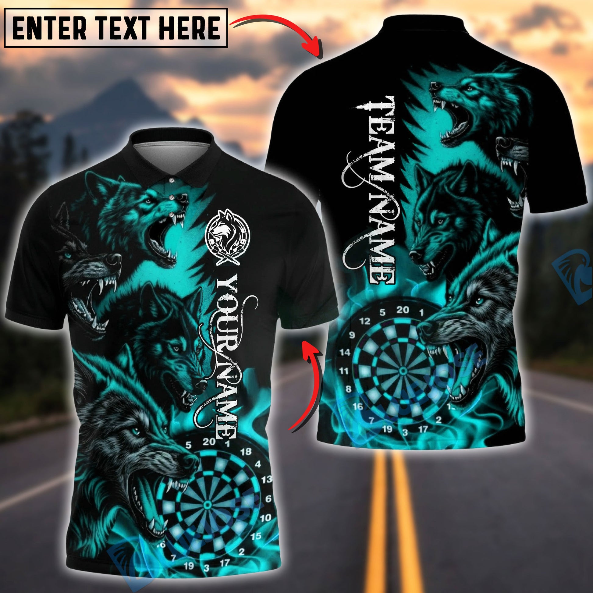 BlueJose Darts Howling Wolf Dartboard Multicolor Options Personalized Name Shirt (4 Colors)