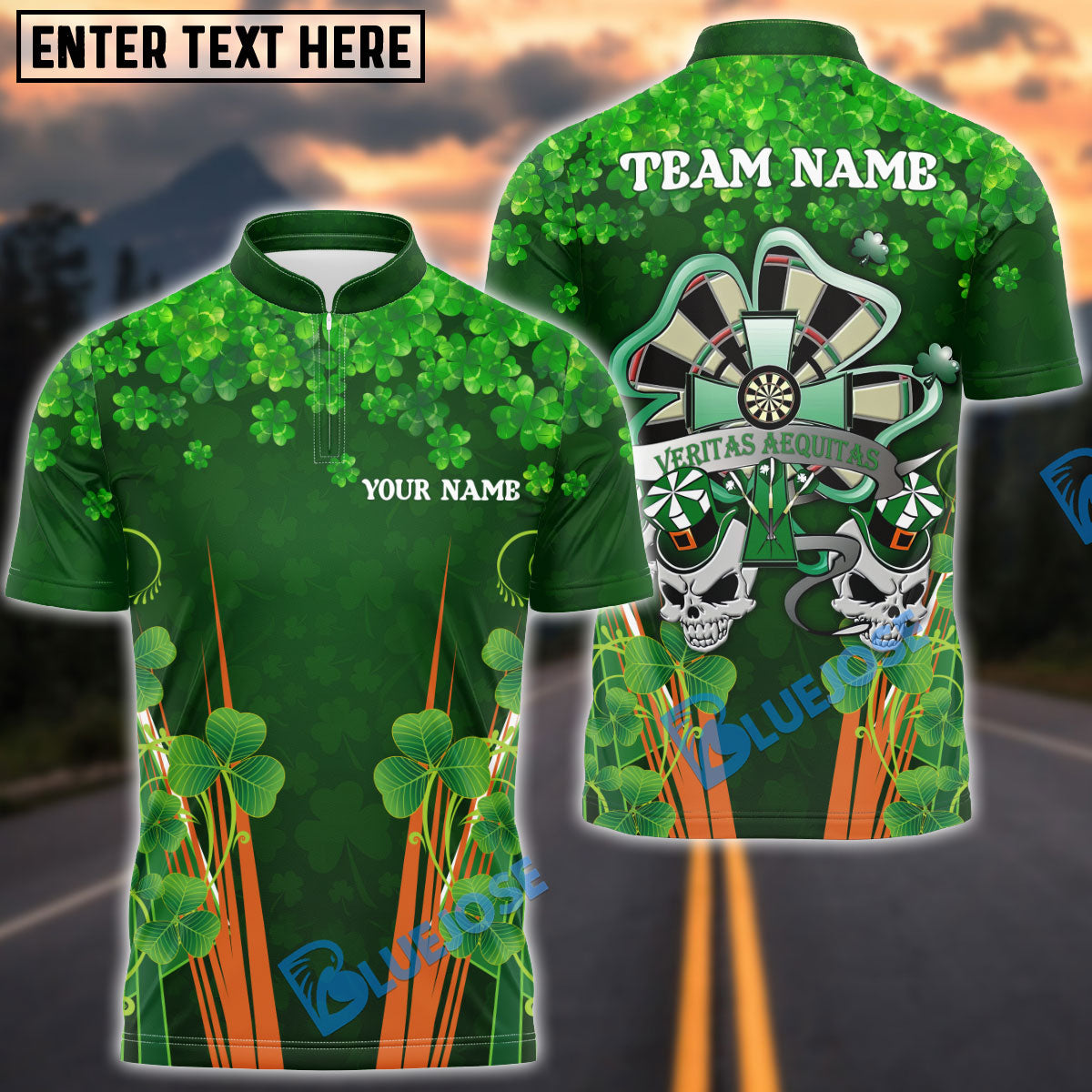 BlueJose Darts Irish Skull Veritas Aequitas Personalized Name, Team Name Shirt