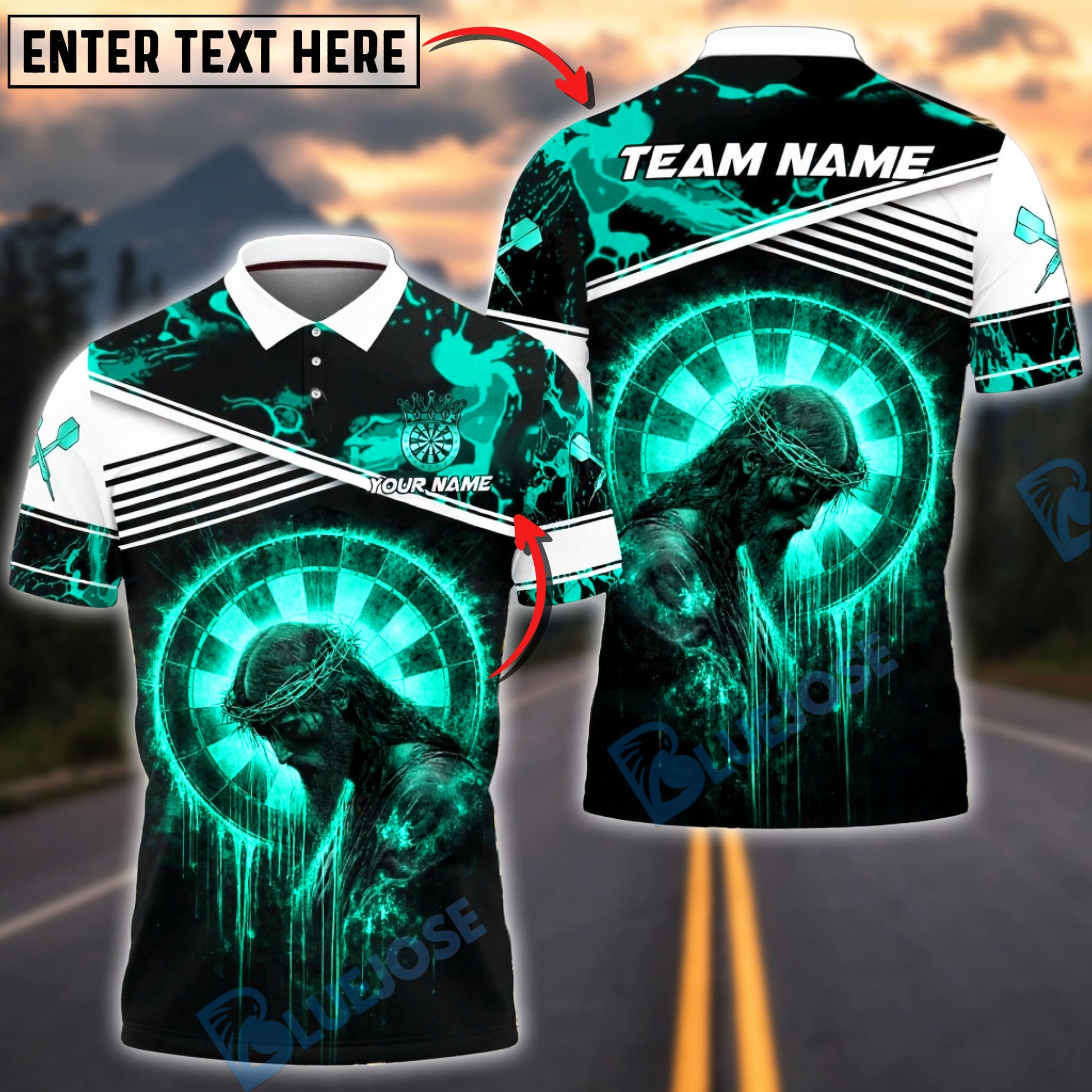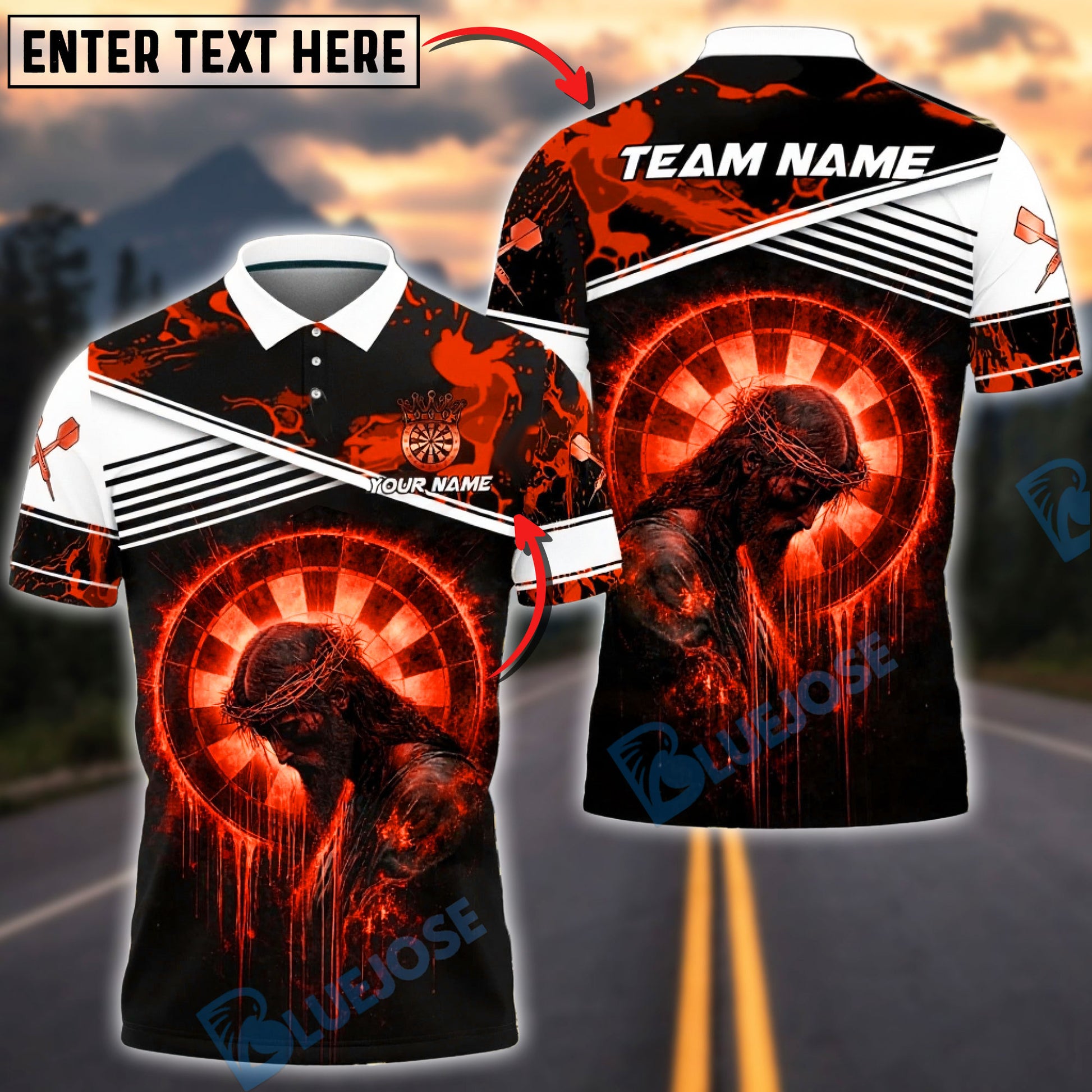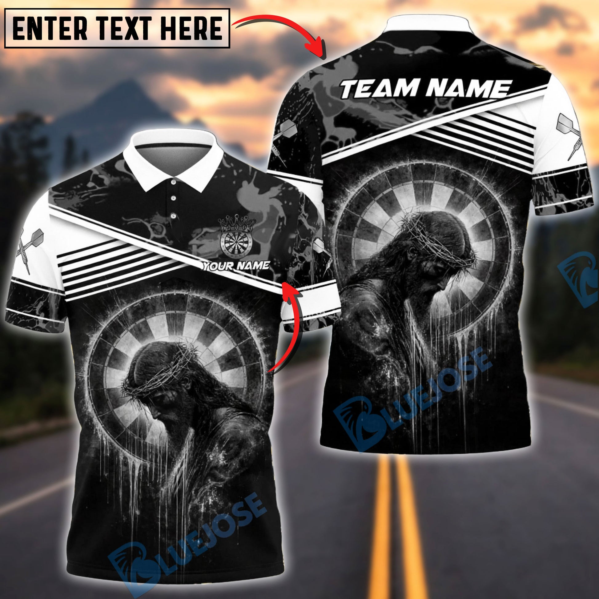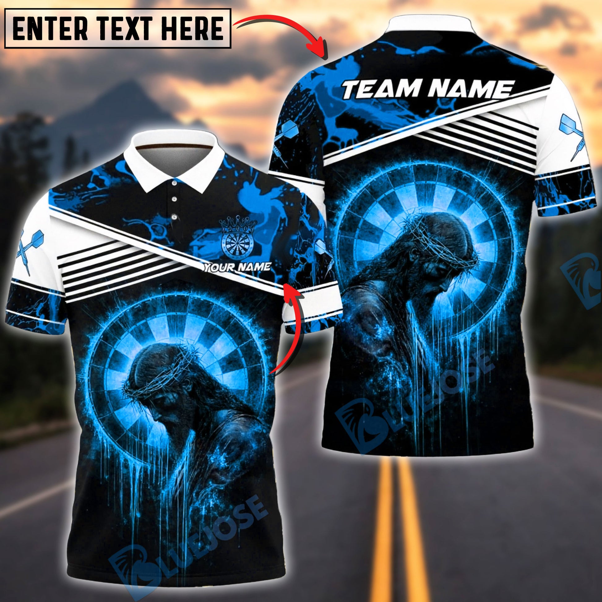 BlueJose Darts Jesus Dartboard Crown Art Luxury Gold Design Multicolor Options Personalized Name Shirt (6 Colors)