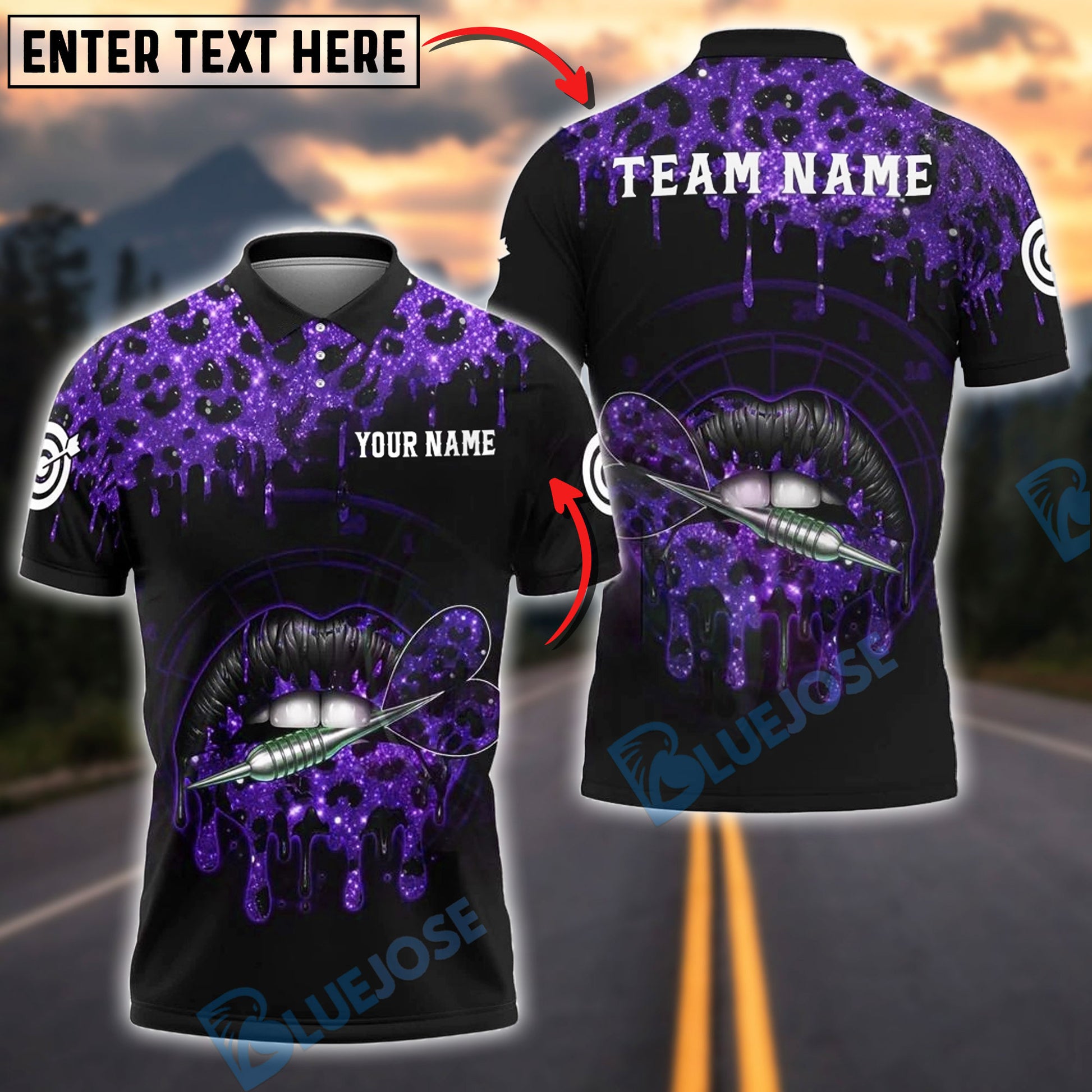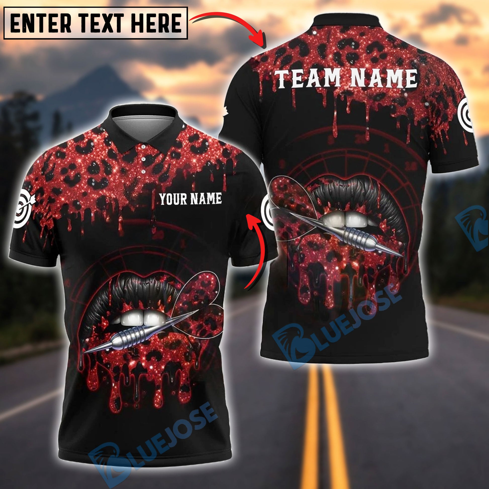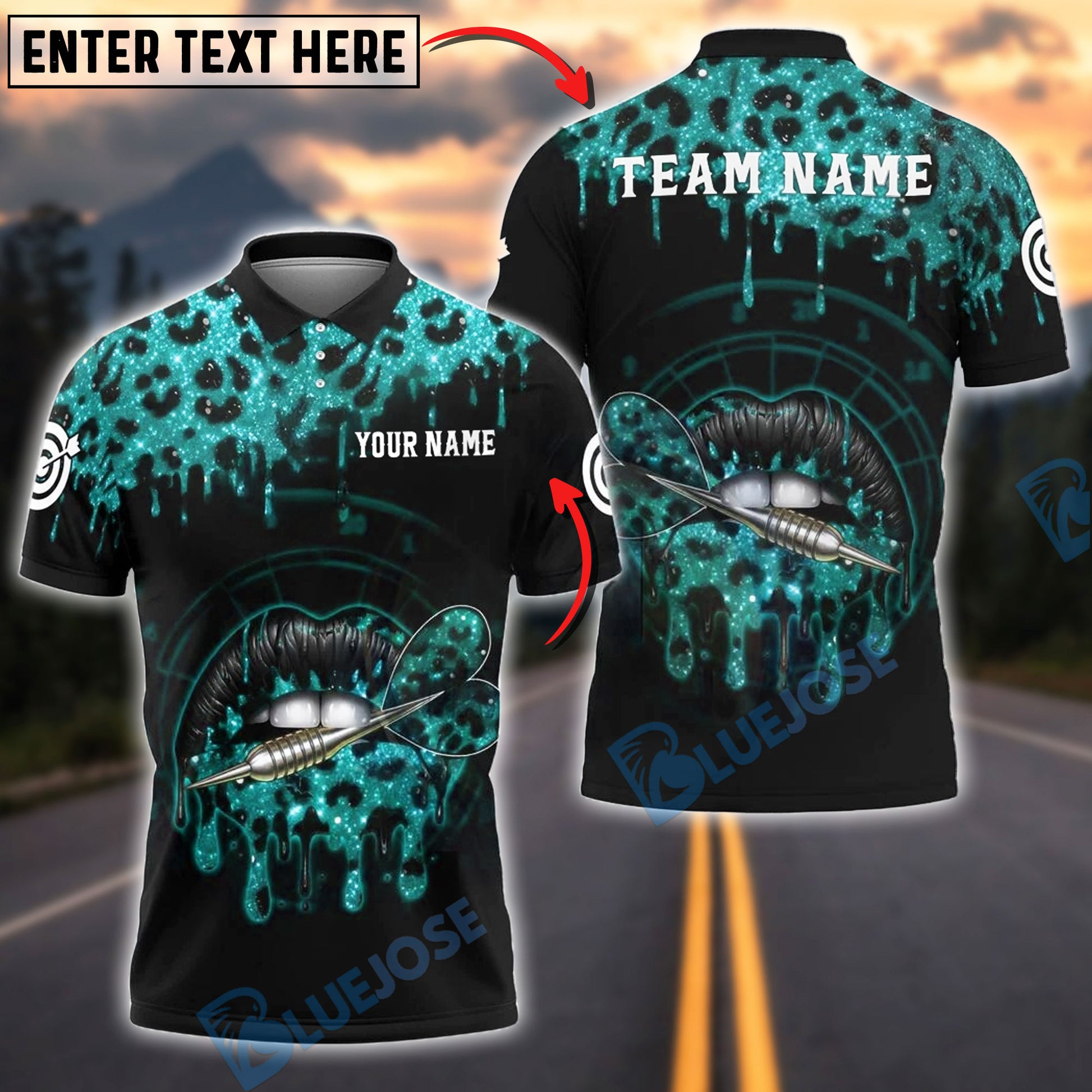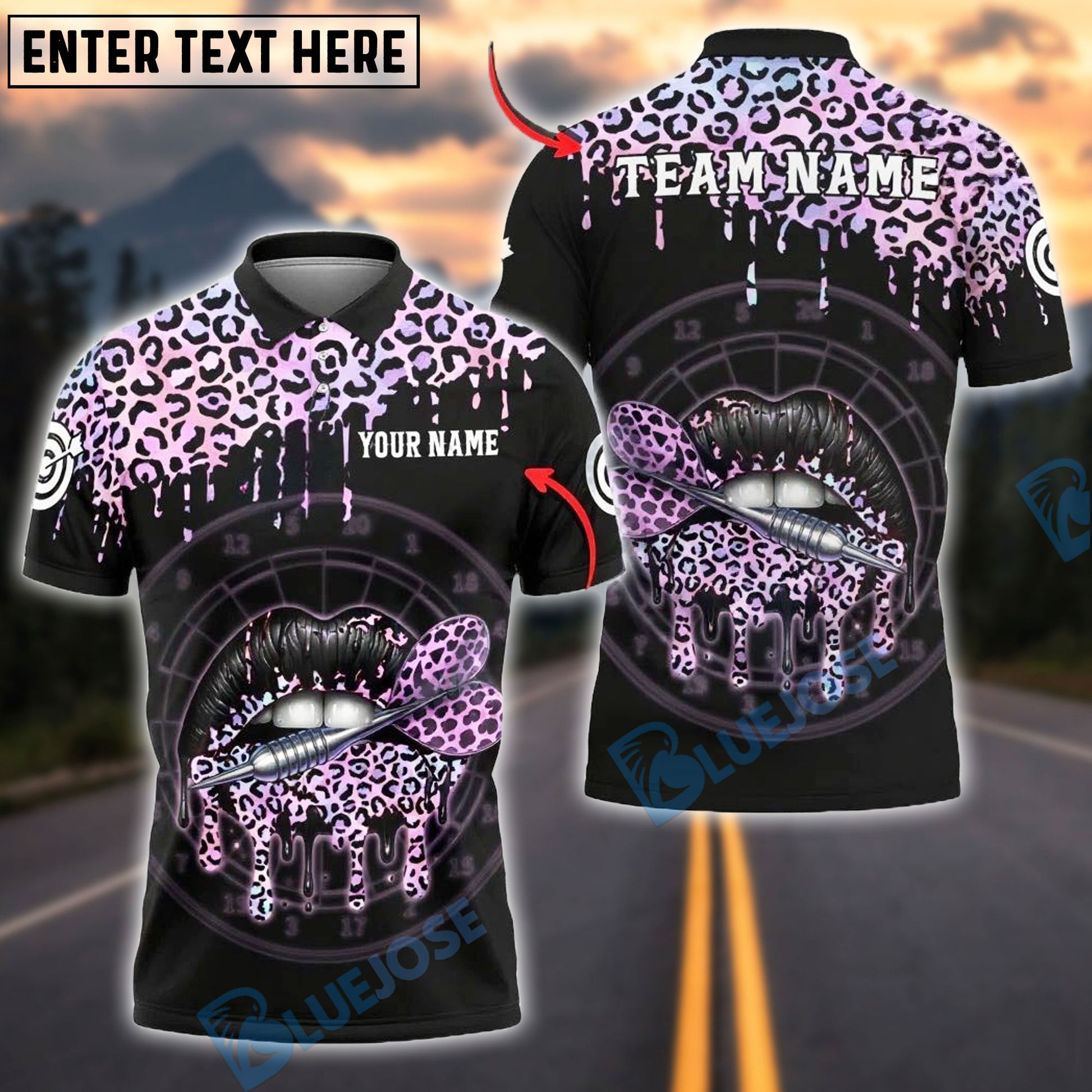 BlueJose Darts Leopard Lips Dartboard Personalized Name, Team Name Shirt (6 Colors)