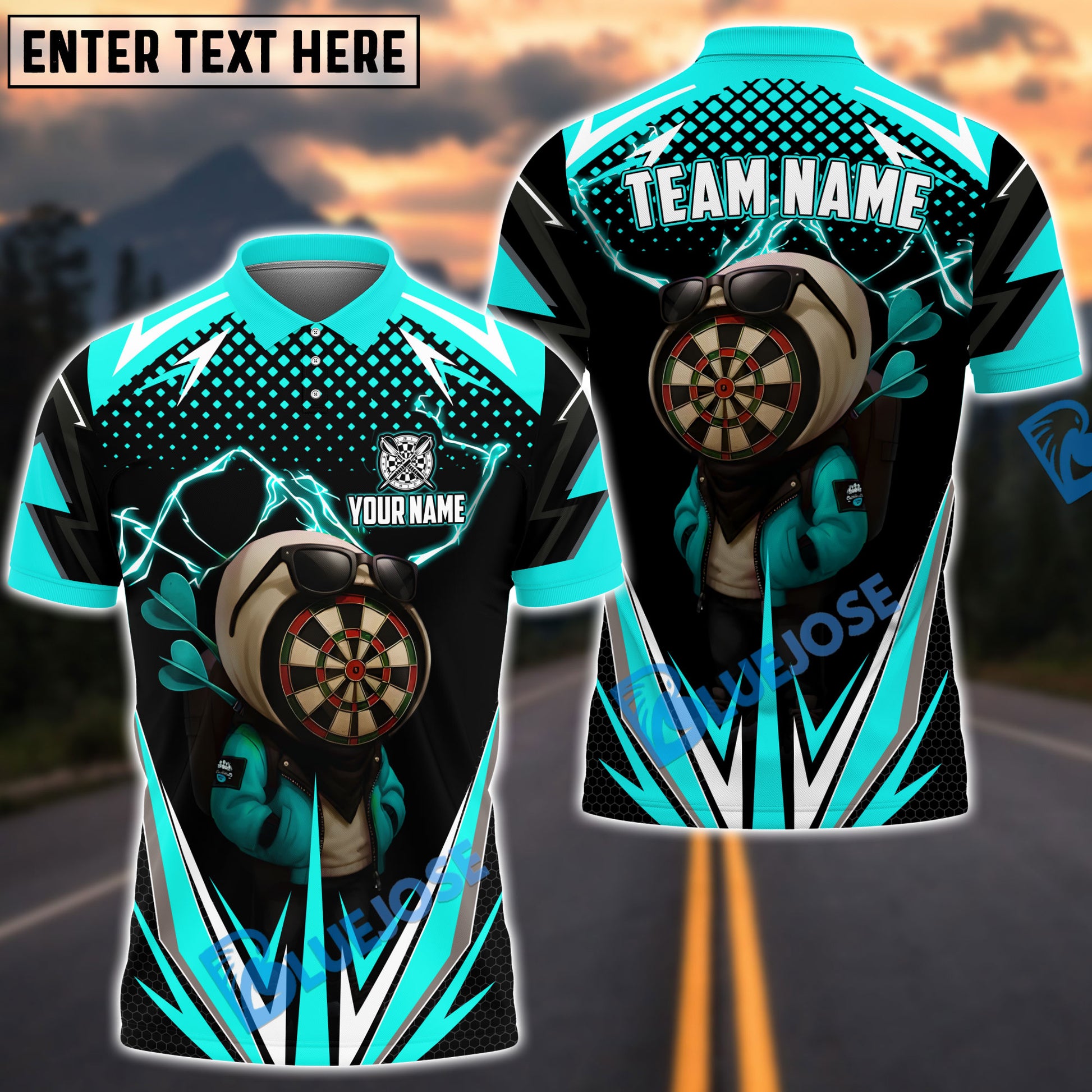 BlueJose Darts Lightning Dartboard Character Customized Name, Team Name 3D Shirt (4 Colors)