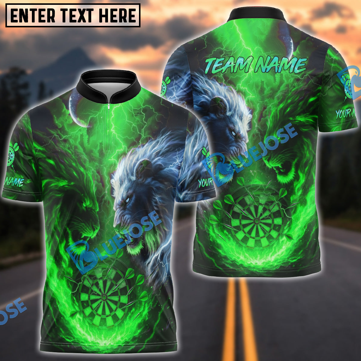 BlueJose Darts Lion Fire vs Ice Design Personalized Name, Team Name Unisex Shirt (4 Colors)