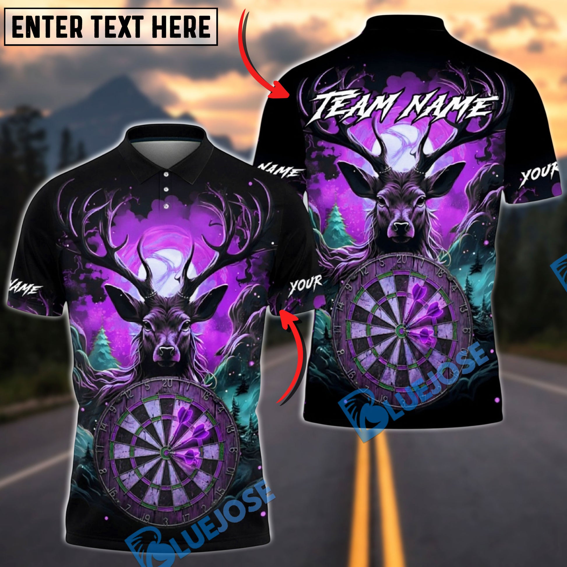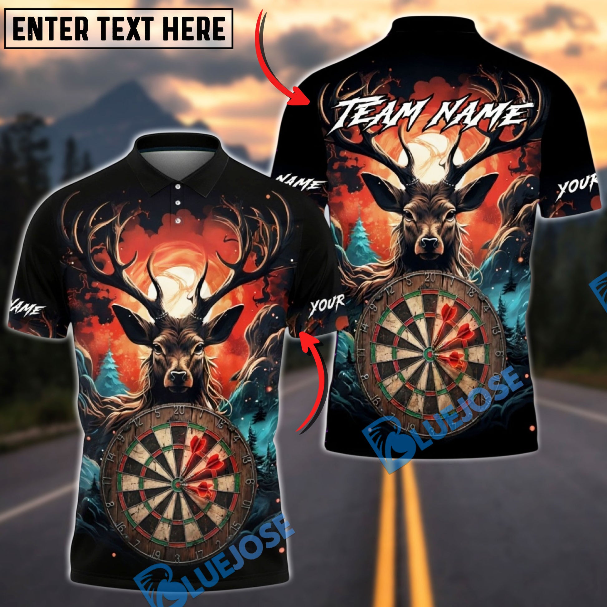 BlueJose Darts Majestic Deer Forest Dartboard Art Multicolor Options Personalized Name Shirt (4 Colors)