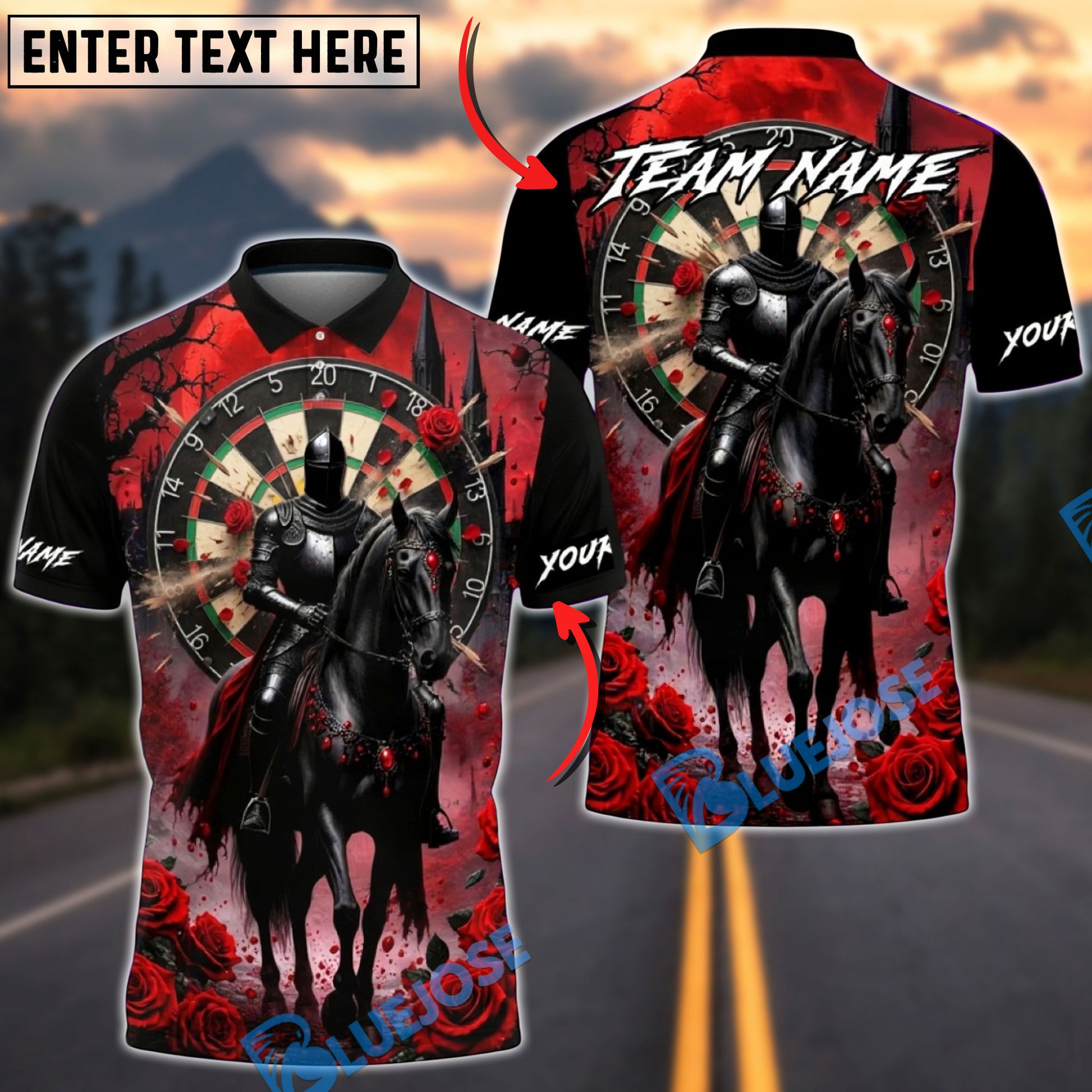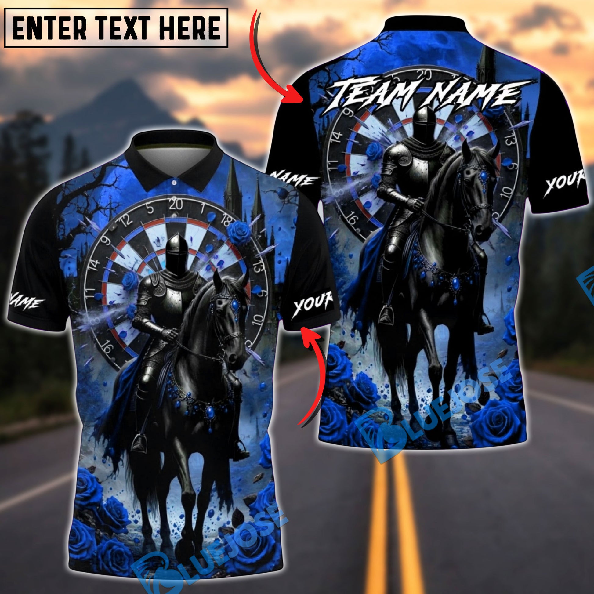 BlueJose Darts Medieval Knight Gothic Dartboard Art Multicolor Options Personalized Name Shirt (4 Colors)