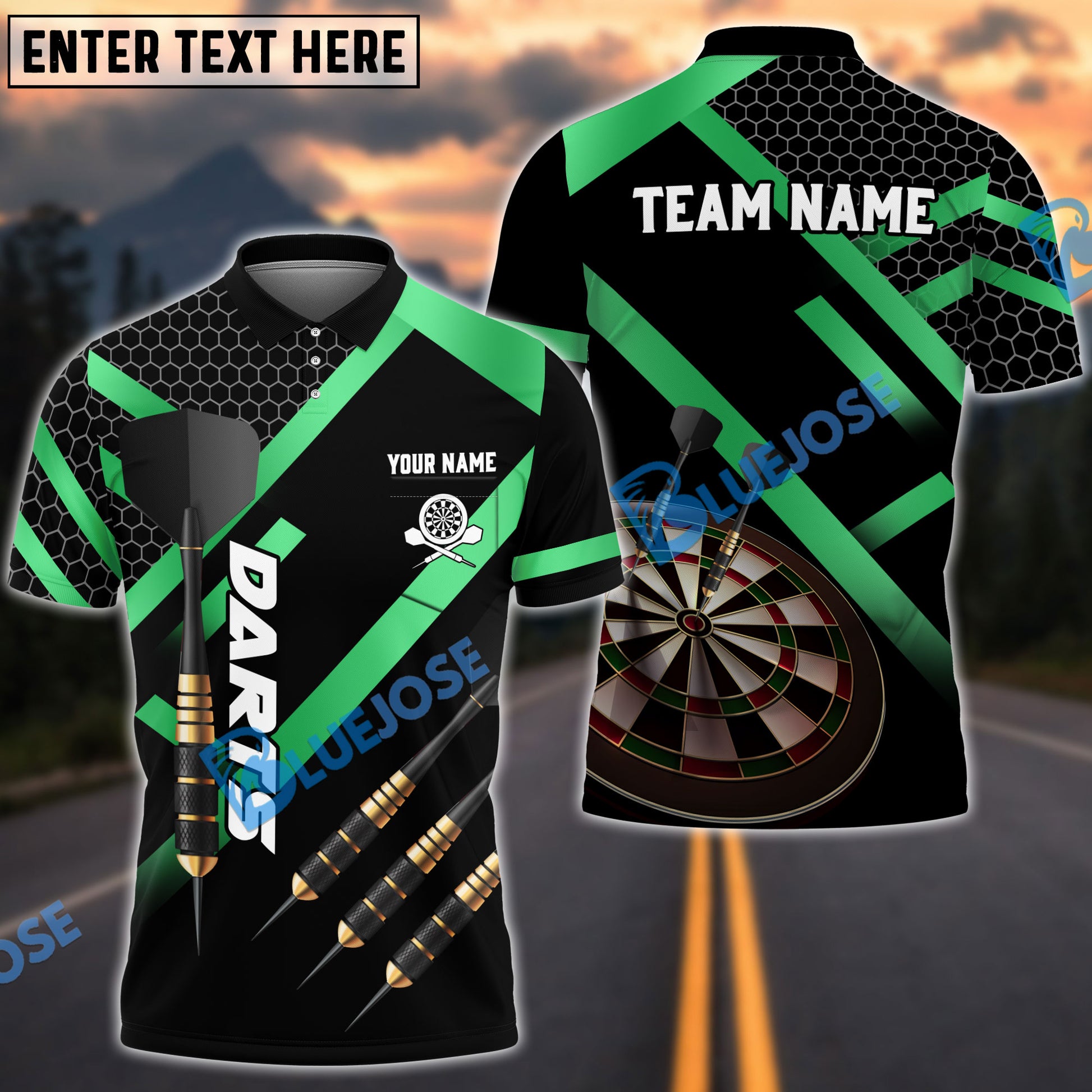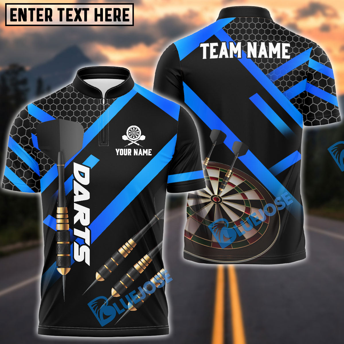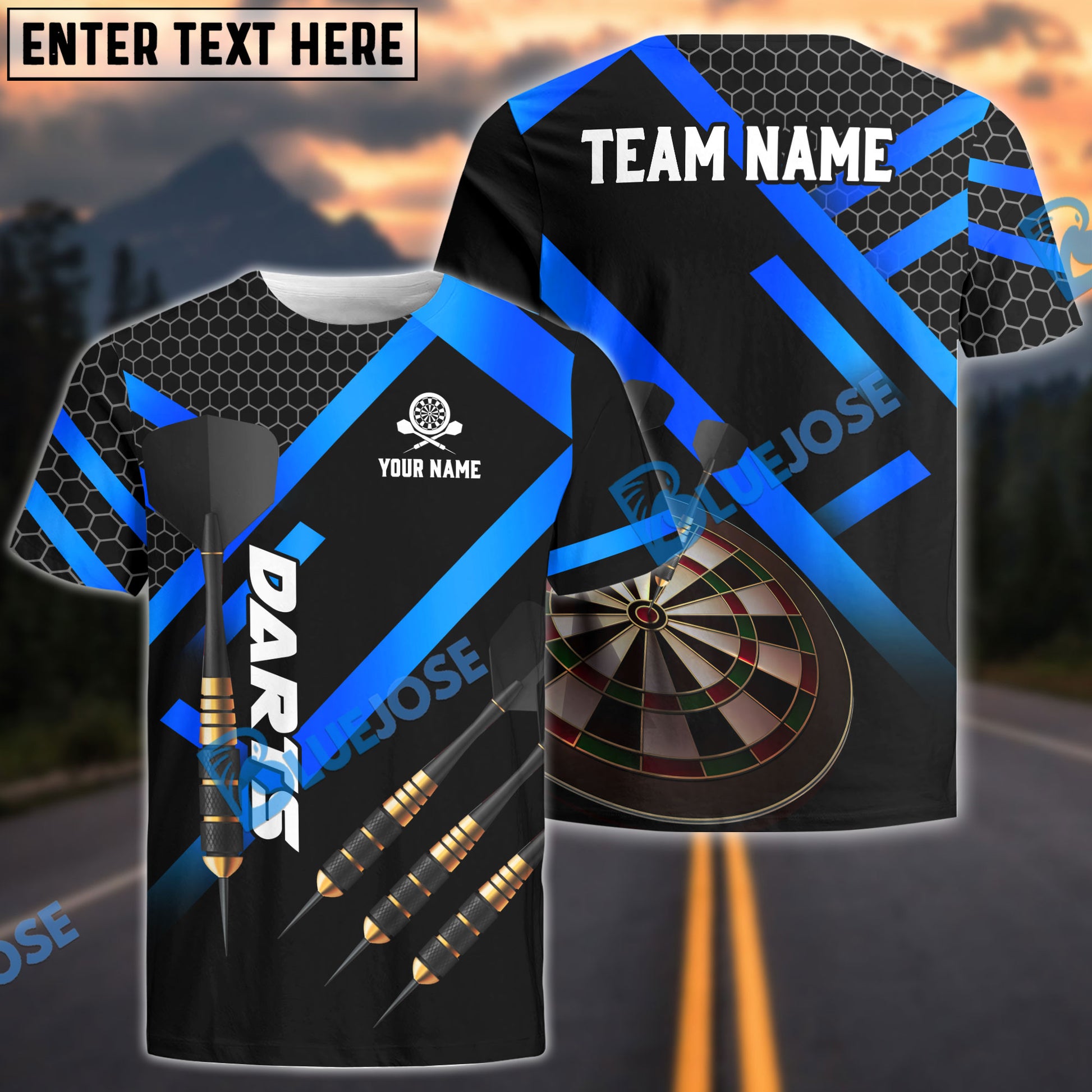 BlueJose Darts Metalic Style Personalized Name, Team Name Shirt (4 Colors)