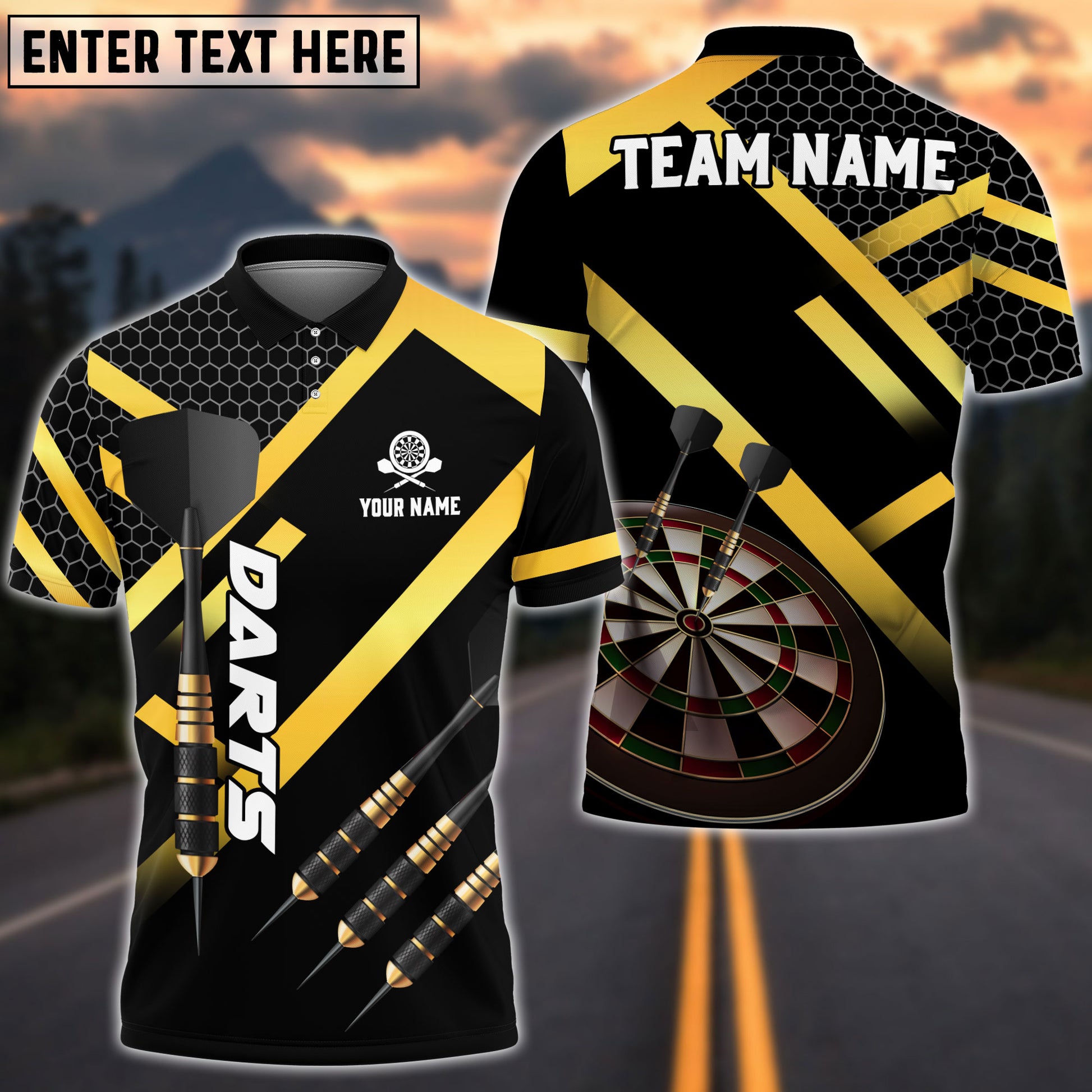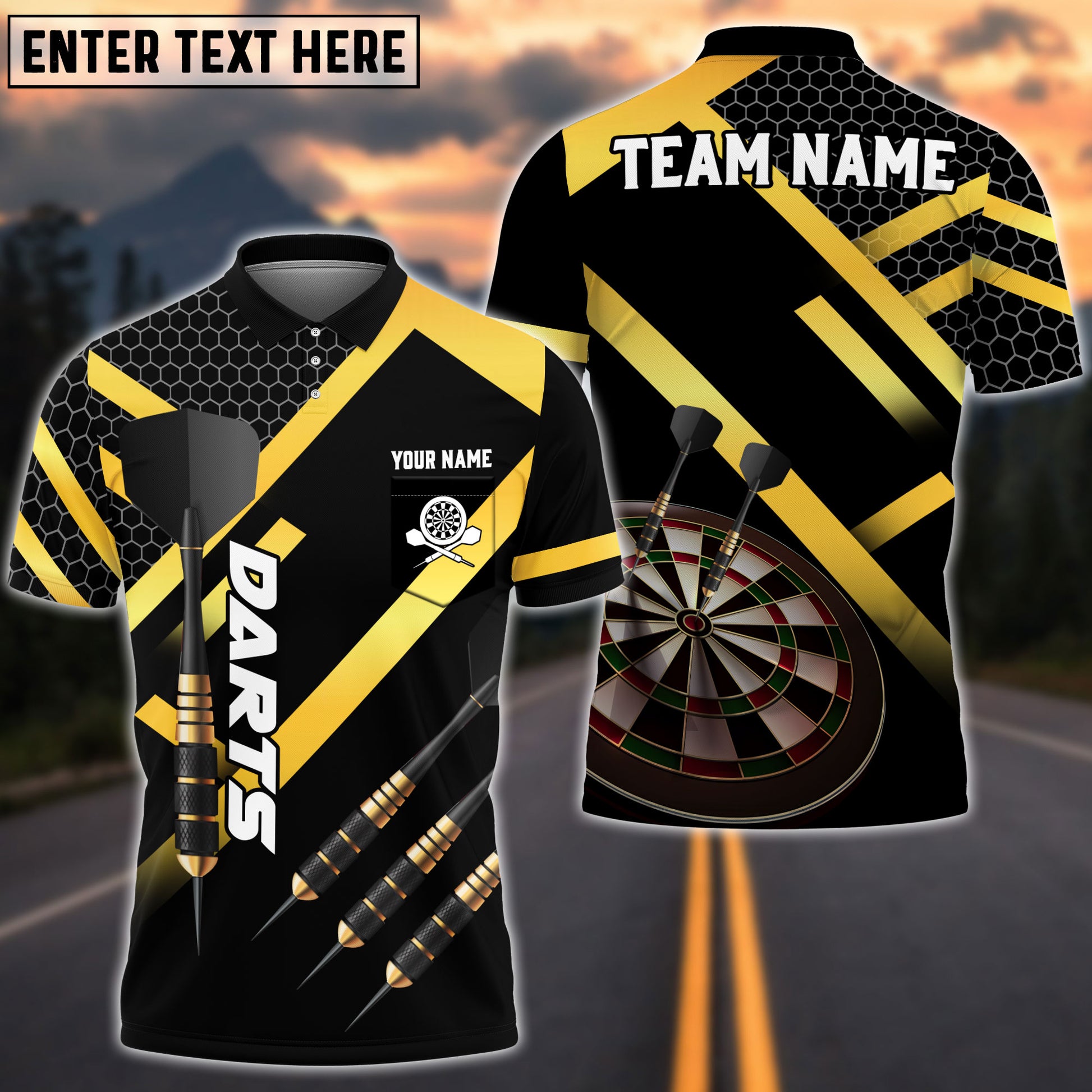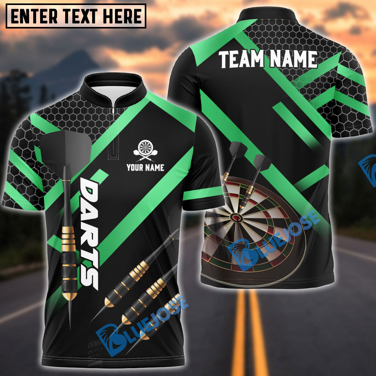 BlueJose Darts Metalic Style Personalized Name, Team Name Shirt (4 Colors)