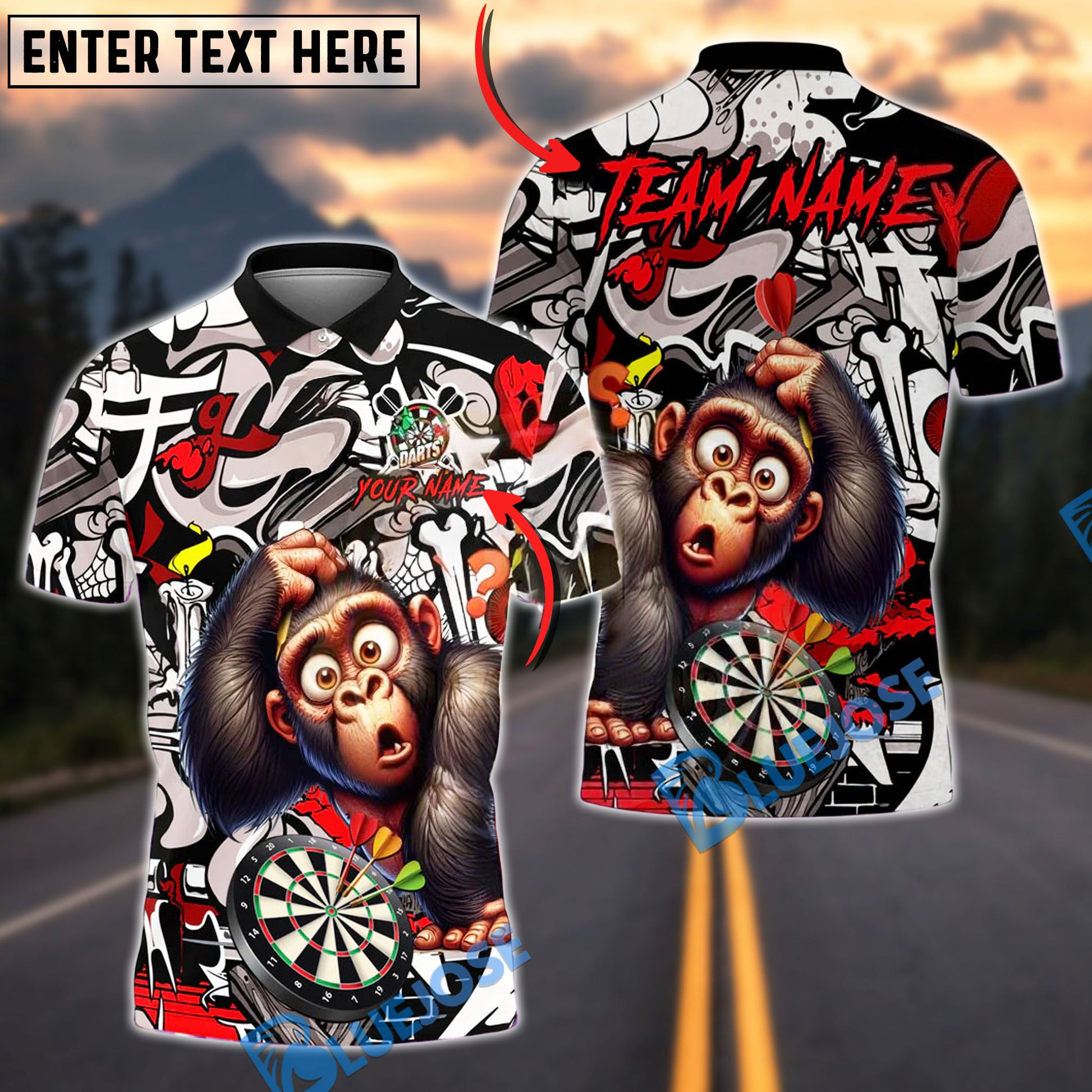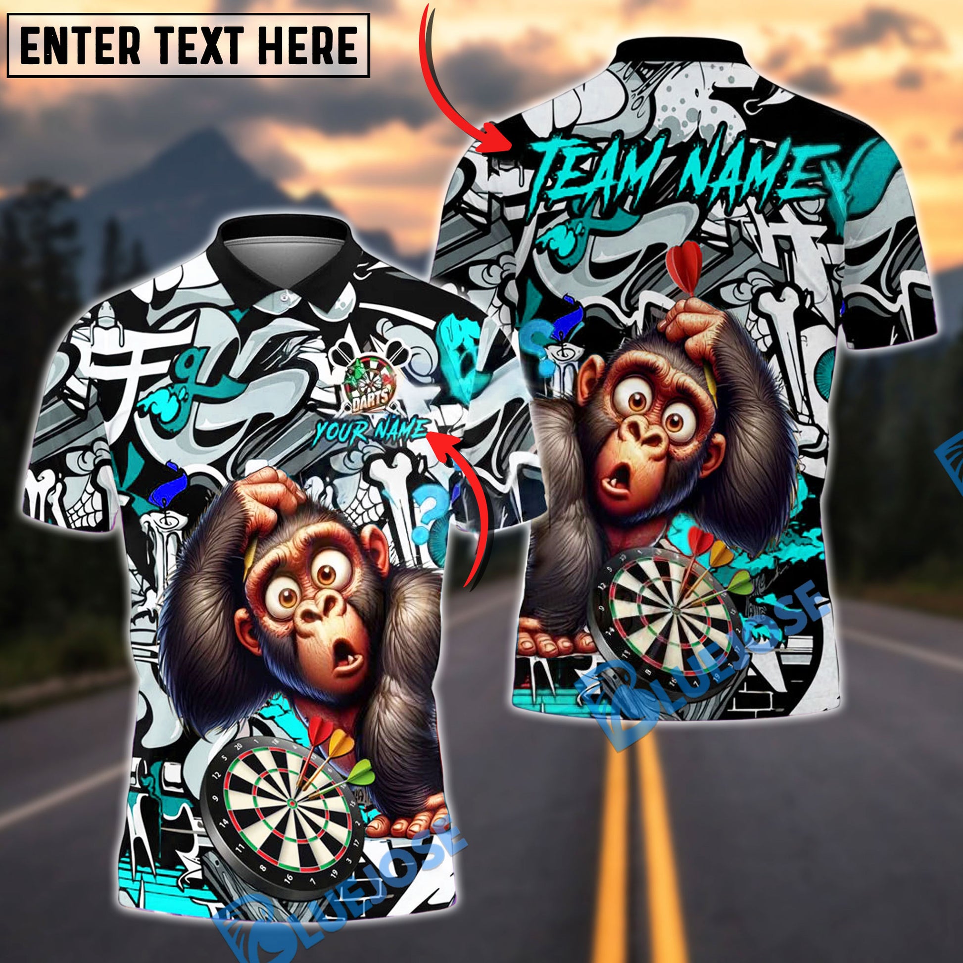 BlueJose Darts Monkey Graffiti Personalized Name, Team Name Unisex Shirt (4 Colors)