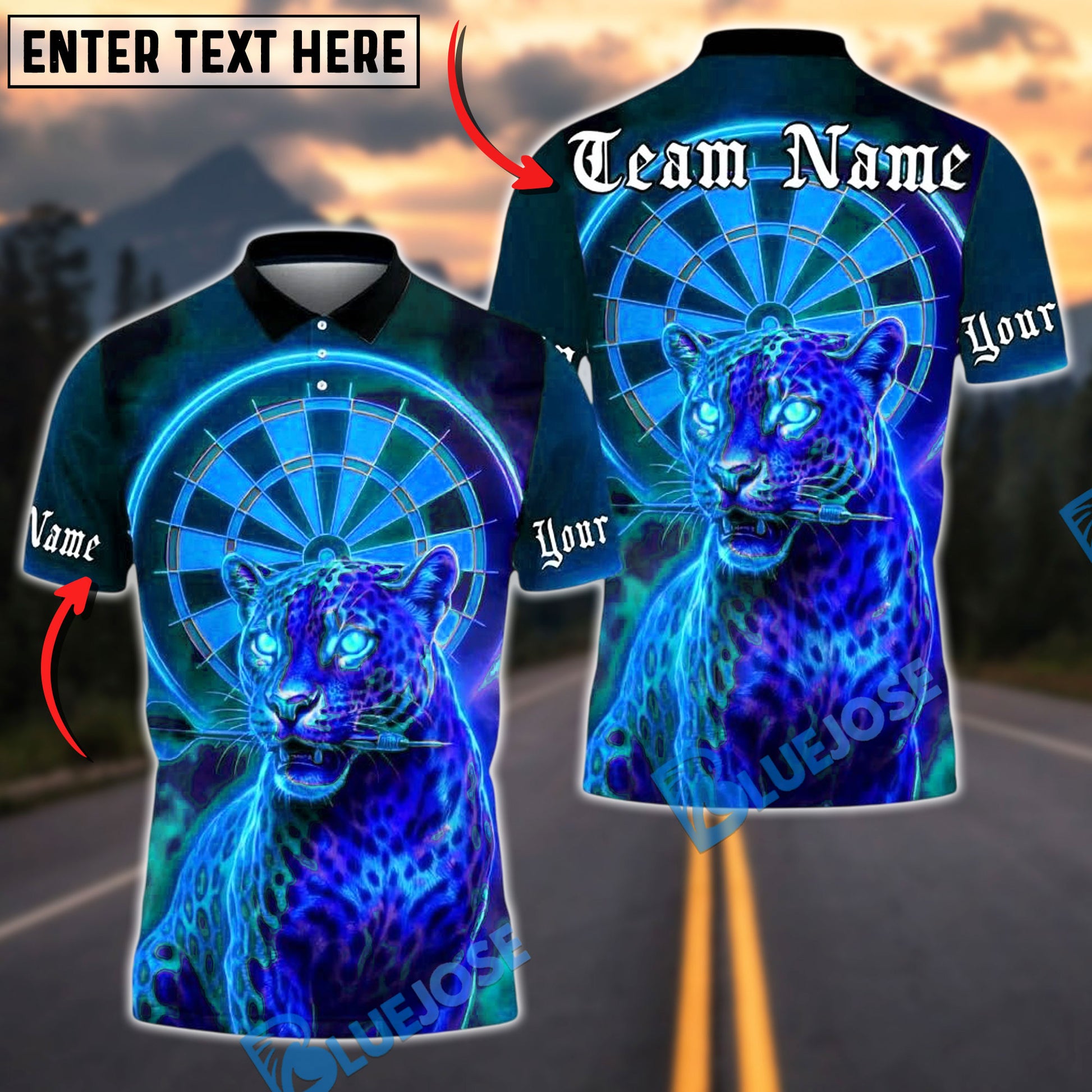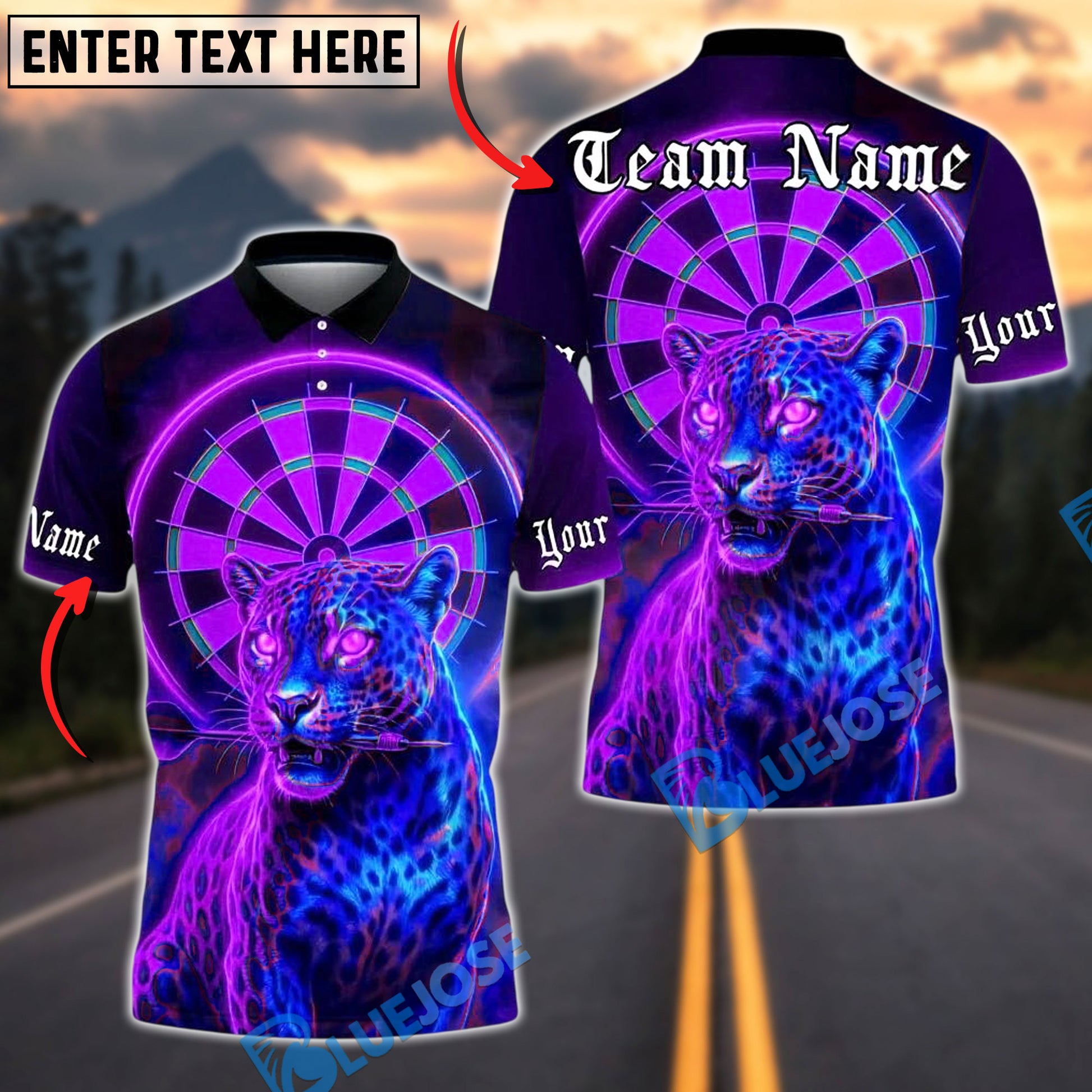 BlueJose Darts Neon Panther Dartboard Eyes Personalized Name, Team Name Unisex Shirt (4 Colors)