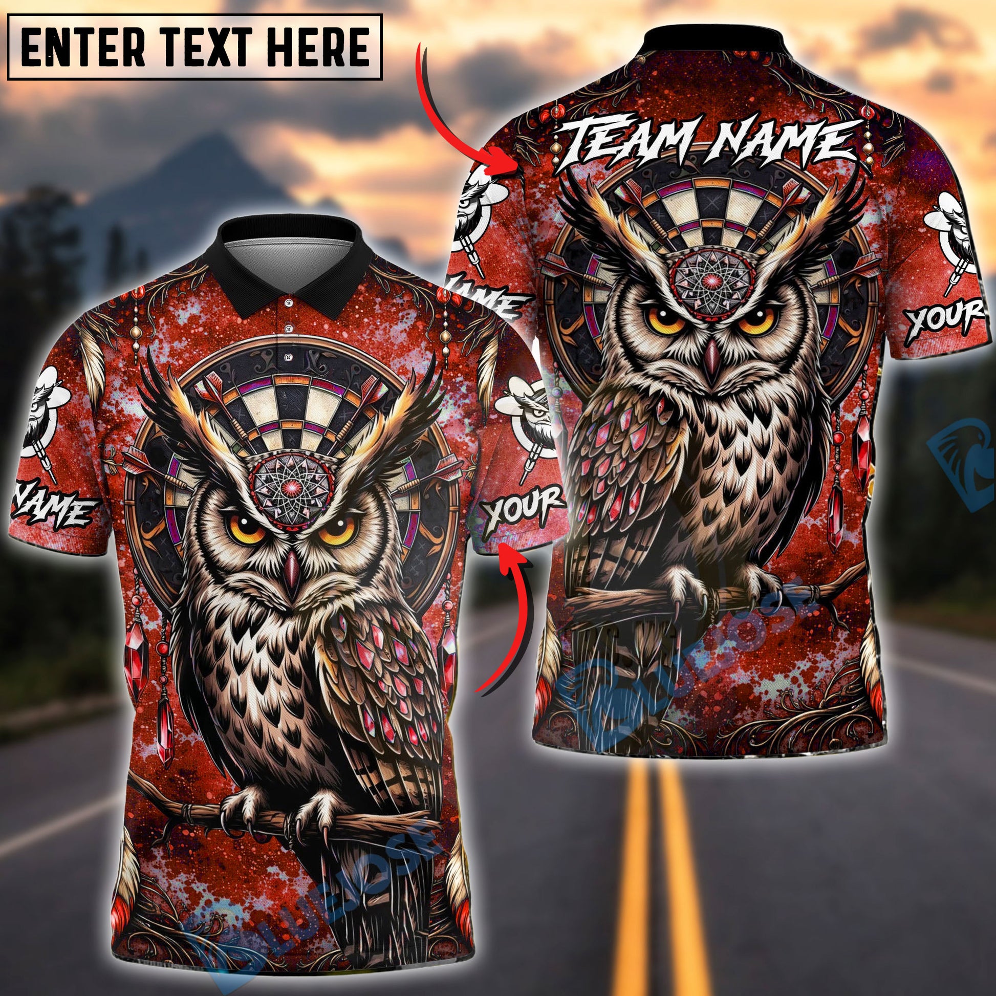 BlueJose Darts Owl Dreamcatcher Dartboard Multicolor Options Personalized Name Shirt (4 Colors)