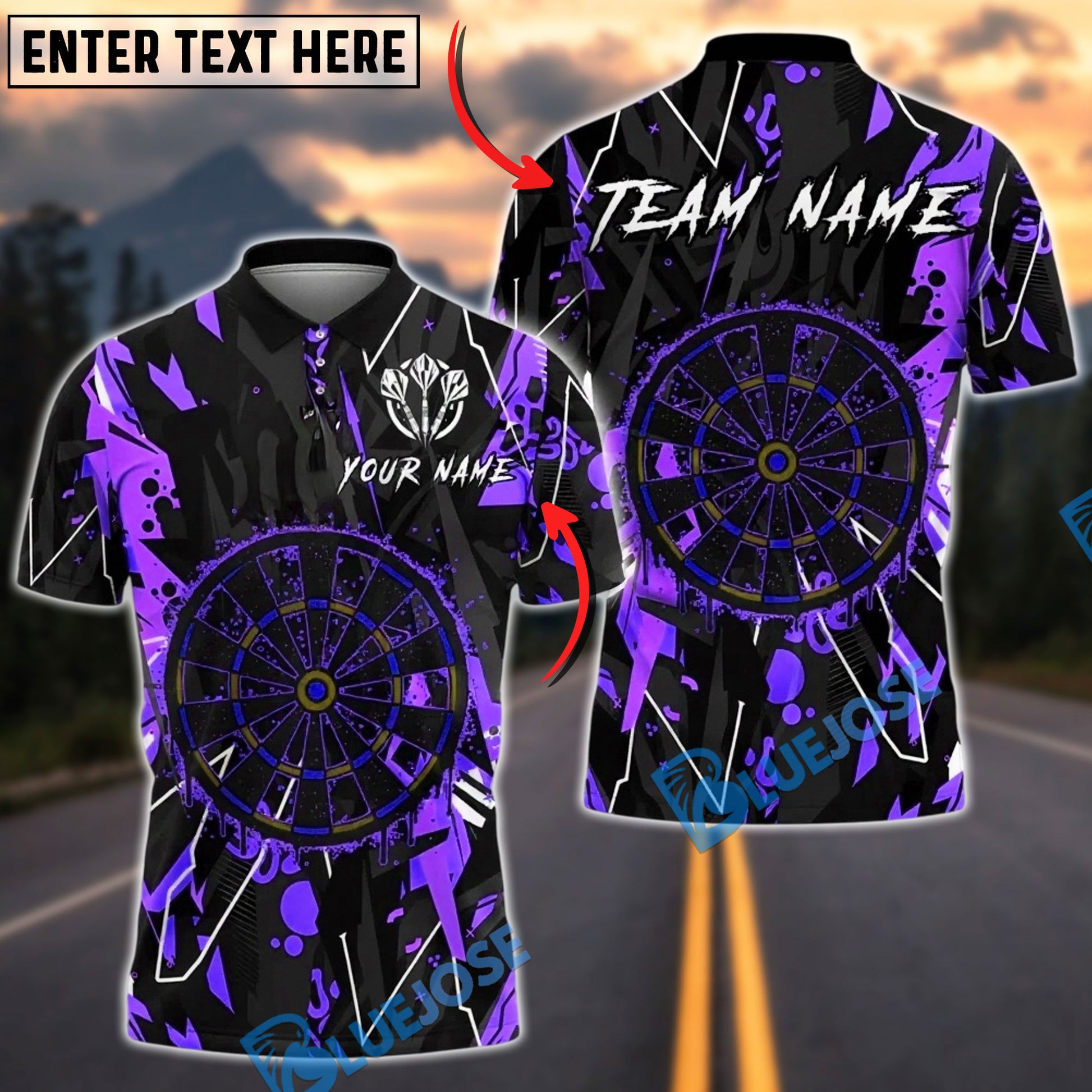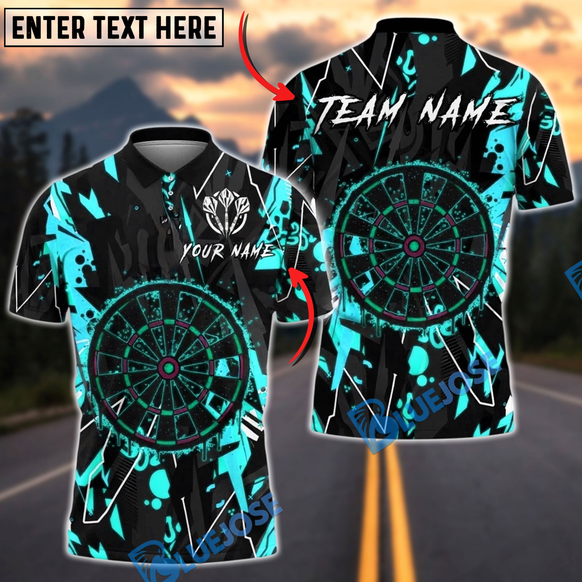 BlueJose Darts Paint Graffiti Dartboard Personalized Name, Team Name Unisex Shirt (4 Colors)