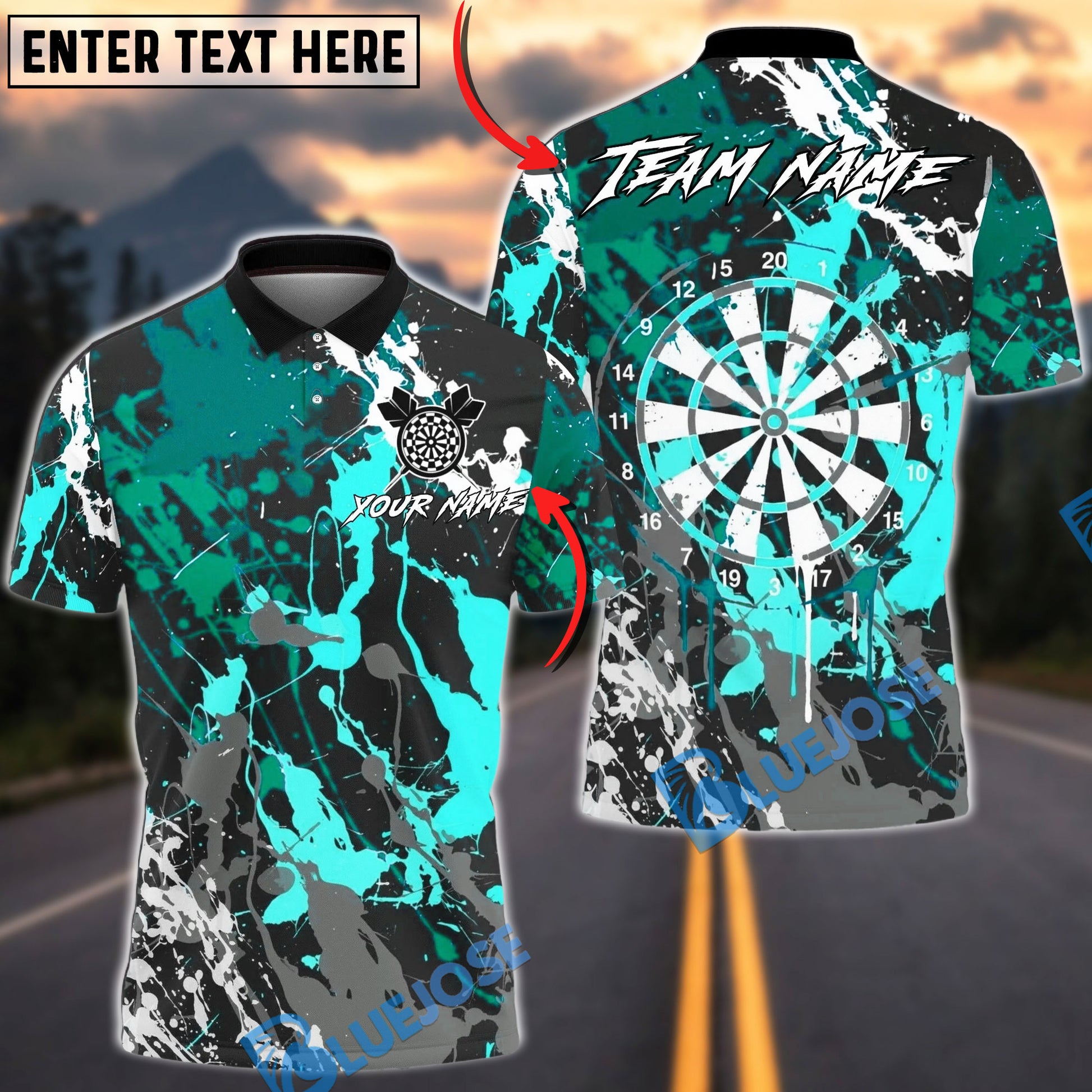 BlueJose Darts Paint Splash Style Multicolor Options Personalized Name Shirt (4 Colors)