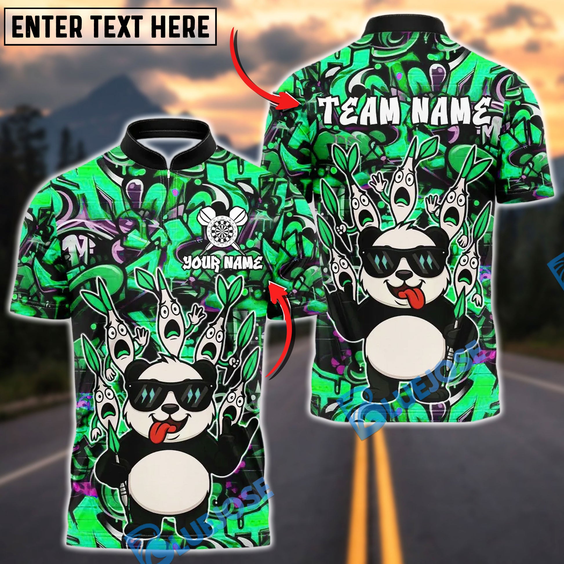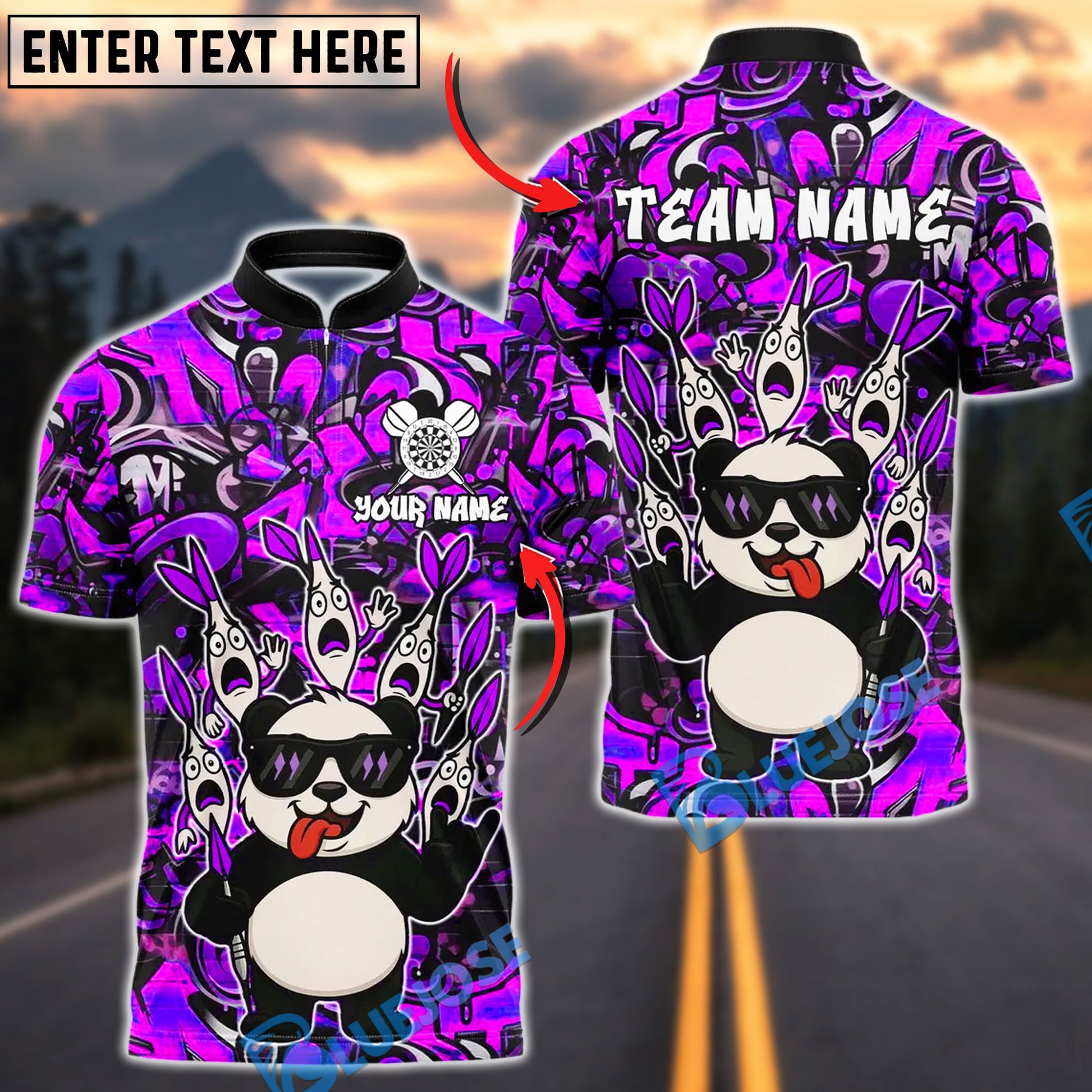 BlueJose Darts Panda Cool Style Customized Name, Team Name 3D Shirt (4 Colors)
