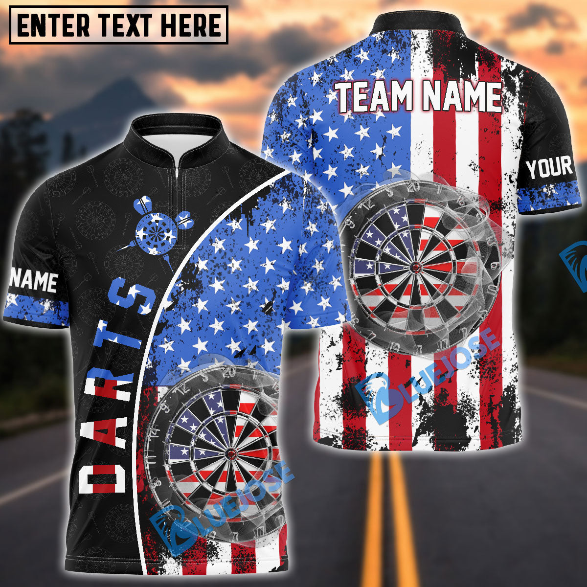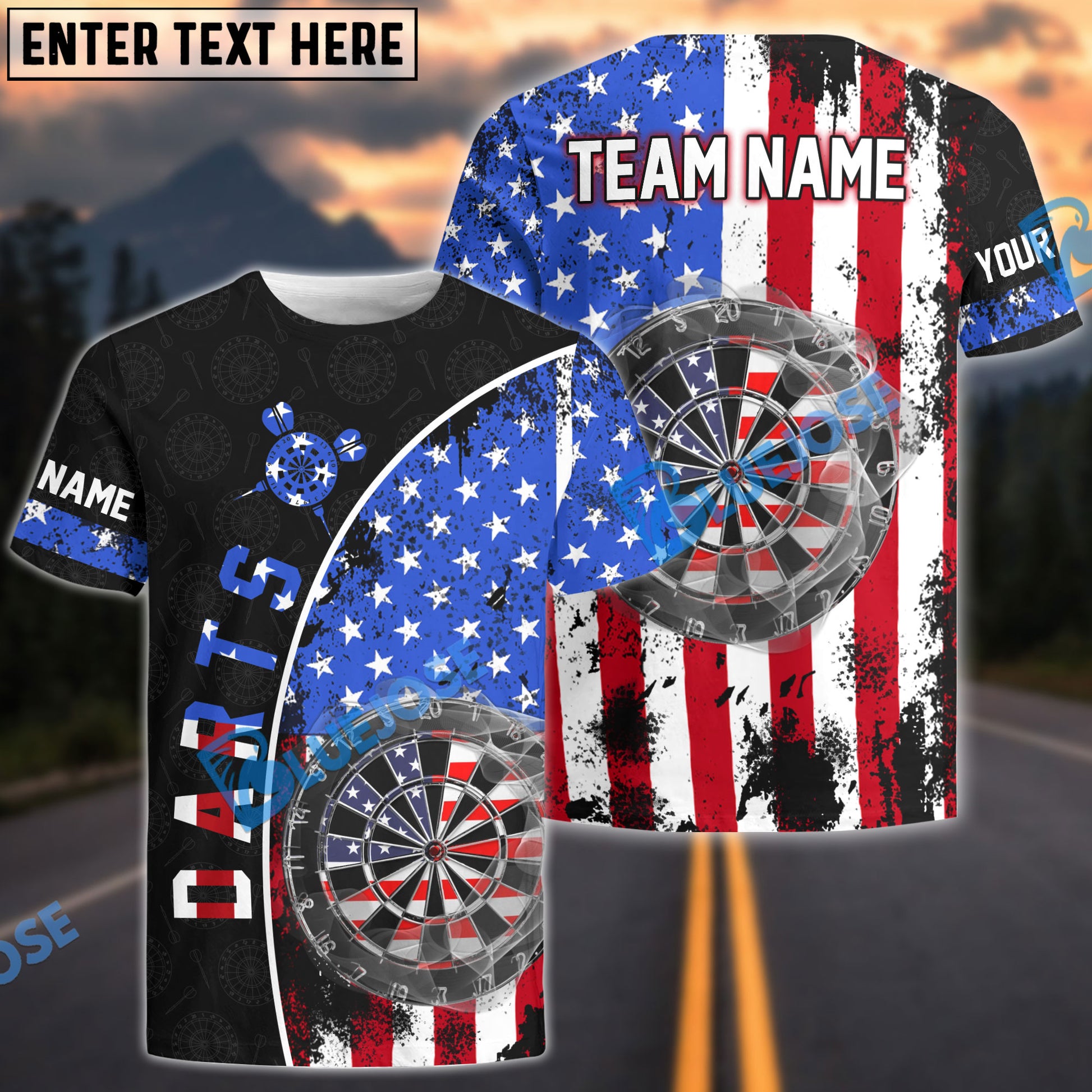 BlueJose Darts Patriotic American Flag Customized Name, Team Name 3D Shirt