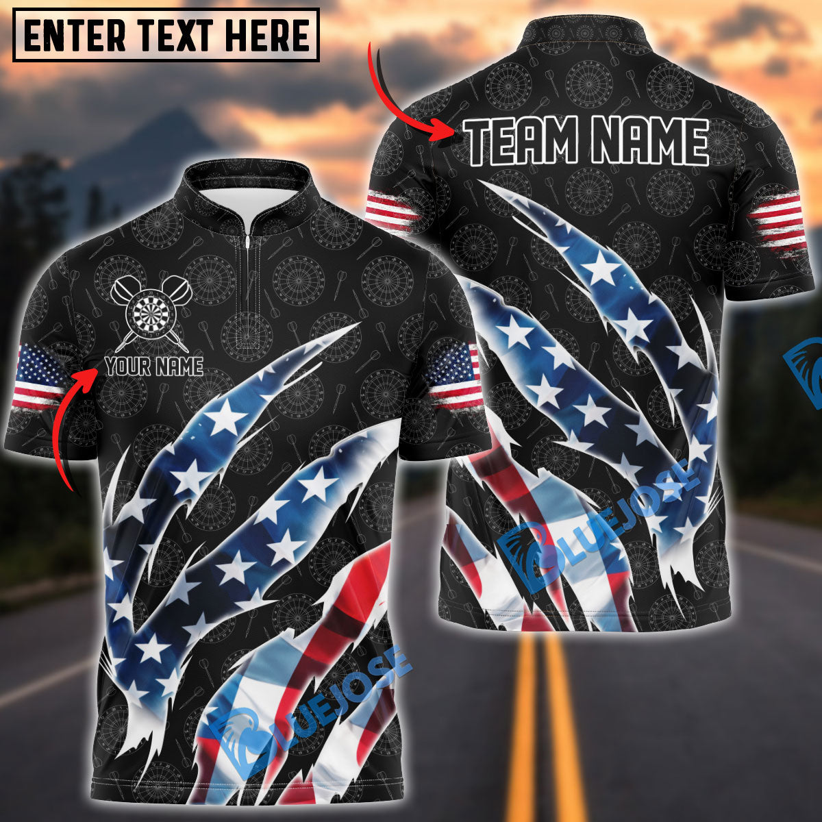 BlueJose Darts Patriotic Scratch Personalized Name, Team Name Shirt (2 Colors)