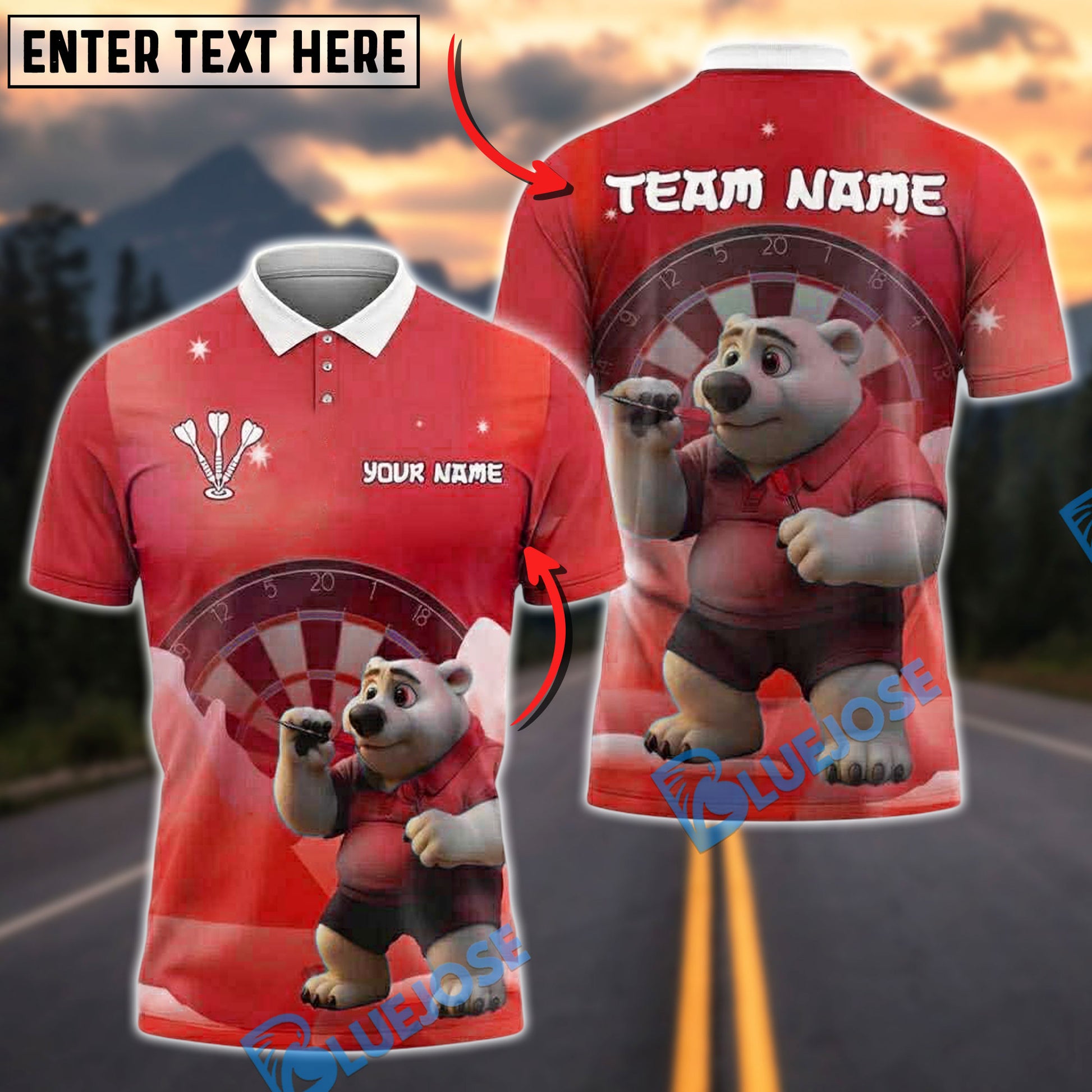 BlueJose Darts Polar Bear Customized Name, Team Name 3D Shirt (4 Colors)