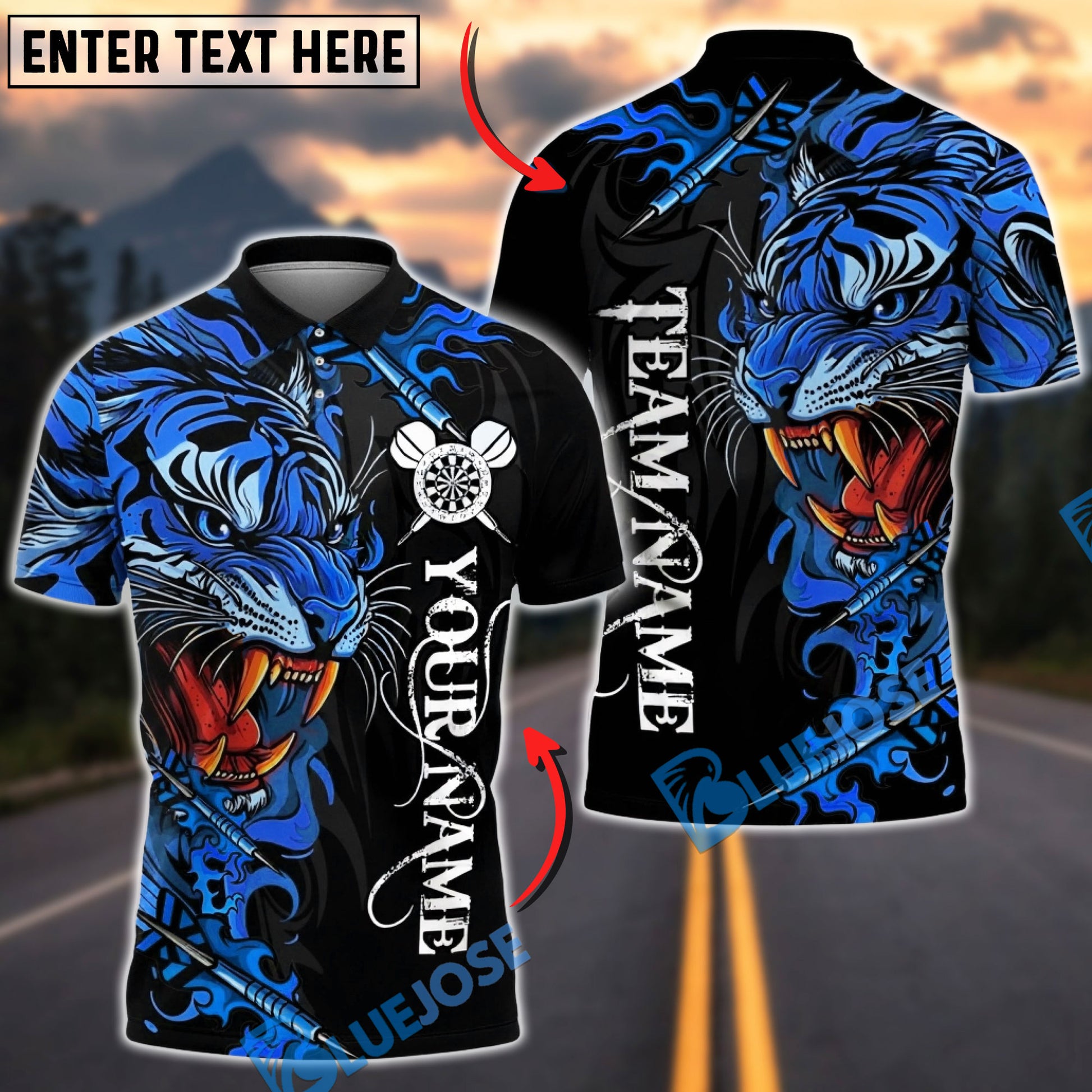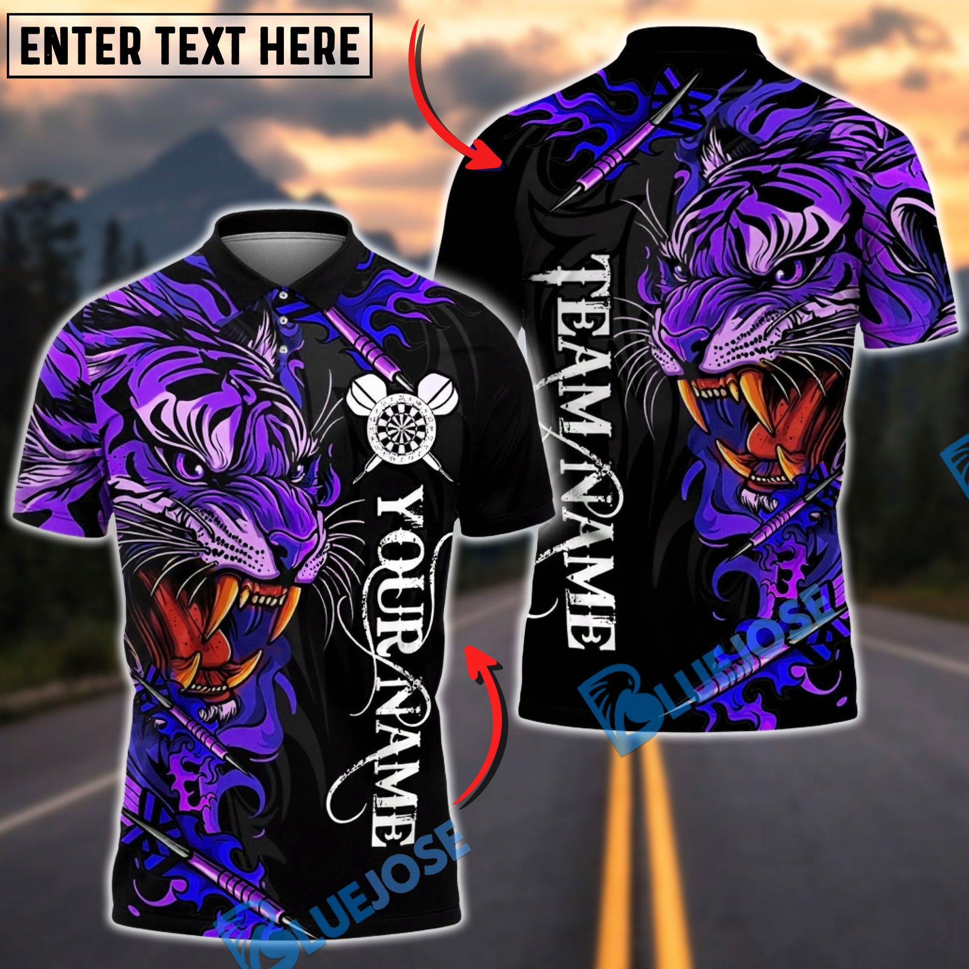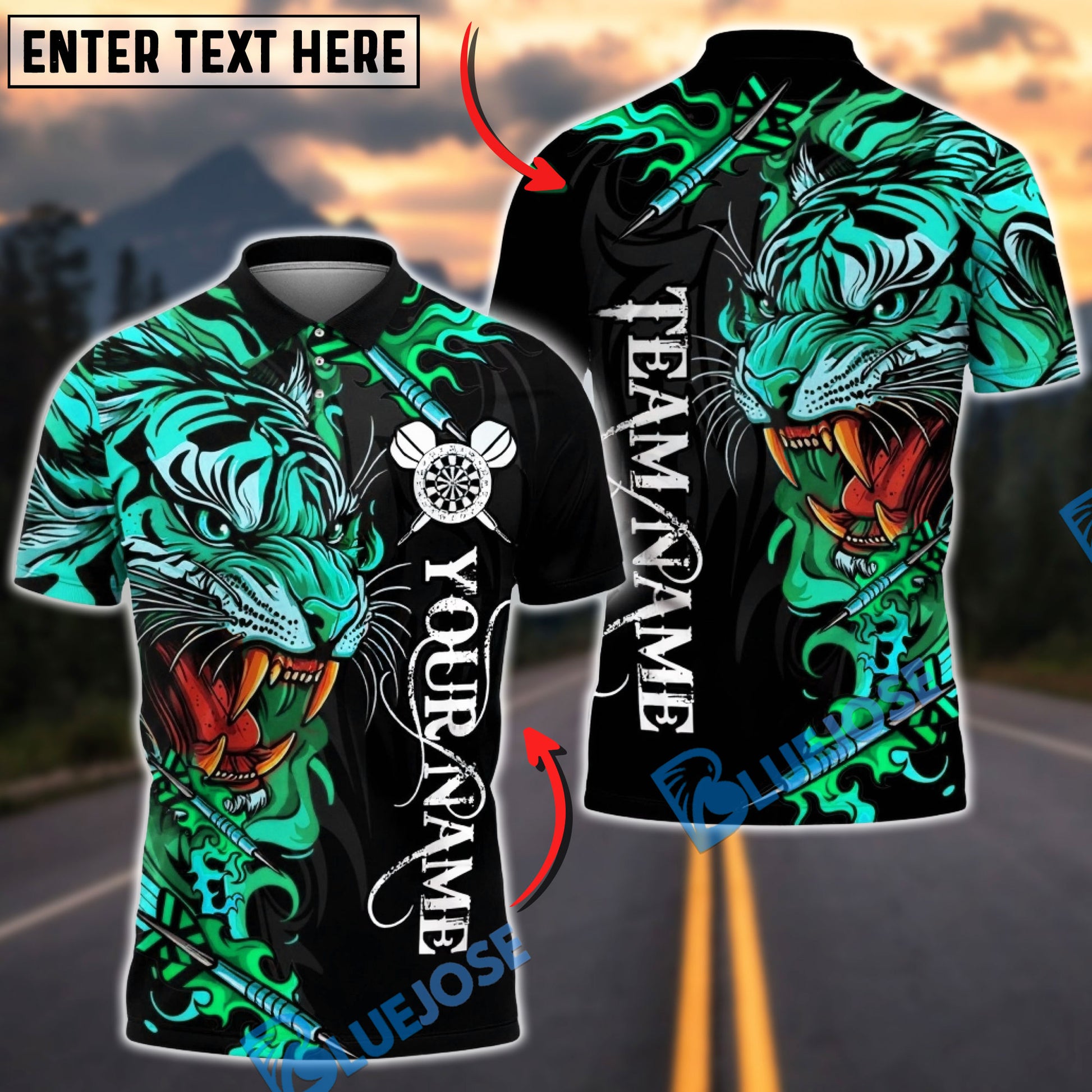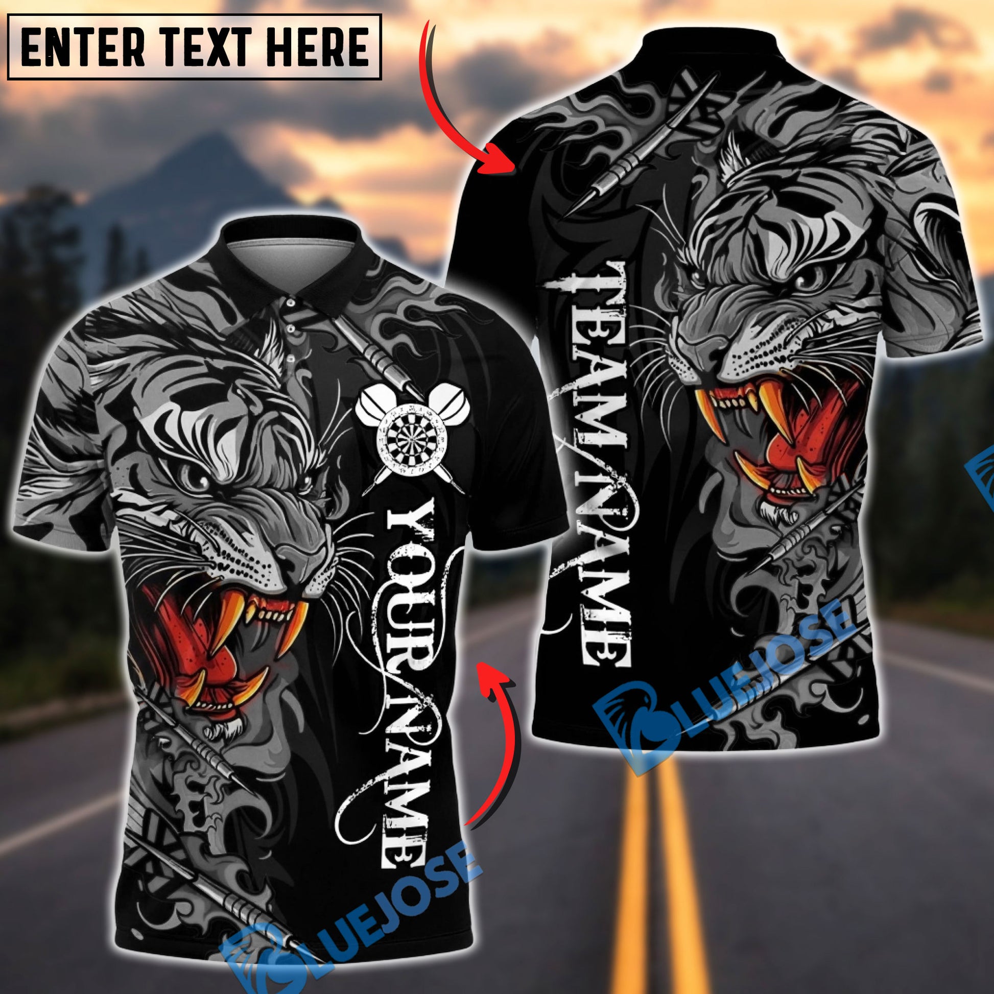 BlueJose Darts Power Tiger Multicolor Options Personalized Name Shirt (5 Colors)