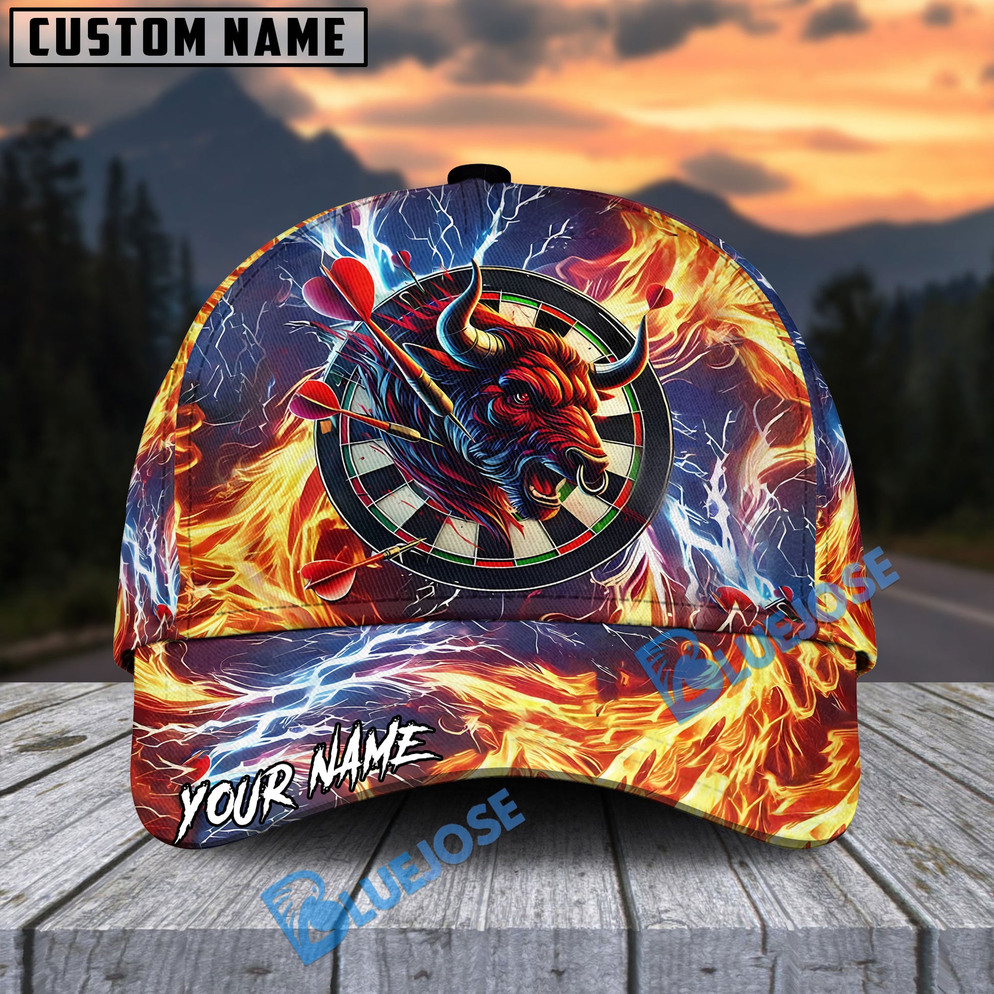 BlueJose Darts Precision Aim Bullseye Fire And Thunder Personalized Name Cap
