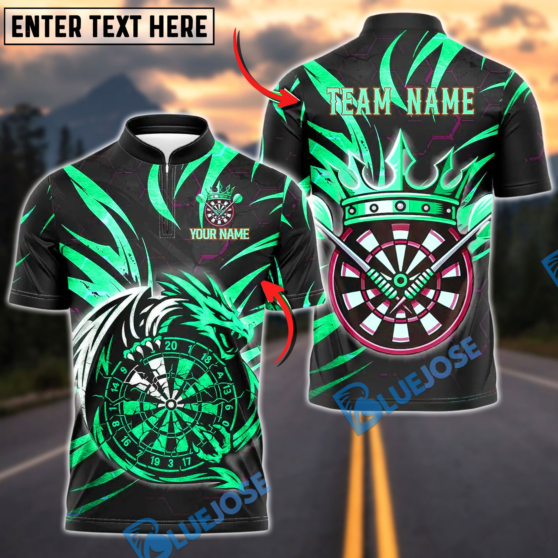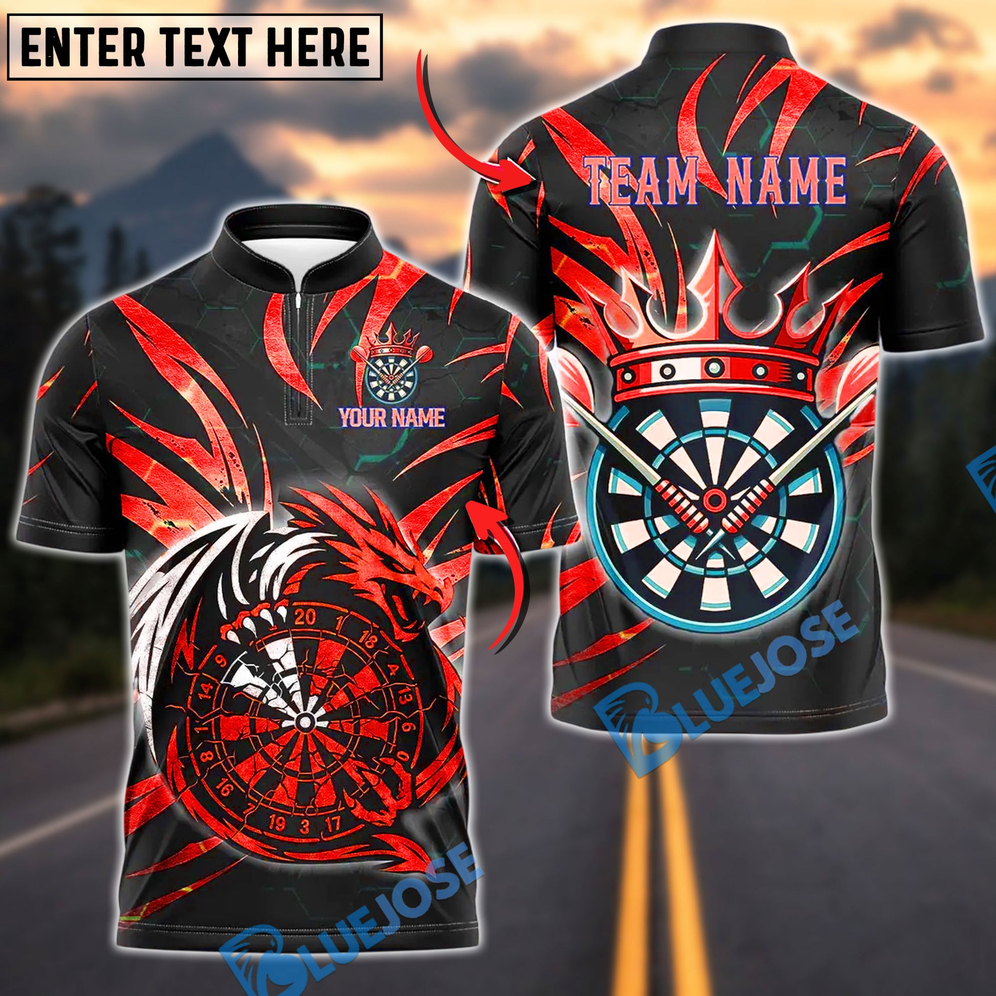 BlueJose Darts Premium Dragon Design Customized Name, Team Name 3D Shirt (4 Colors)