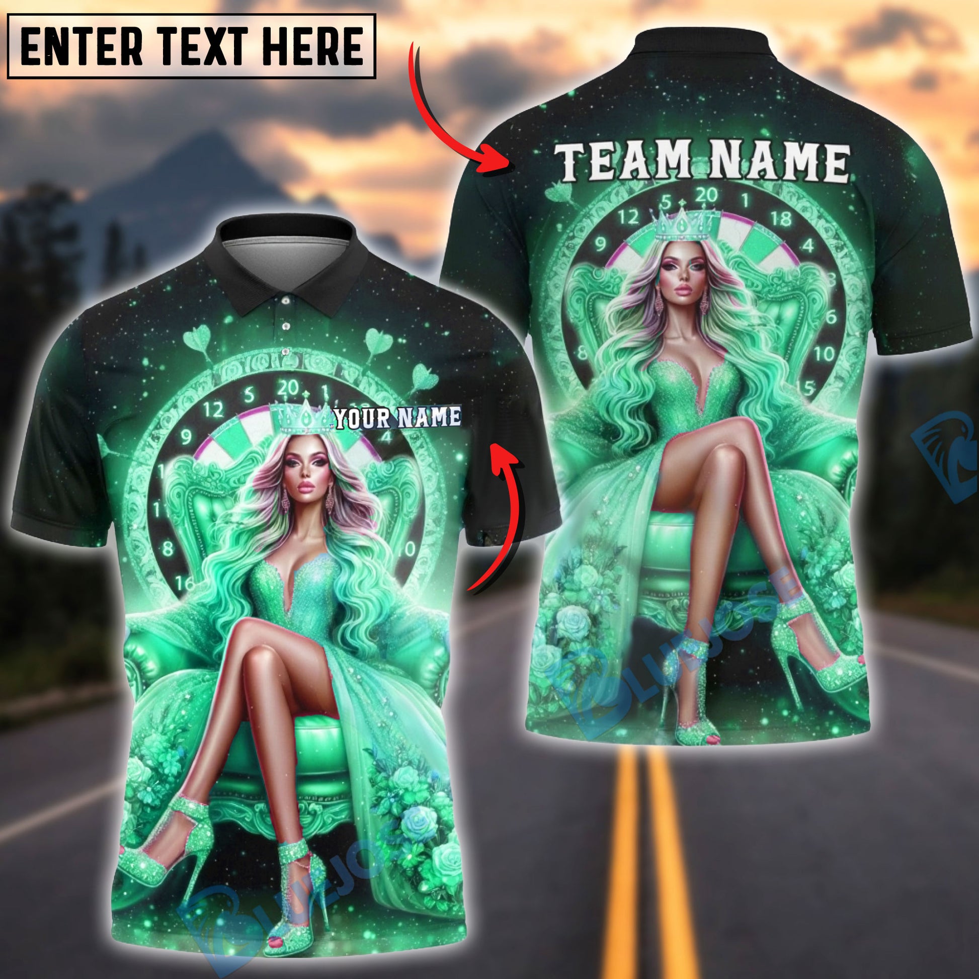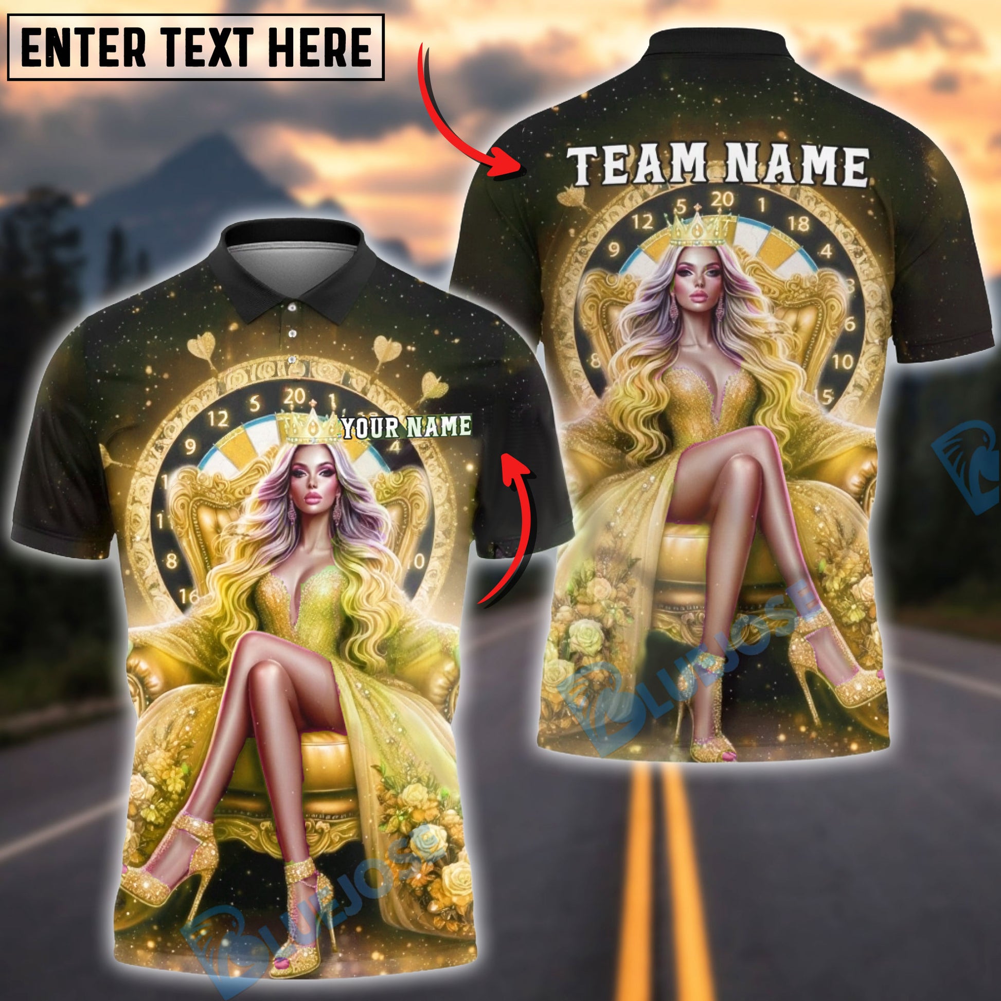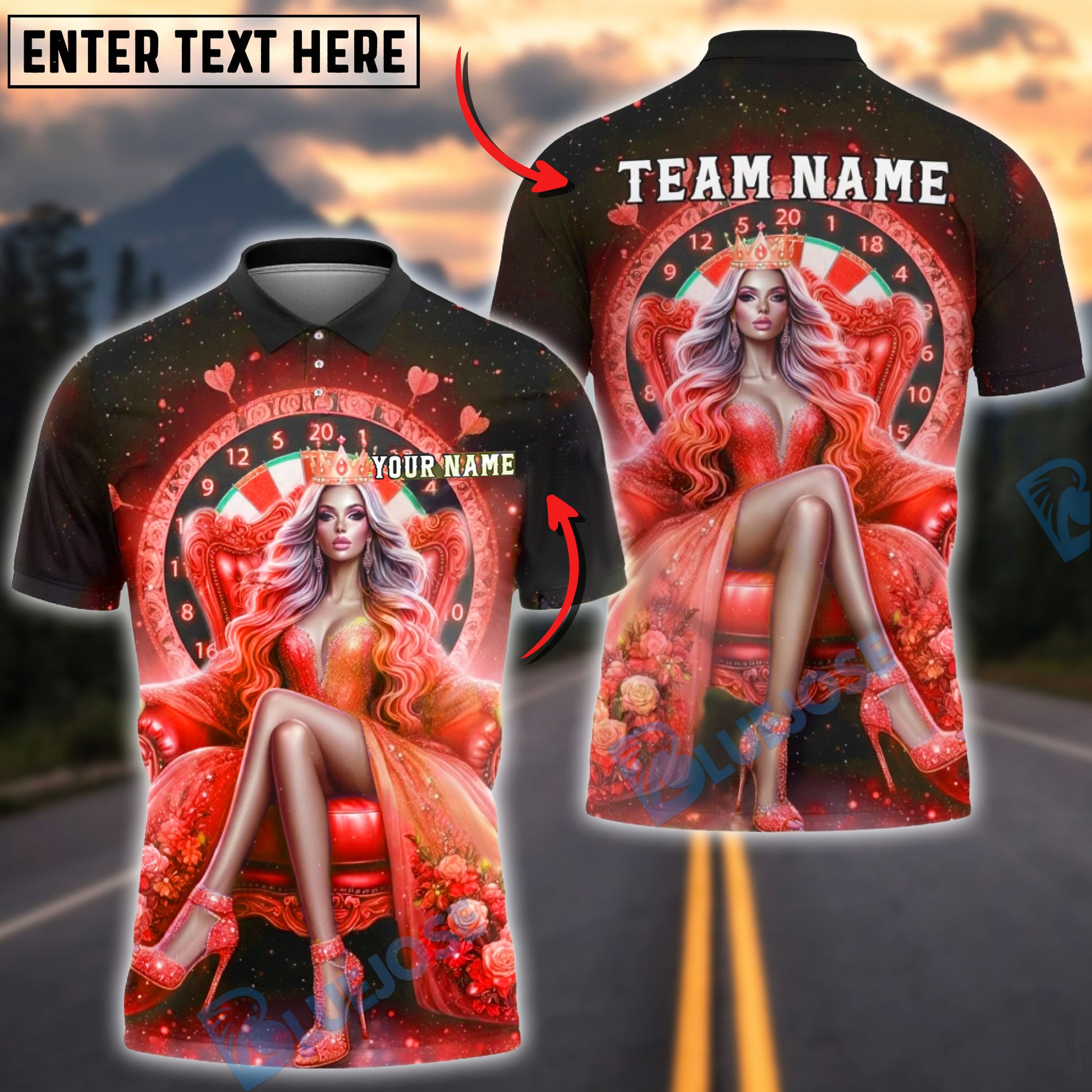 BlueJose Darts Queen Crown Dartboard Multicolor Options Personalized Name Shirt (6 Colors)