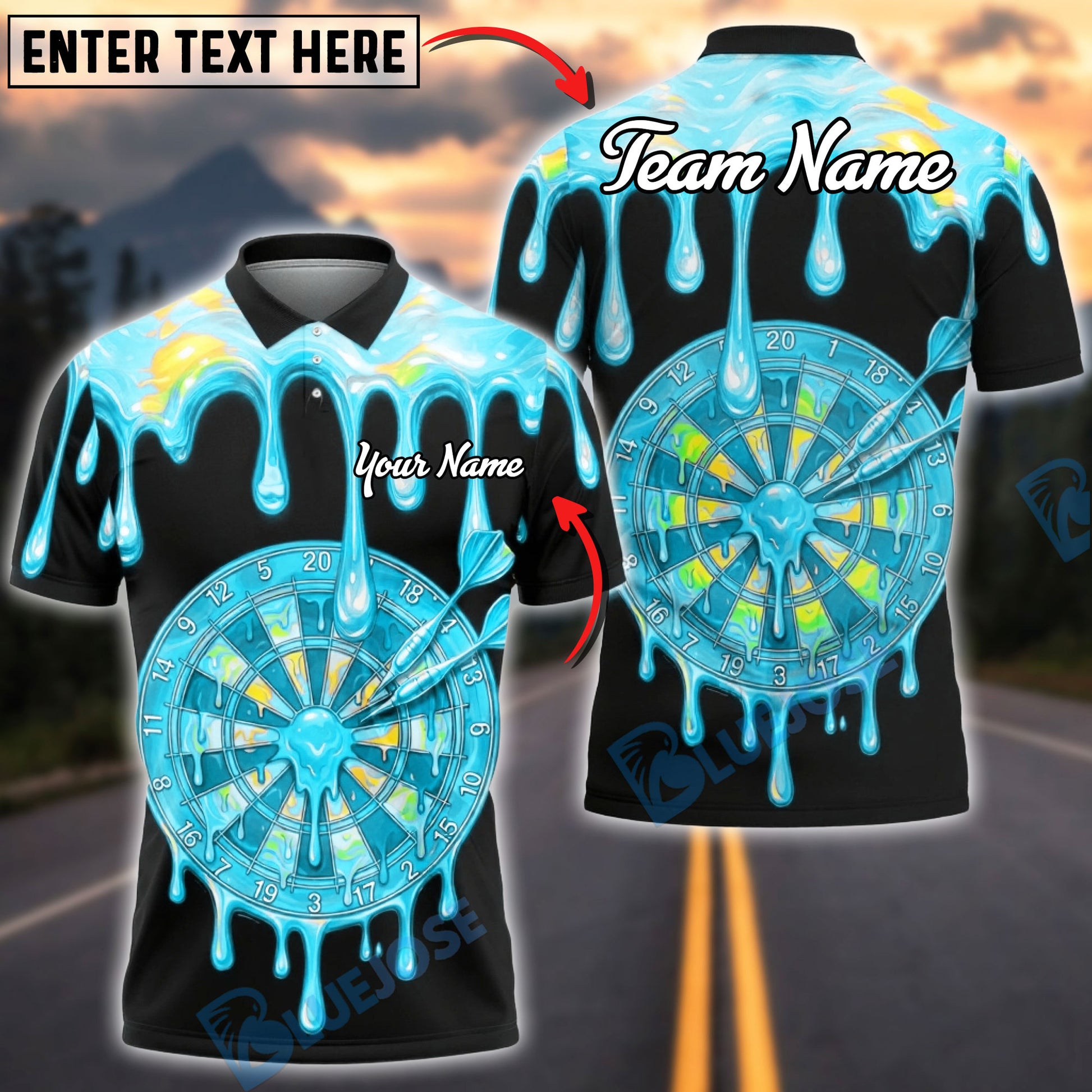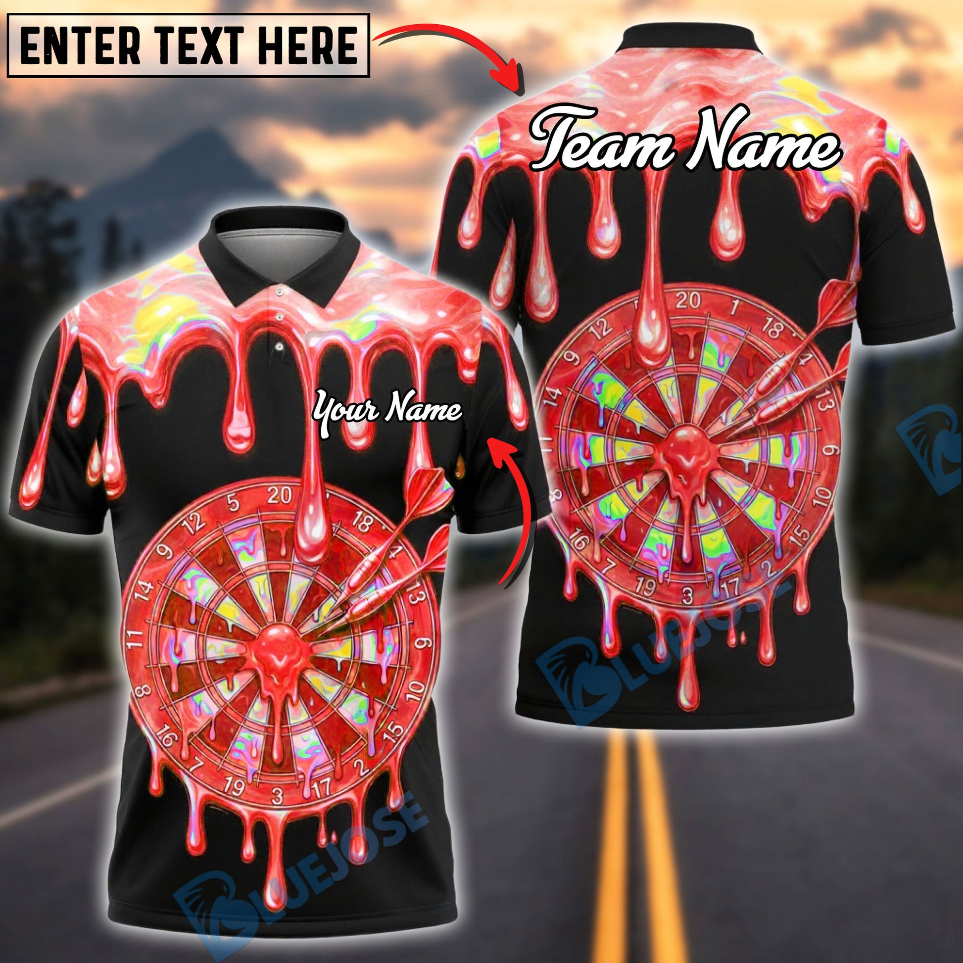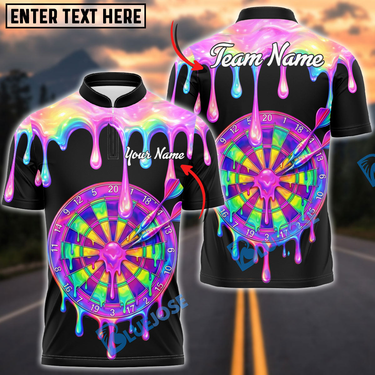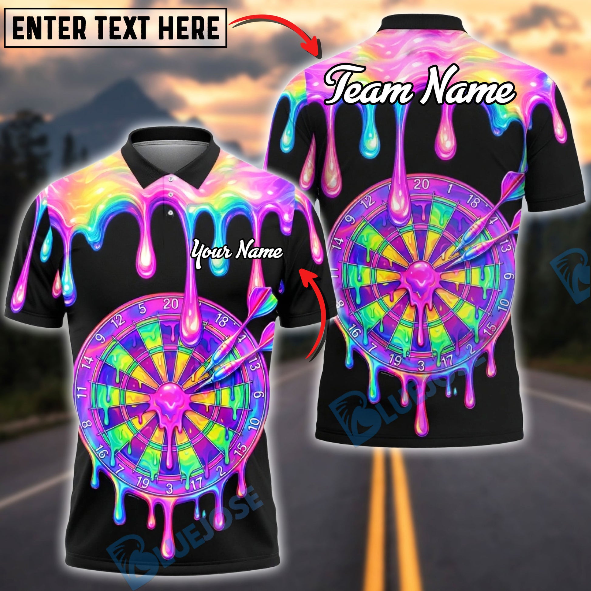 BlueJose Darts Rainbow Melt Dripping Dartboard Multicolor Options Personalized Name Shirt (6 Colors)