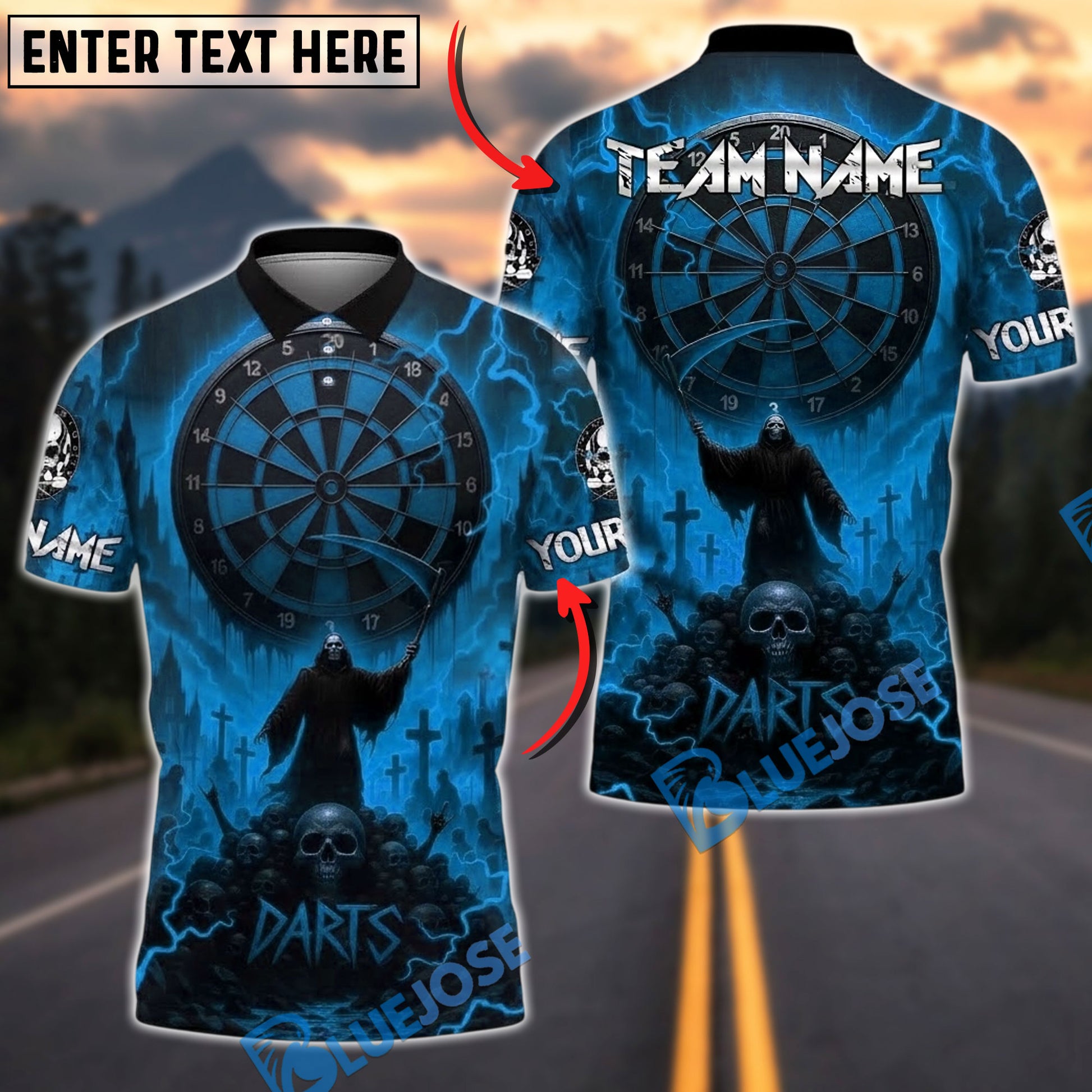 BlueJose Darts Red Reaper Cemetery Customized Name, Team Name 3D Shirt (4 Colors)