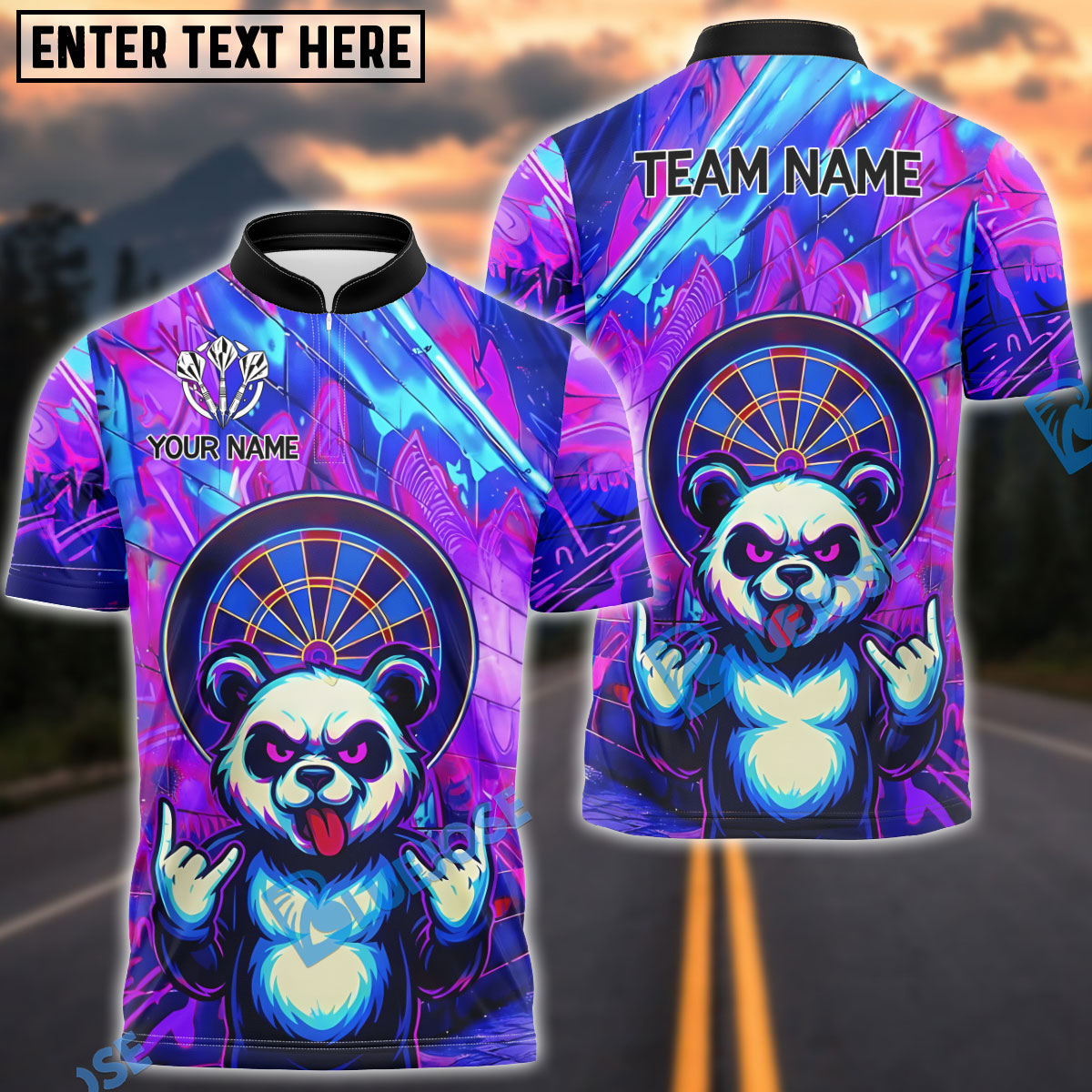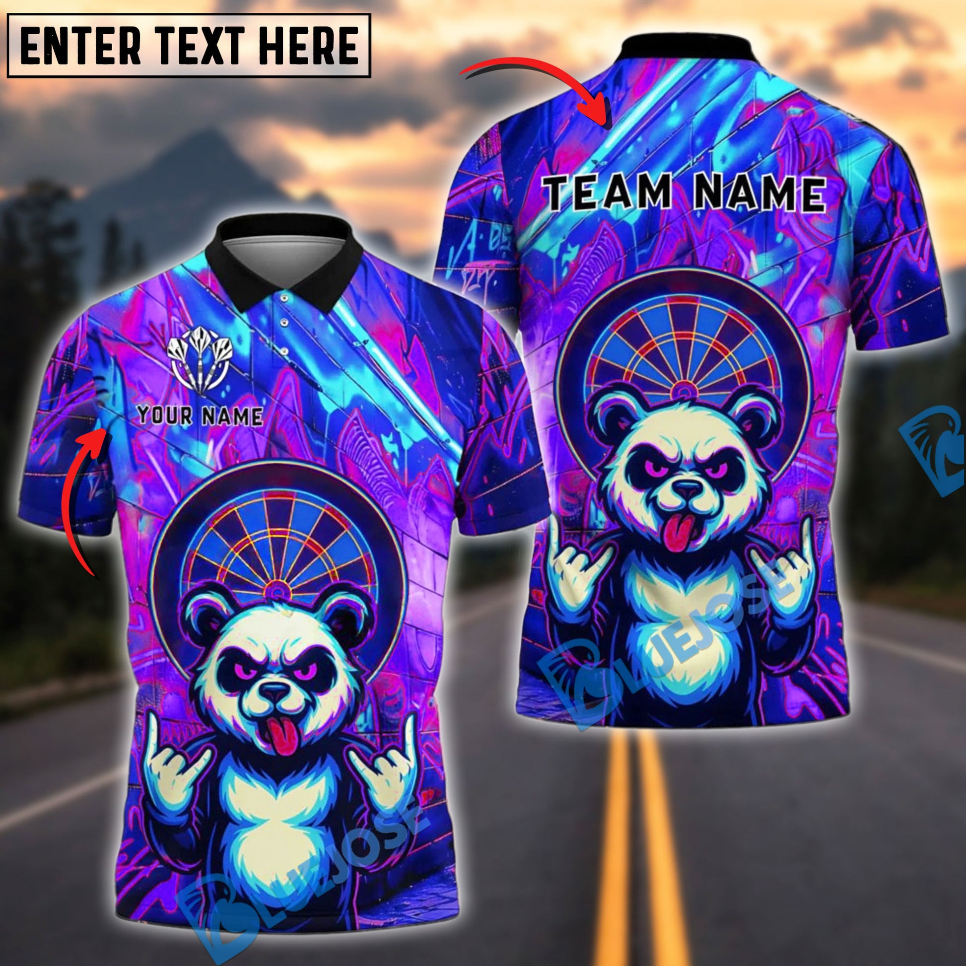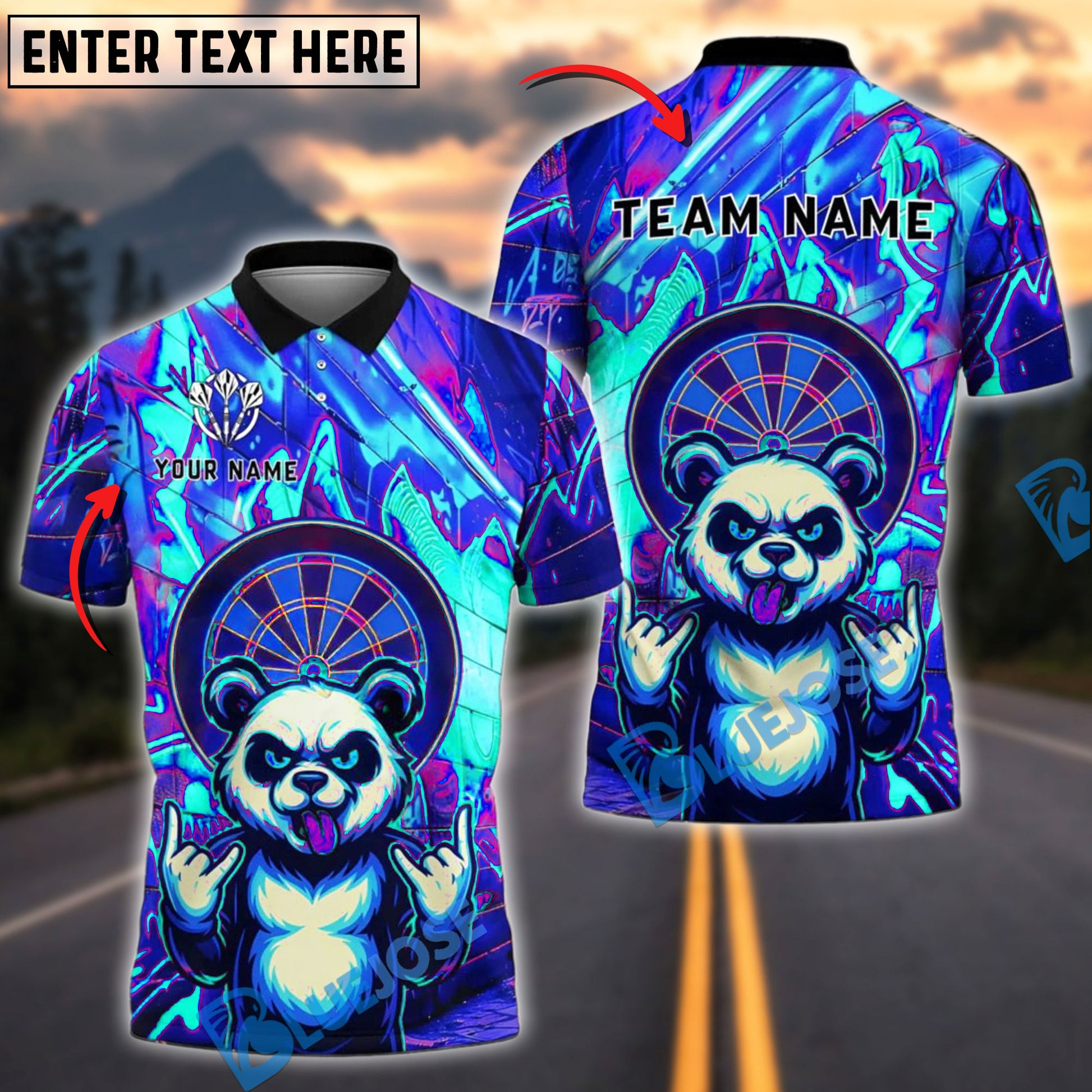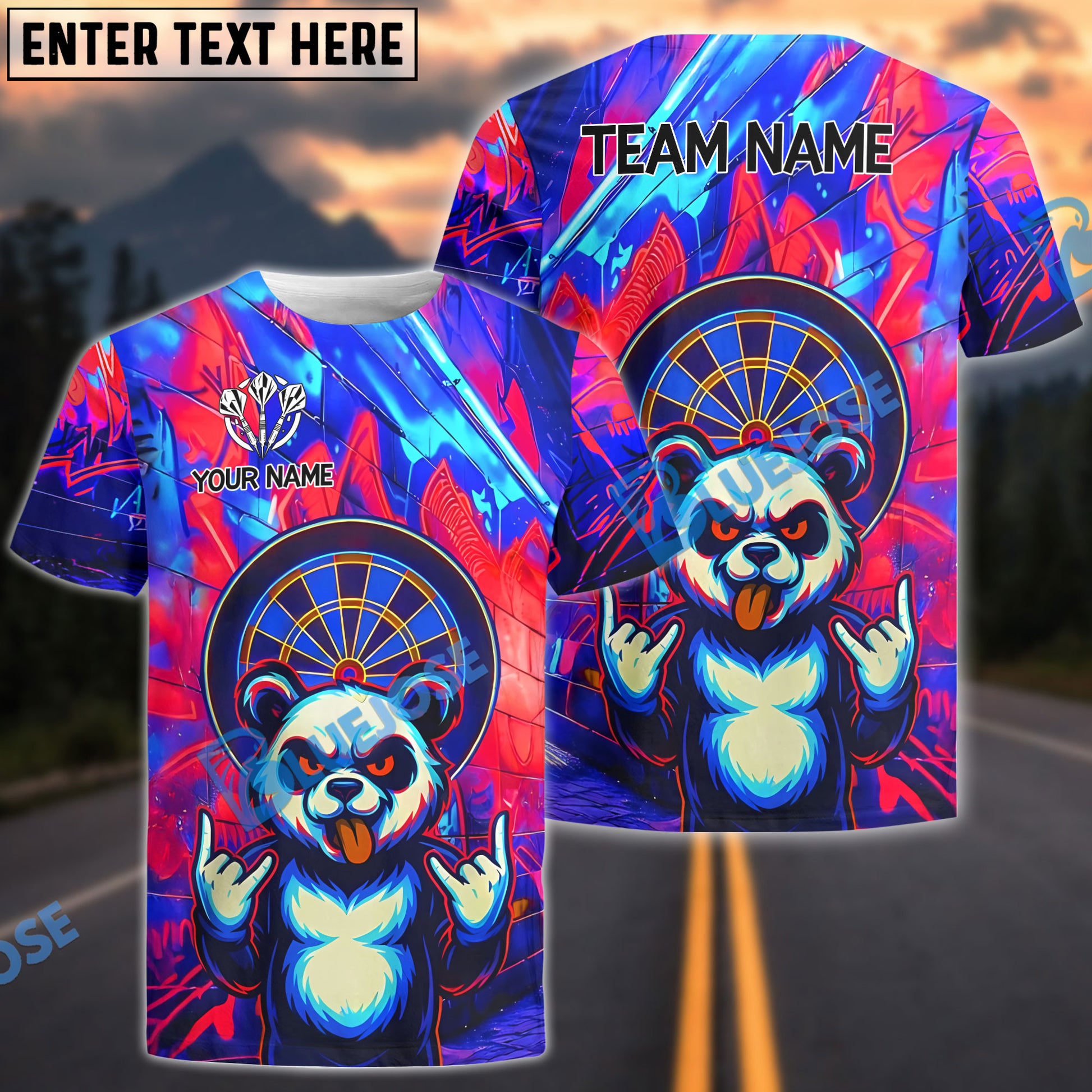 BlueJose Darts Rocker Panda Dartboard Personalized Name, Team Name Shirt (4 Colors)