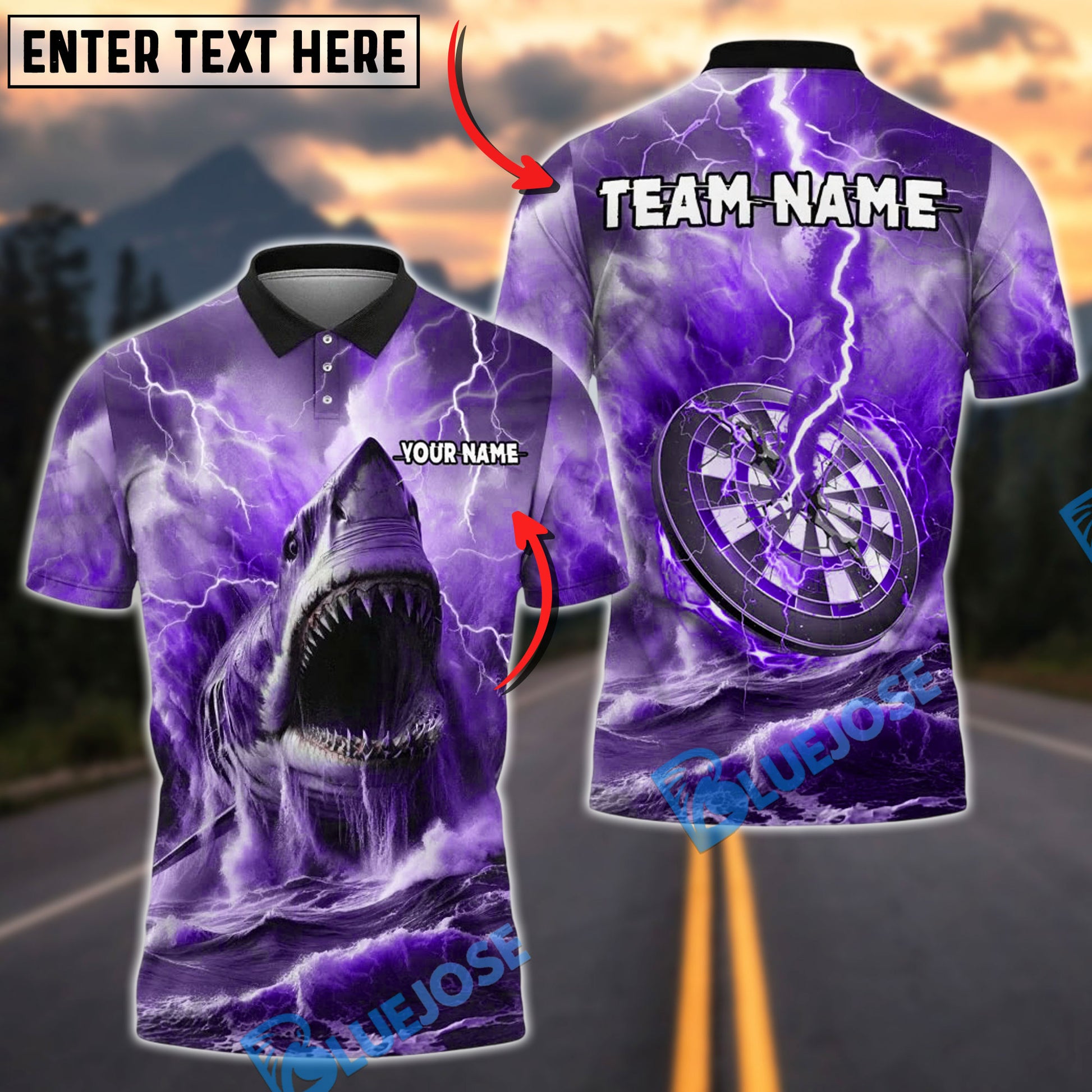 BlueJose Darts Shark and Lightning Customized Name, Team Name 3D Shirt (4 Colors)