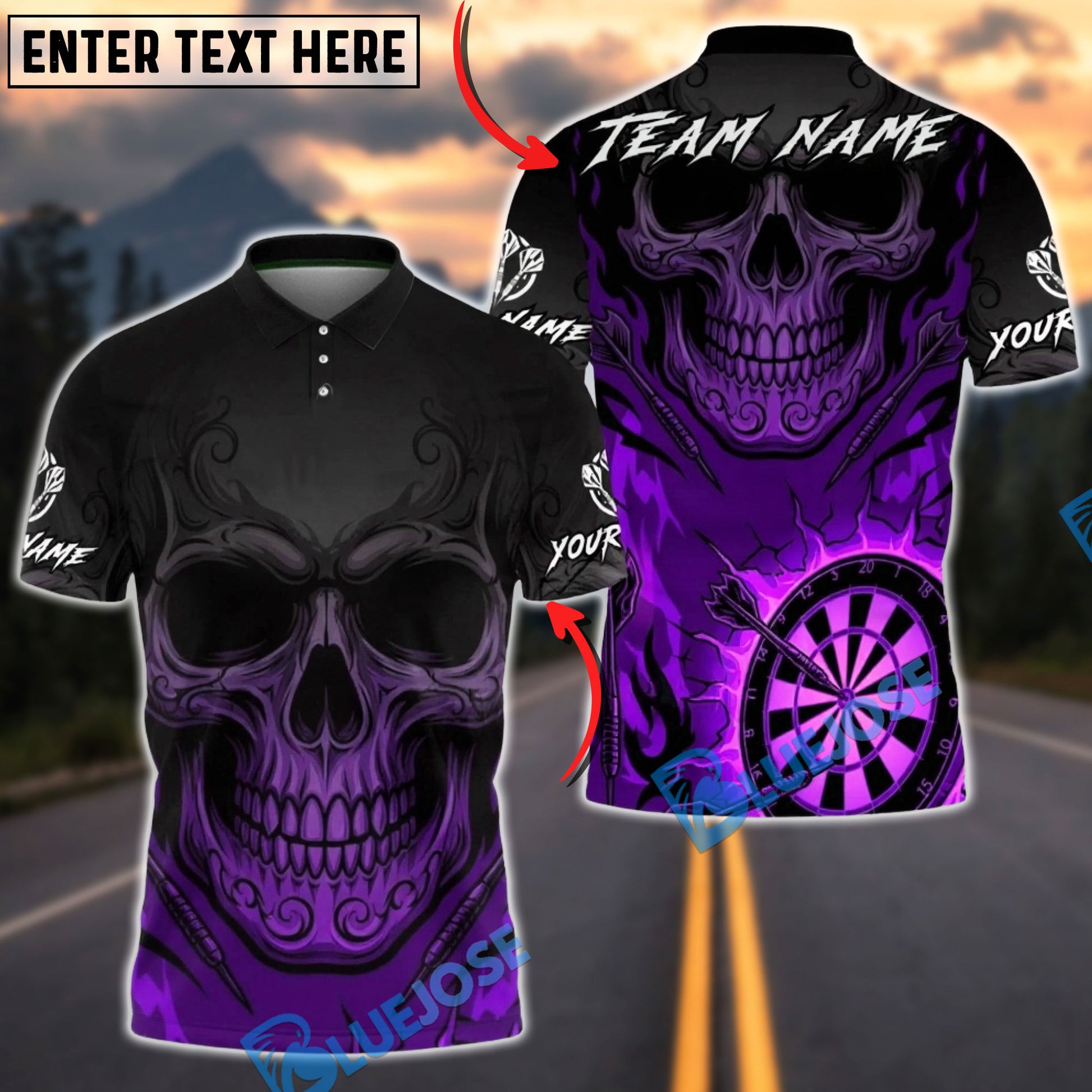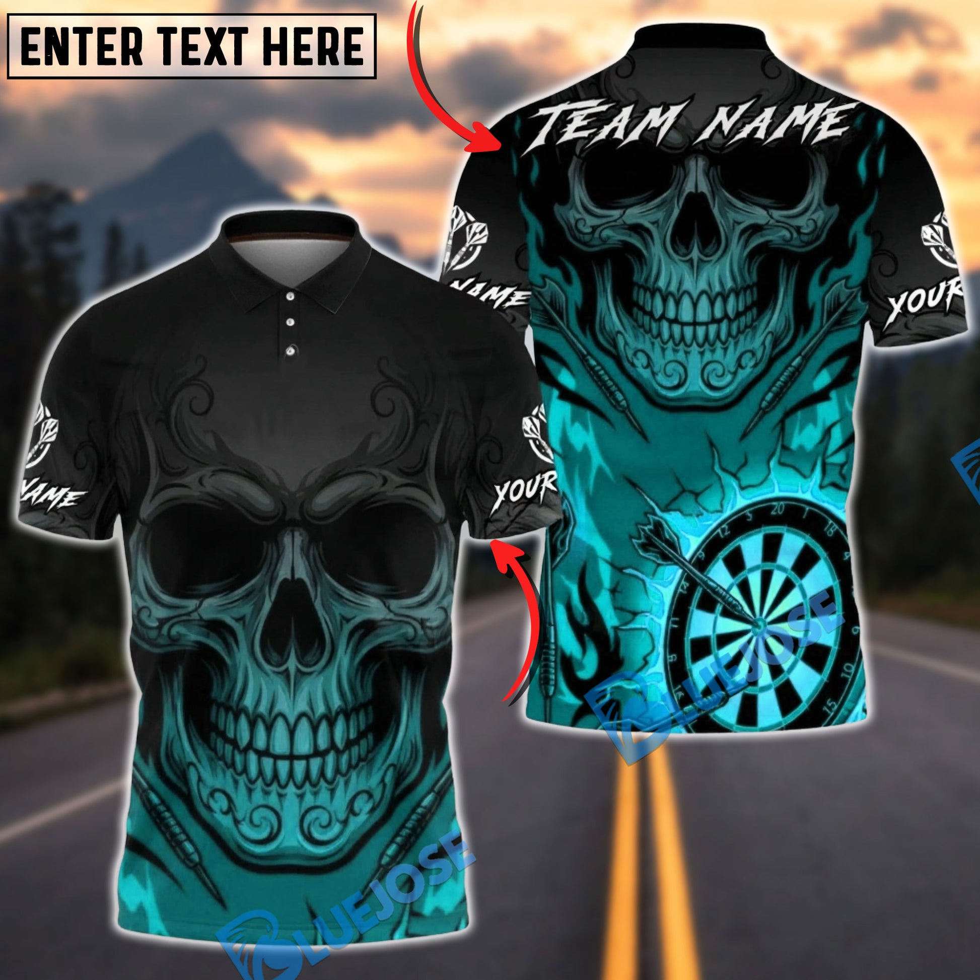BlueJose Darts Skull Dartboard Fire Gradient Tribal Pattern Multicolor Options Personalized Name Shirt (4 Colors)