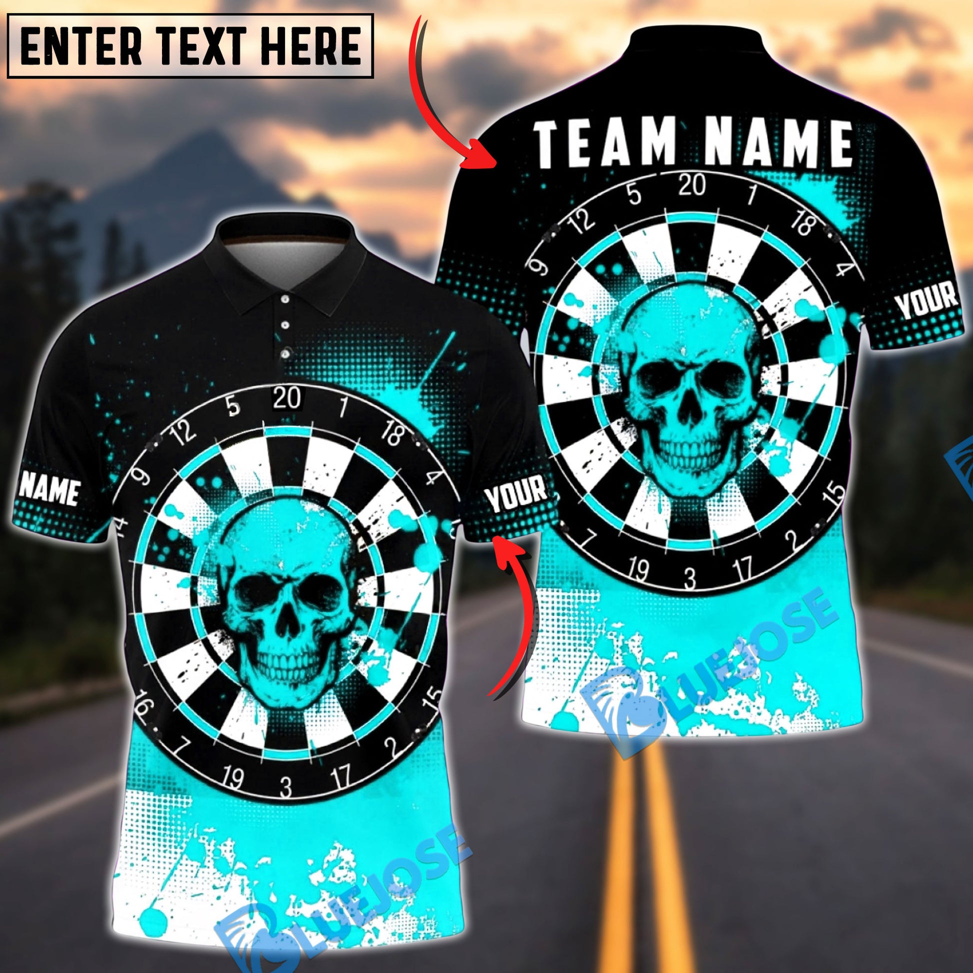 BlueJose Darts Skull Dartboard Horror Style Graphic Multicolor Options Personalized Name Shirt (4 Colors)