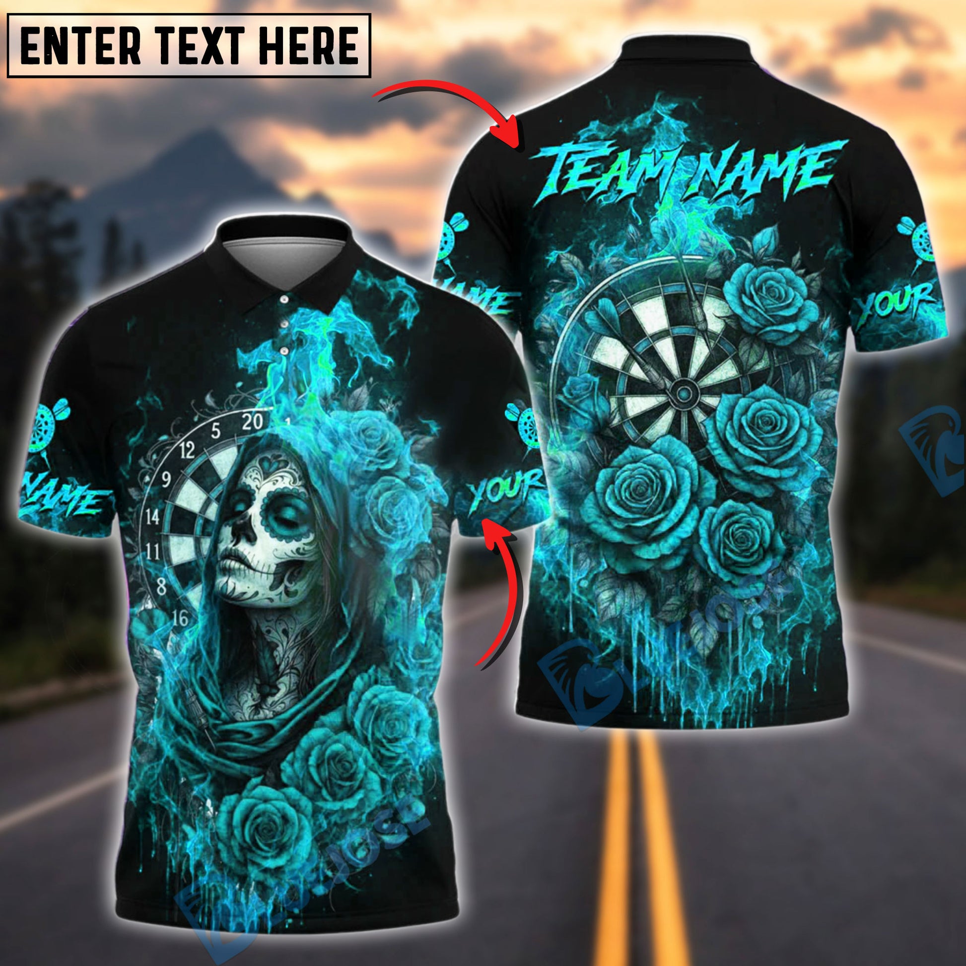 BlueJose Darts Skull Girl Flaming Rose Customized Name, Team Name 3D Shirt (4 Colors)