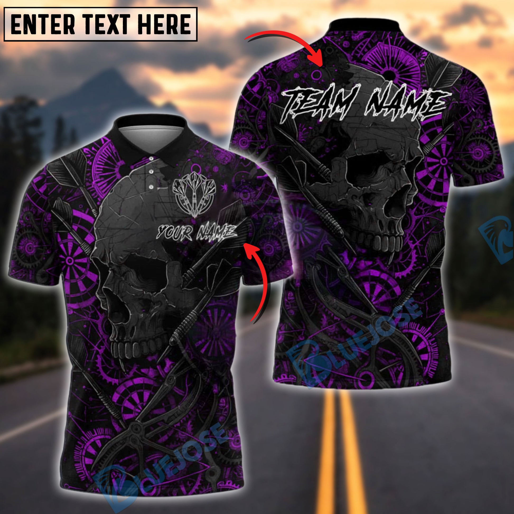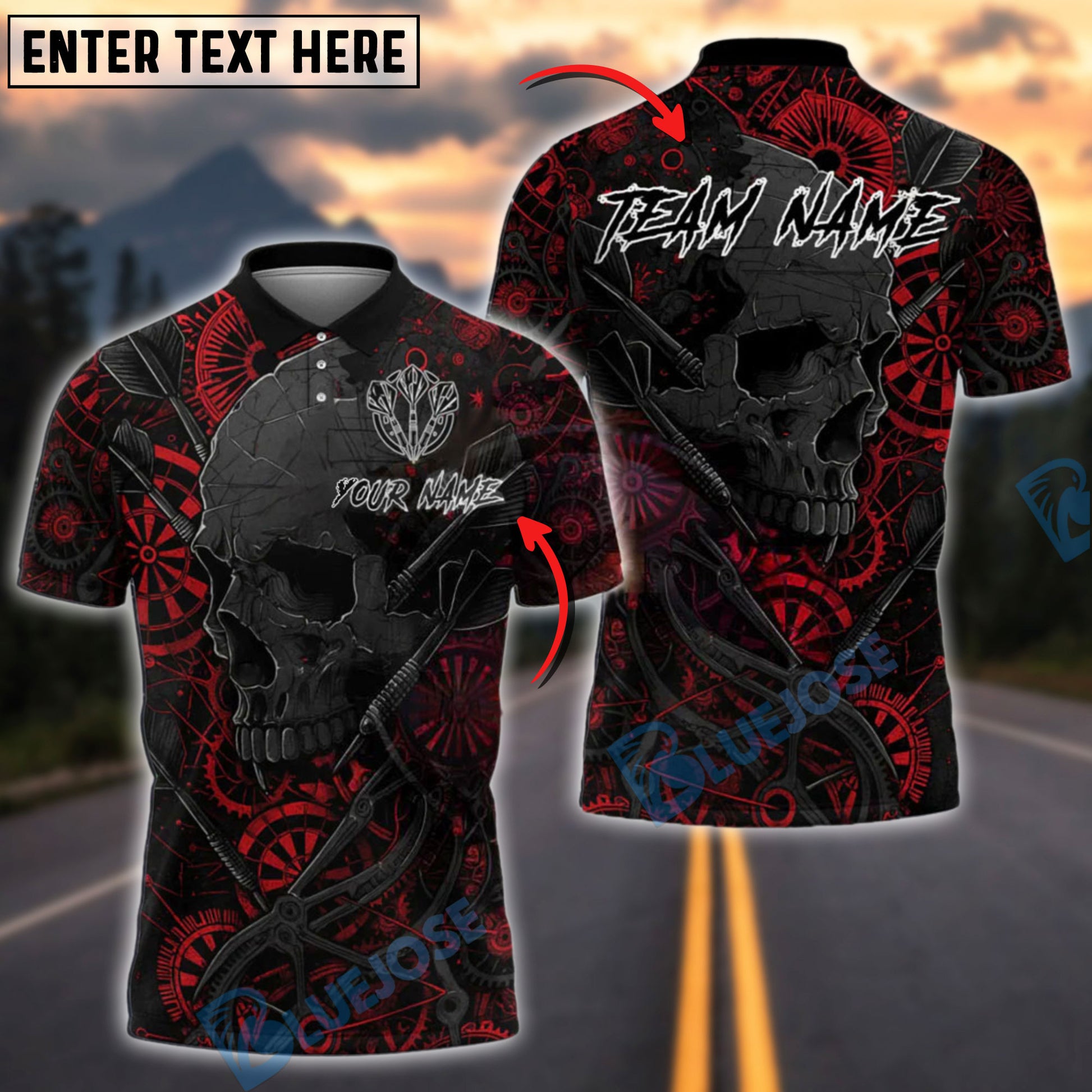 BlueJose Darts Skull Mechanical Gears Customized Name, Team Name 3D Shirt (4 Colors)