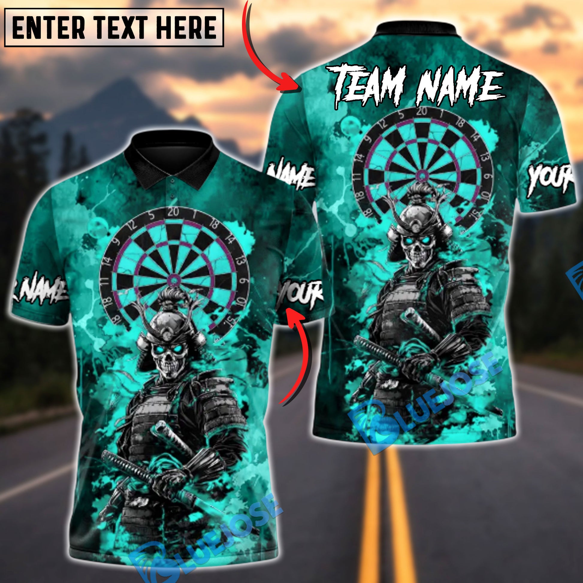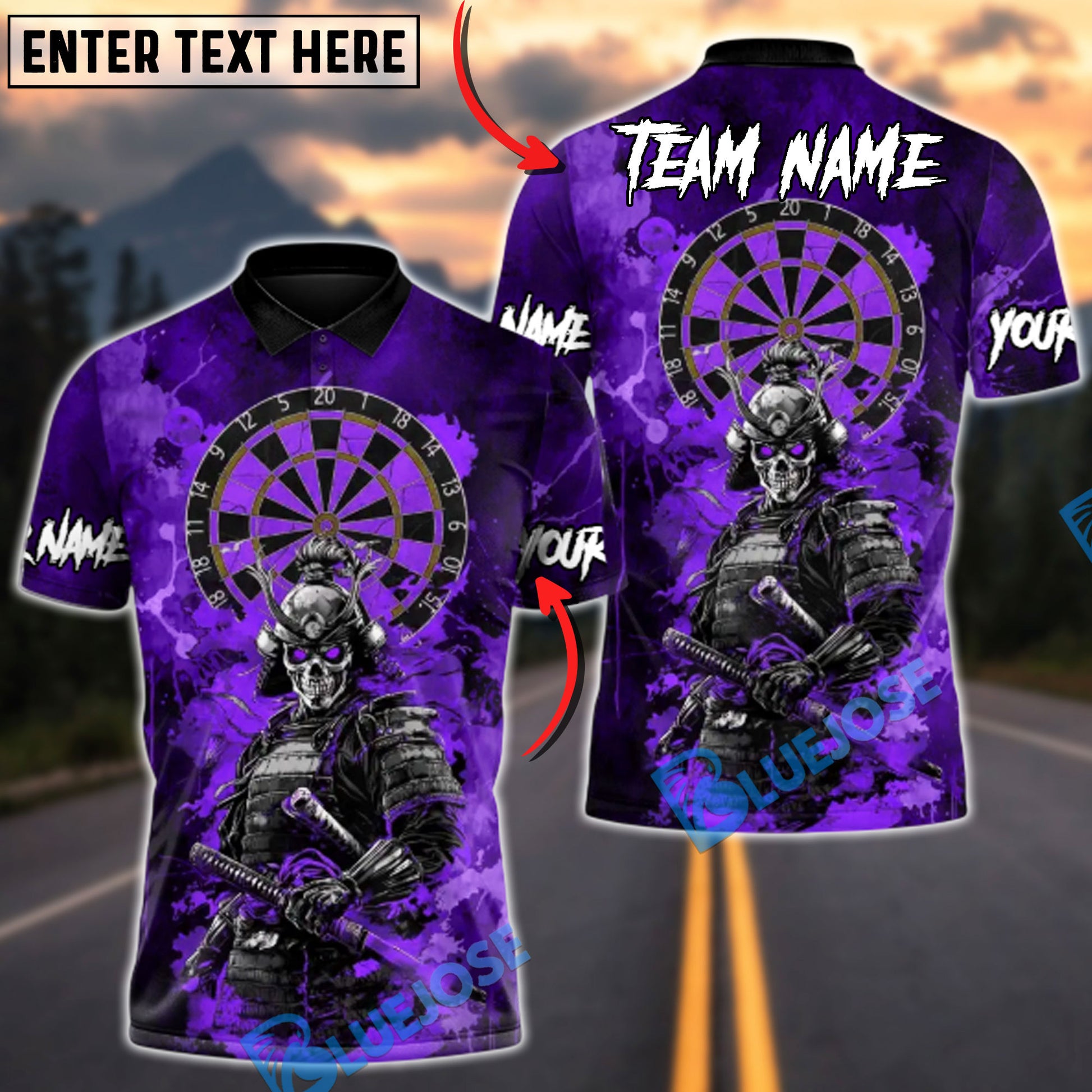 BlueJose Darts Skull Samurai of the Scarlet Board Multicolor Options Personalized Name Shirt (4 Colors)