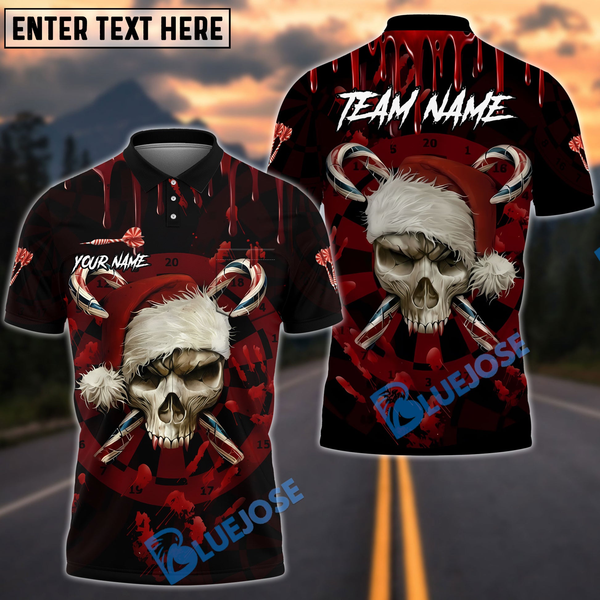 BlueJose Darts Skull Santa Personalized Name, Team Name Unisex Shirt (4 Colors)