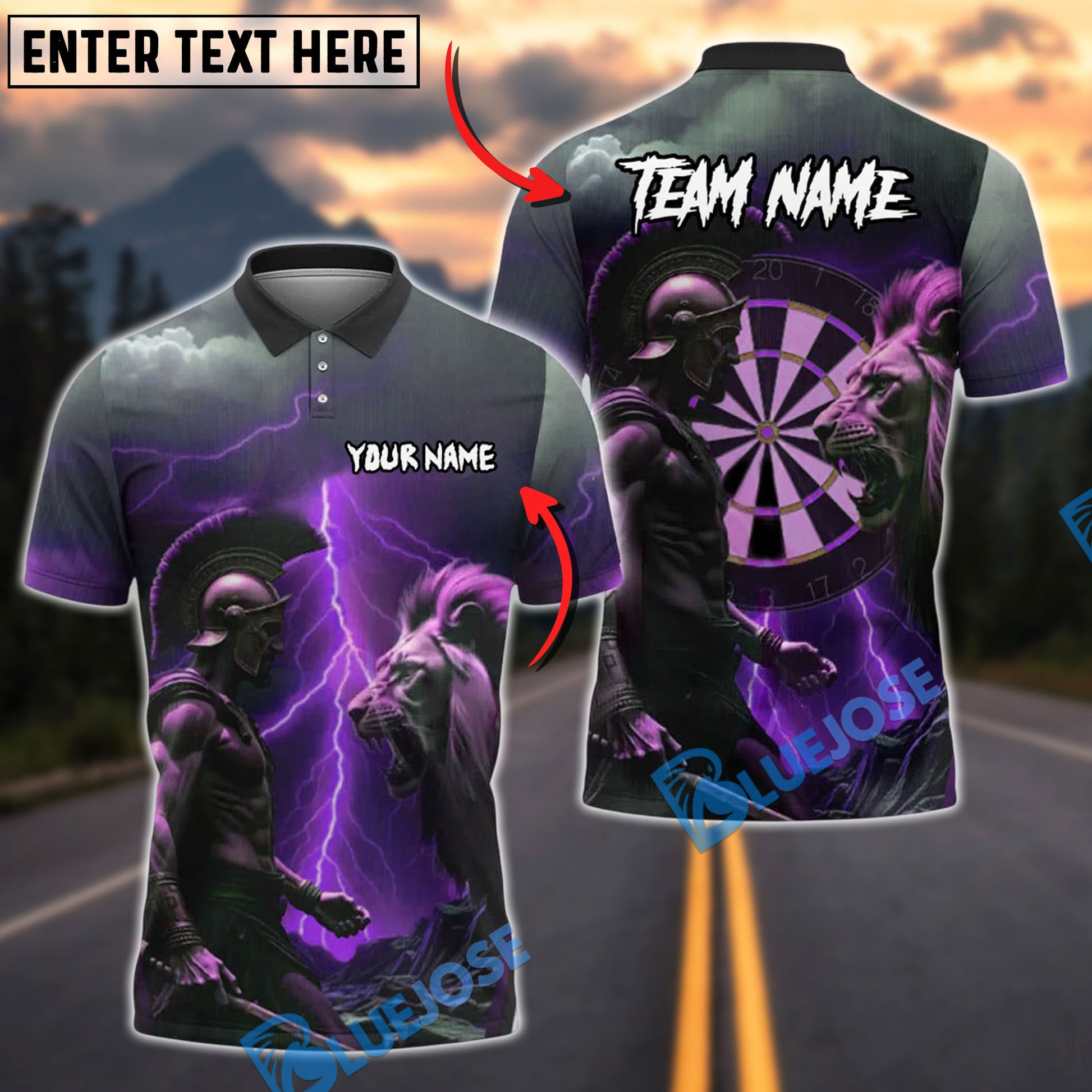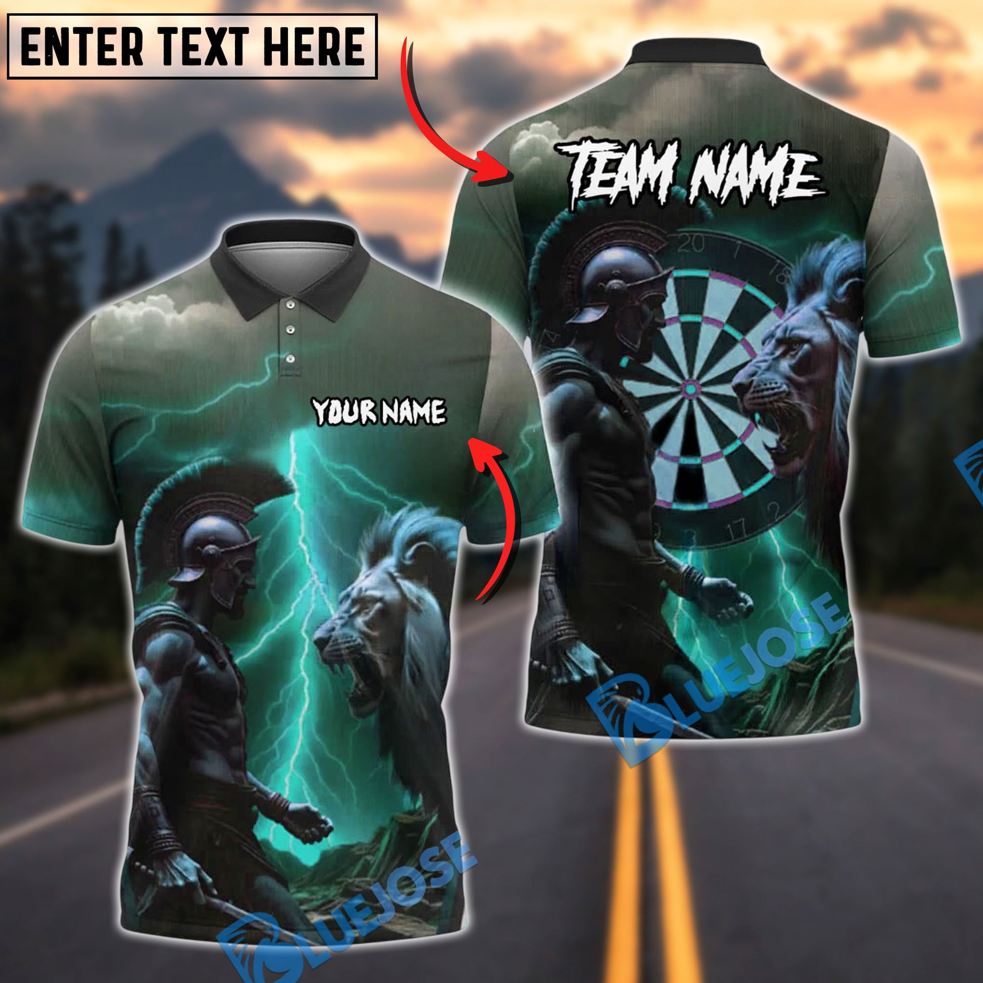 BlueJose Darts Spartan Warrior vs Lion Customized Name, Team Name 3D Shirt (4 Colors)
